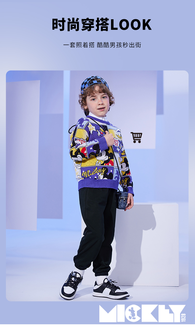 迪士尼童装男童运动休闲裤子春秋季字母潮搭洋气中大童宝宝束脚裤