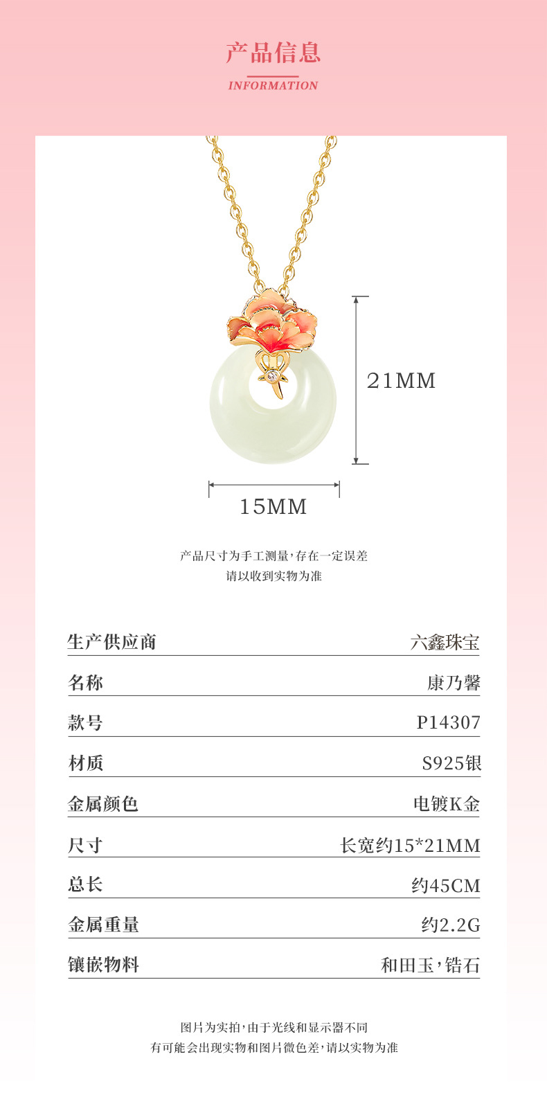 【灵动结系列】六鑫珠宝 爱心公主结项链 时尚轻奢