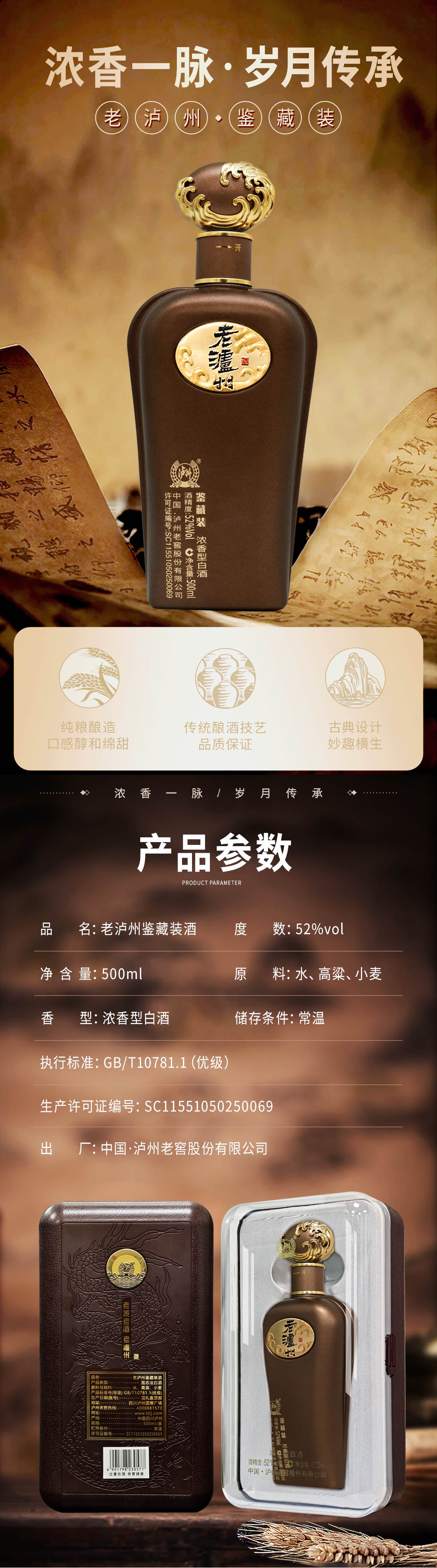 【酒厂直营】52度老泸州鉴藏装酒500ml*2 泸州老窖官方旗舰店