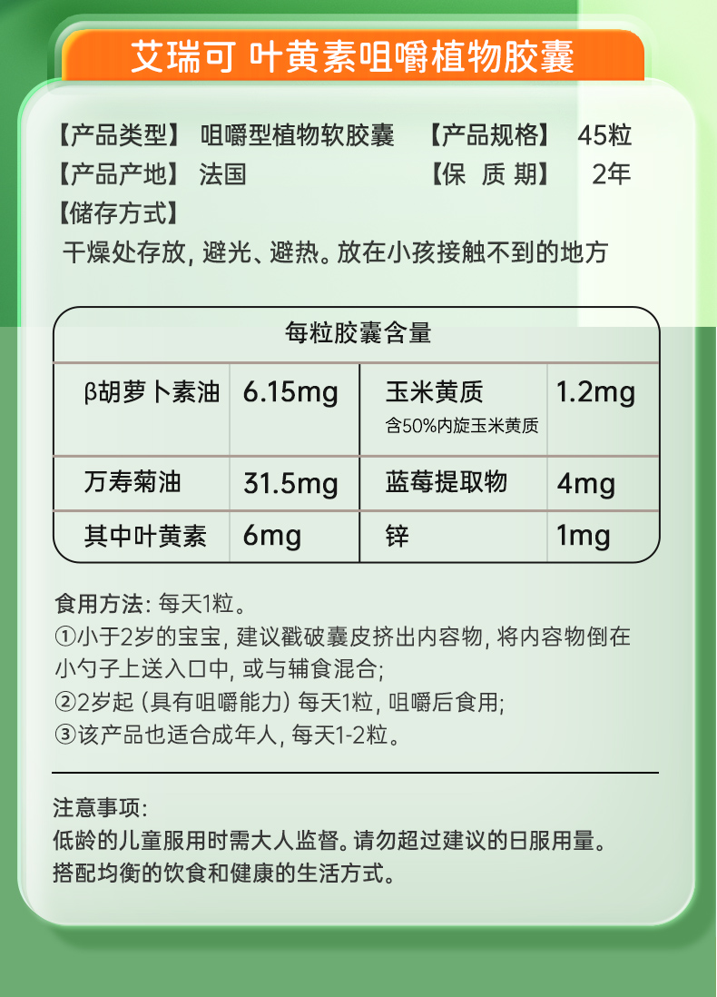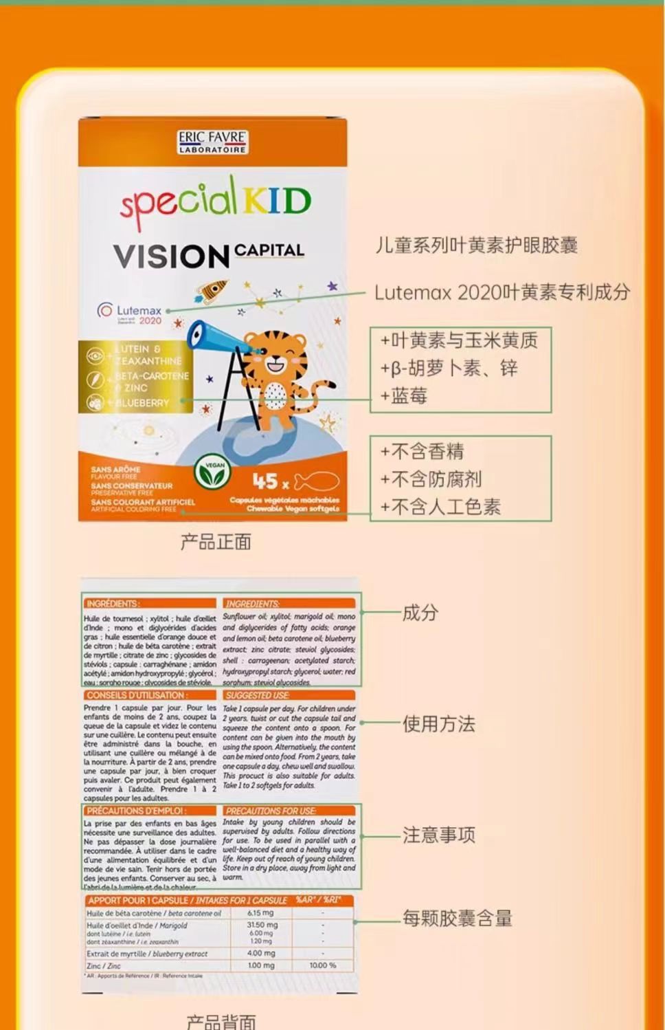 【保税仓】法国Eric Favre艾瑞可儿童护眼软胶囊45粒