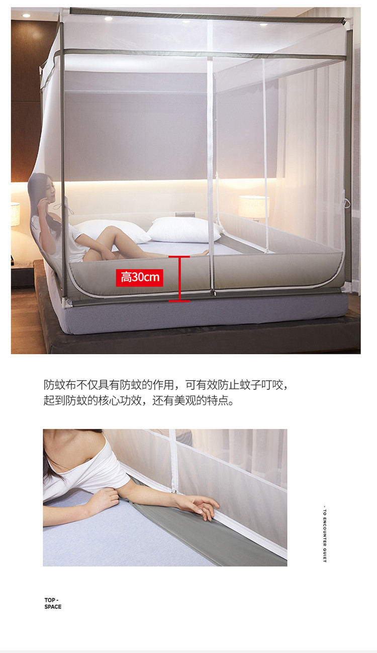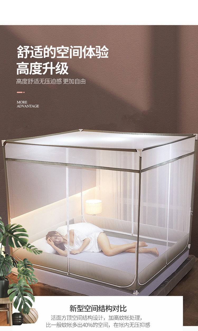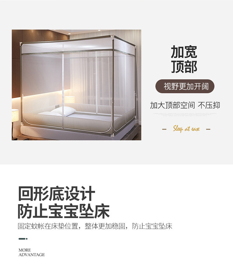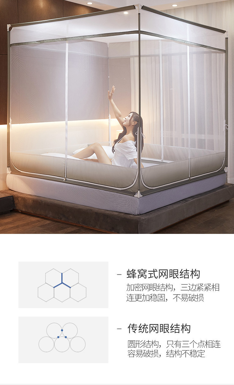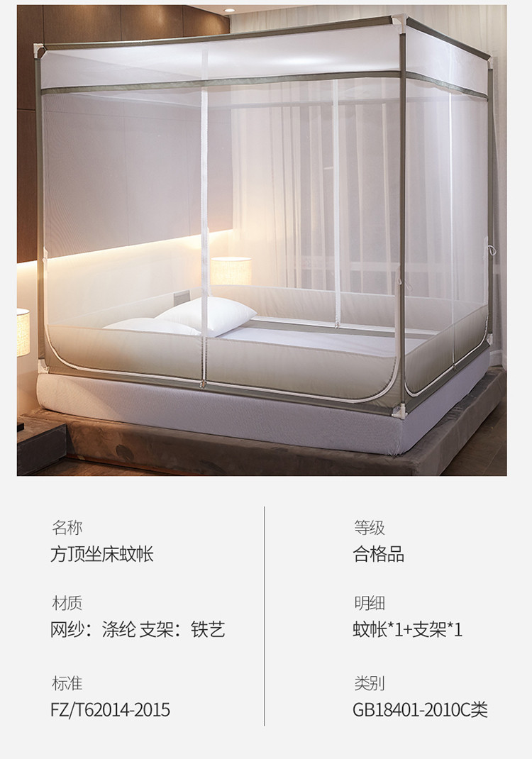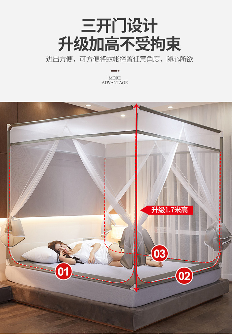 【方顶坐床三开门蚊帐 360°全方位防蚊】三开加厚支架坐床式防摔T型蚊帐方顶拉链式加高加密帐纱家用