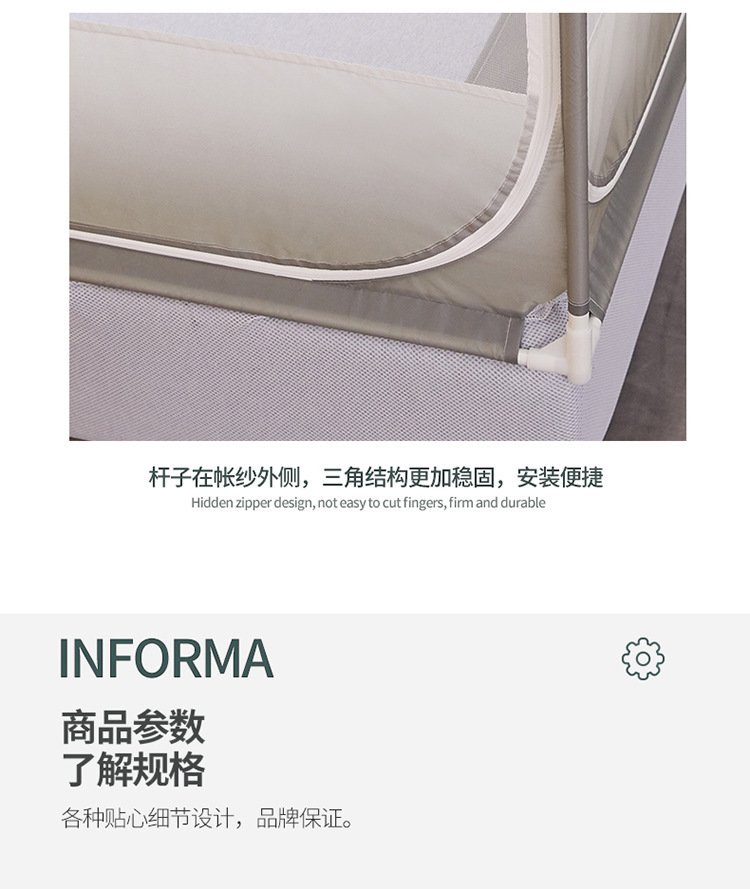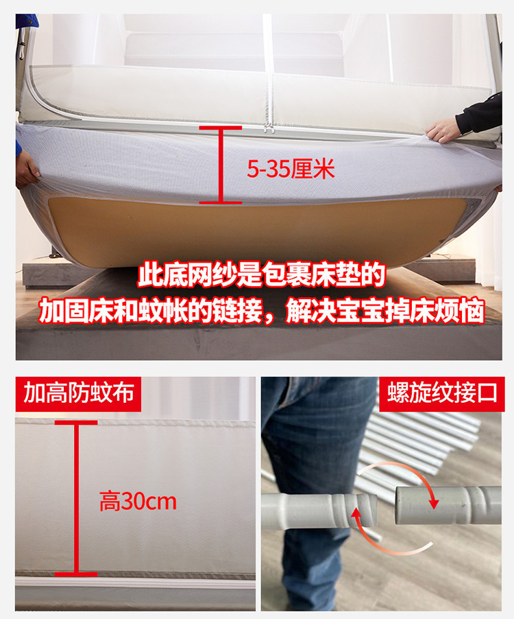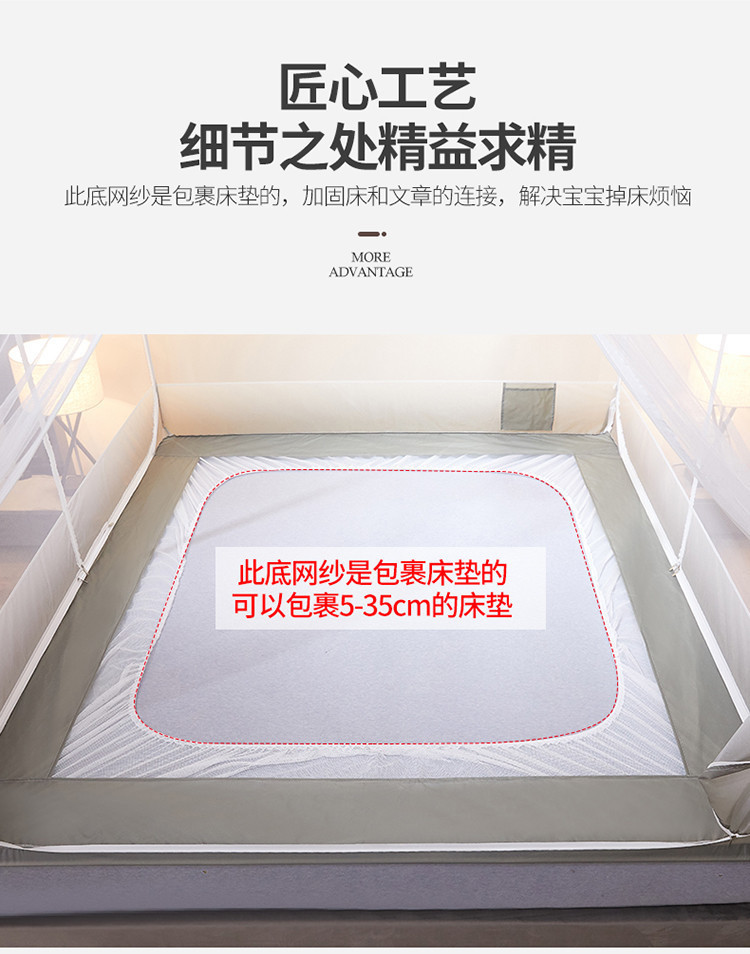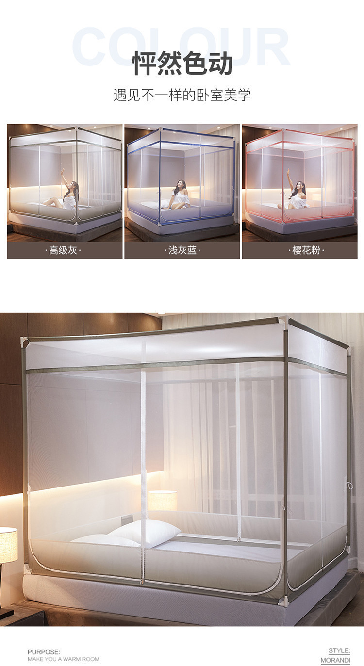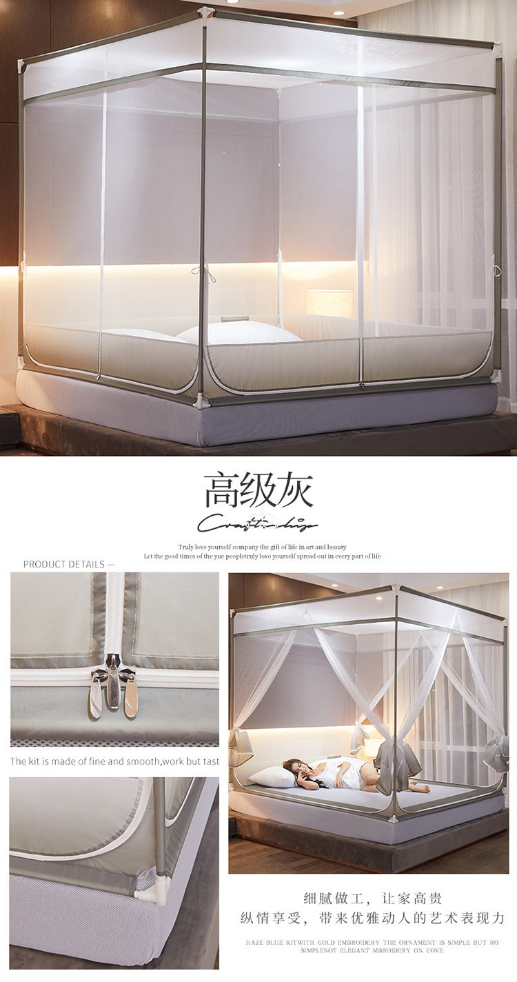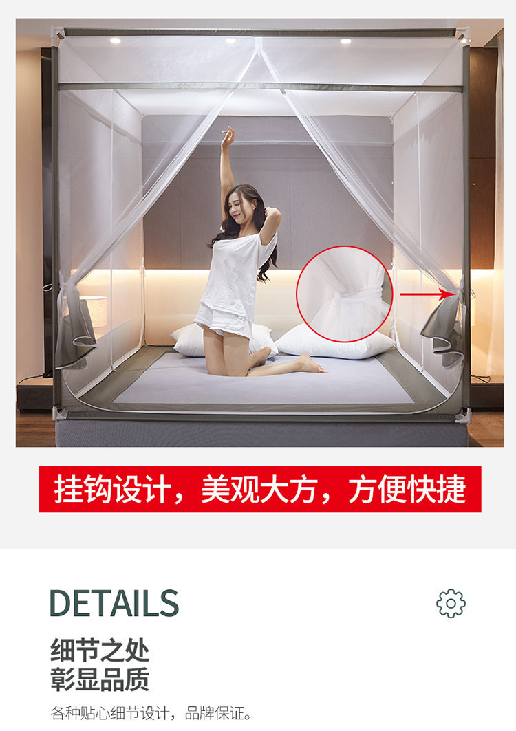 【方顶坐床三开门蚊帐 360°全方位防蚊】三开加厚支架坐床式防摔T型蚊帐方顶拉链式加高加密帐纱家用
