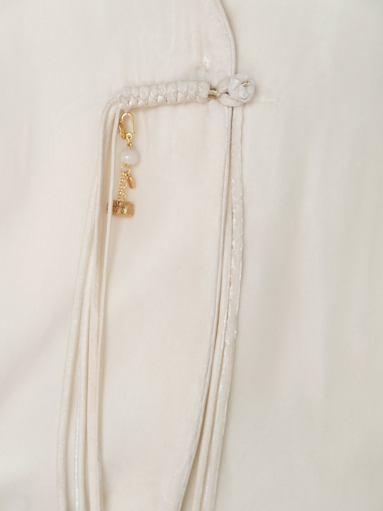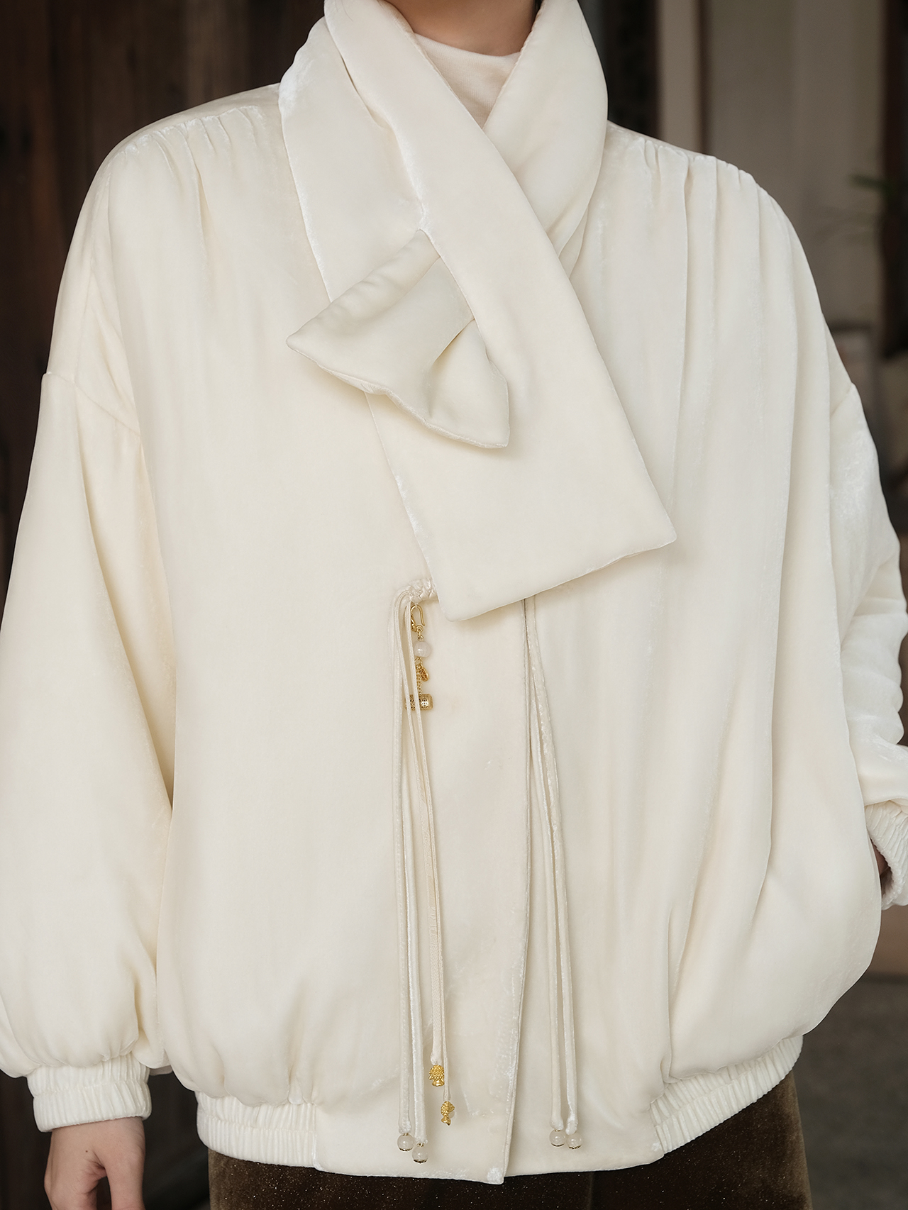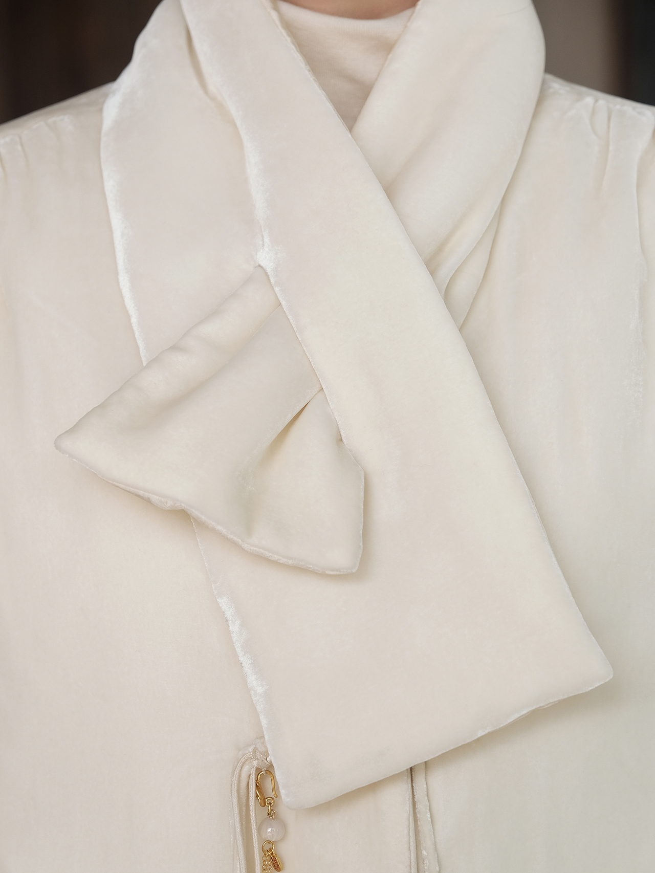 盛唐婧 | 白色丝绒流苏扣夹棉外套(带围巾)