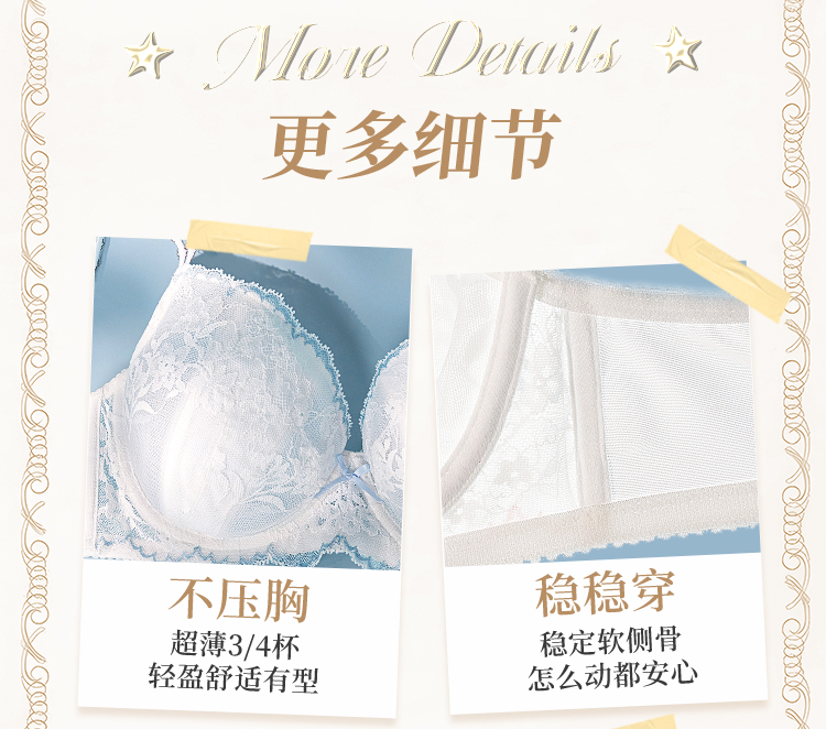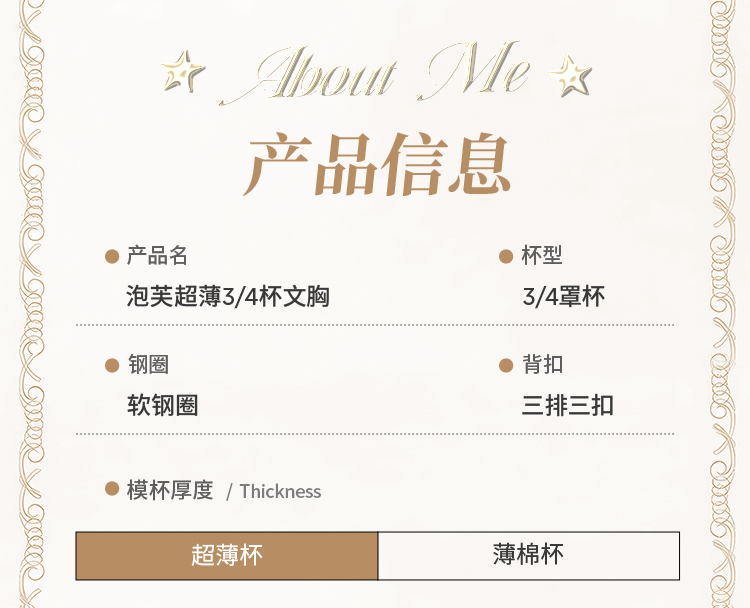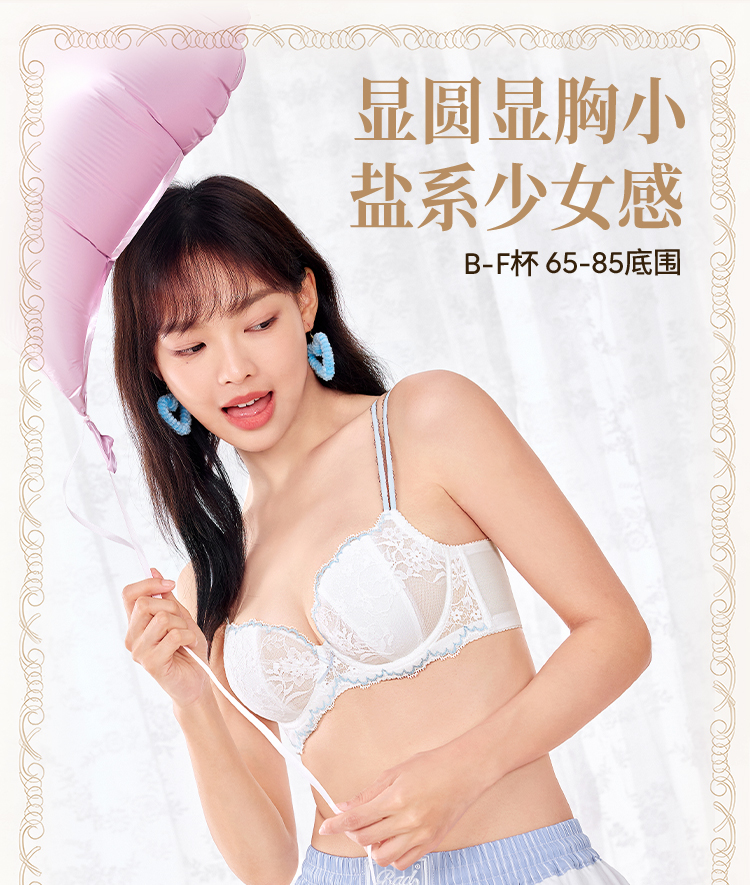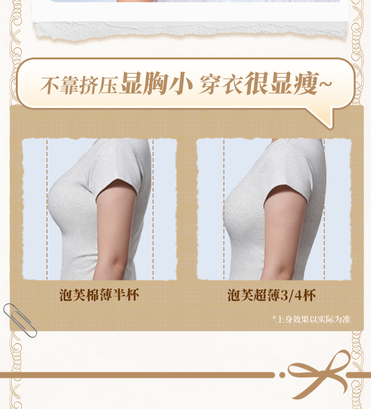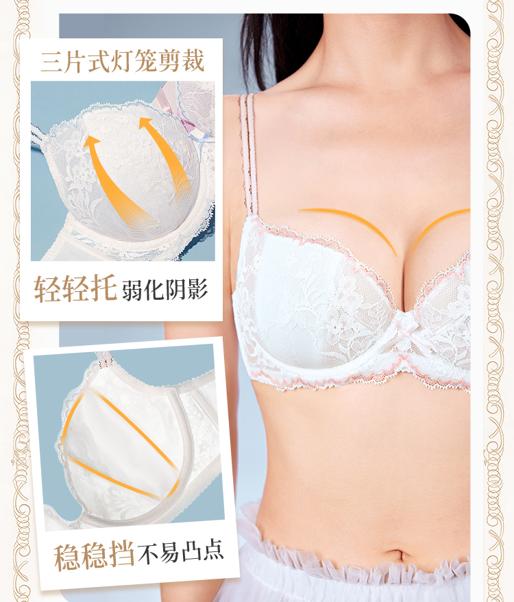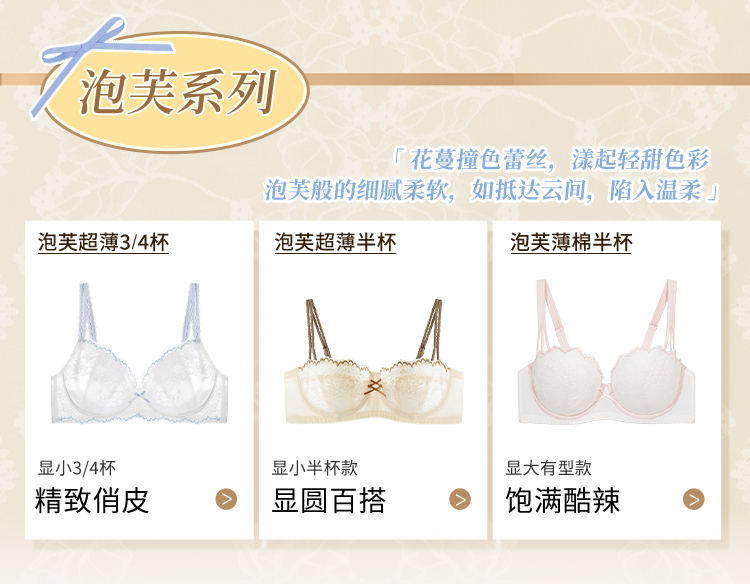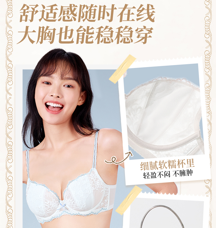 [泡芙超薄3/4杯]大胸显小显瘦圆润软钢圈蕾丝超薄文胸