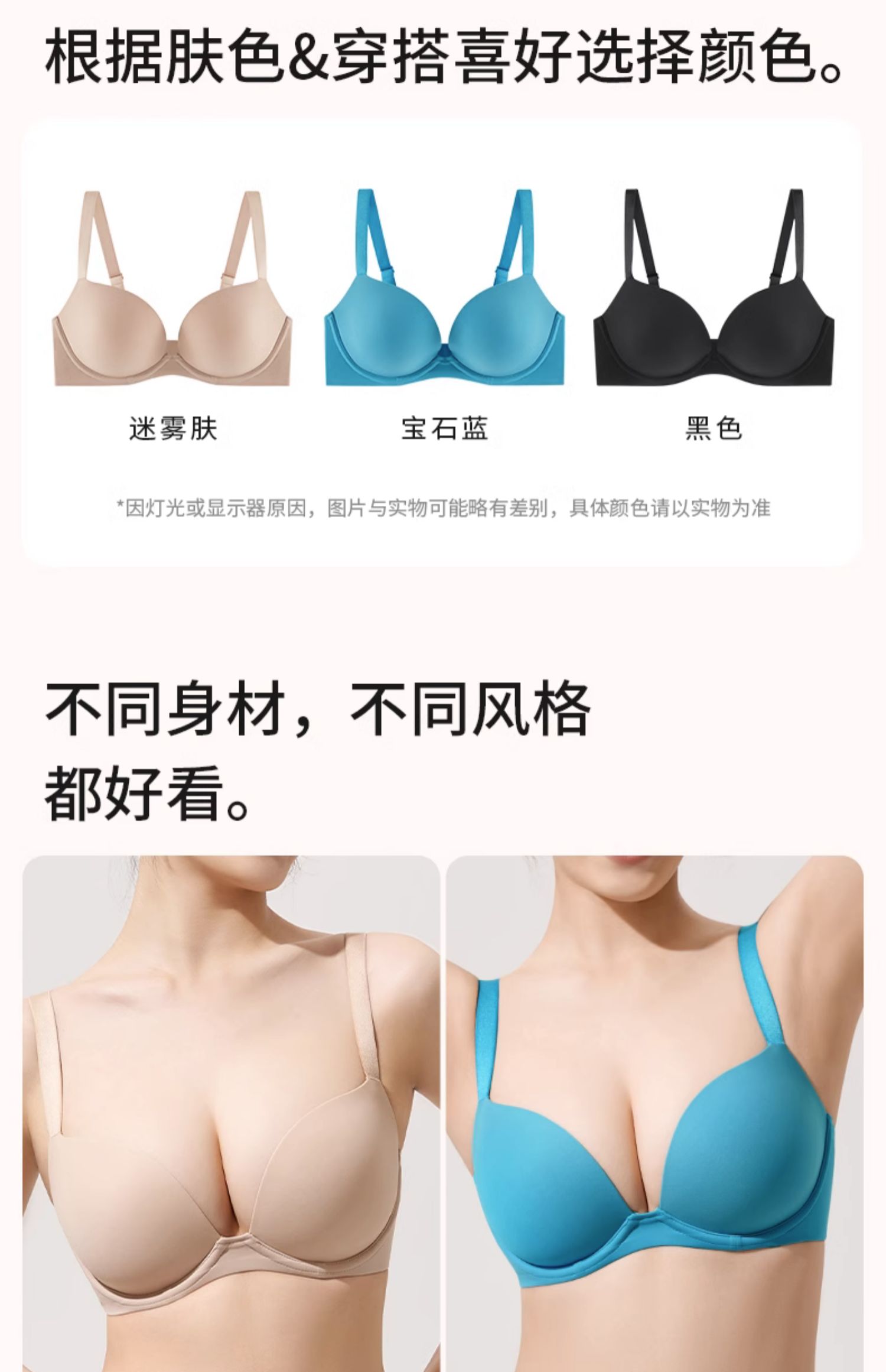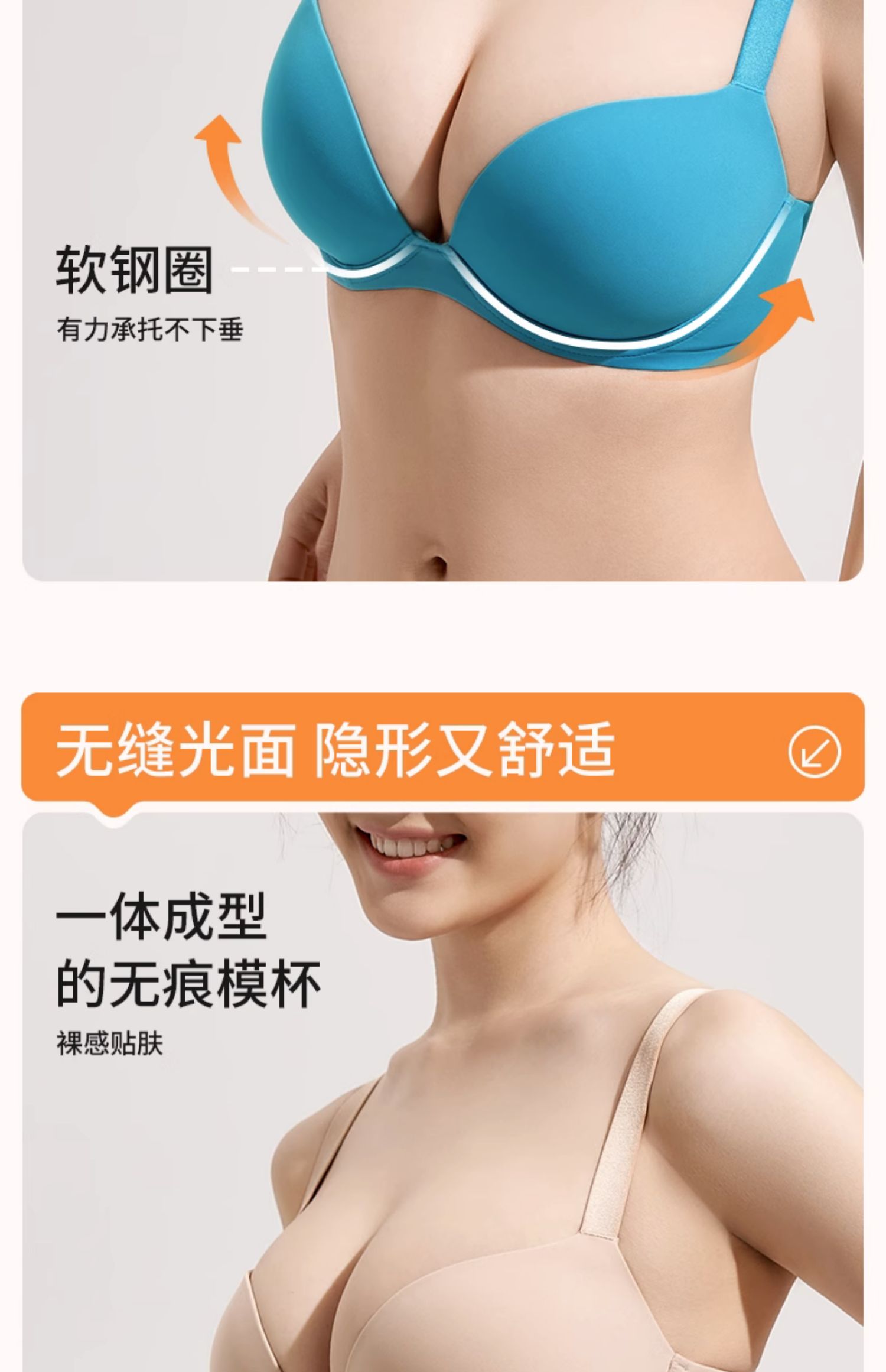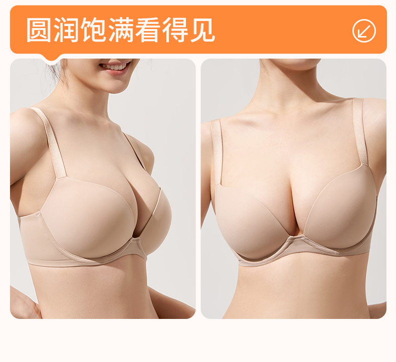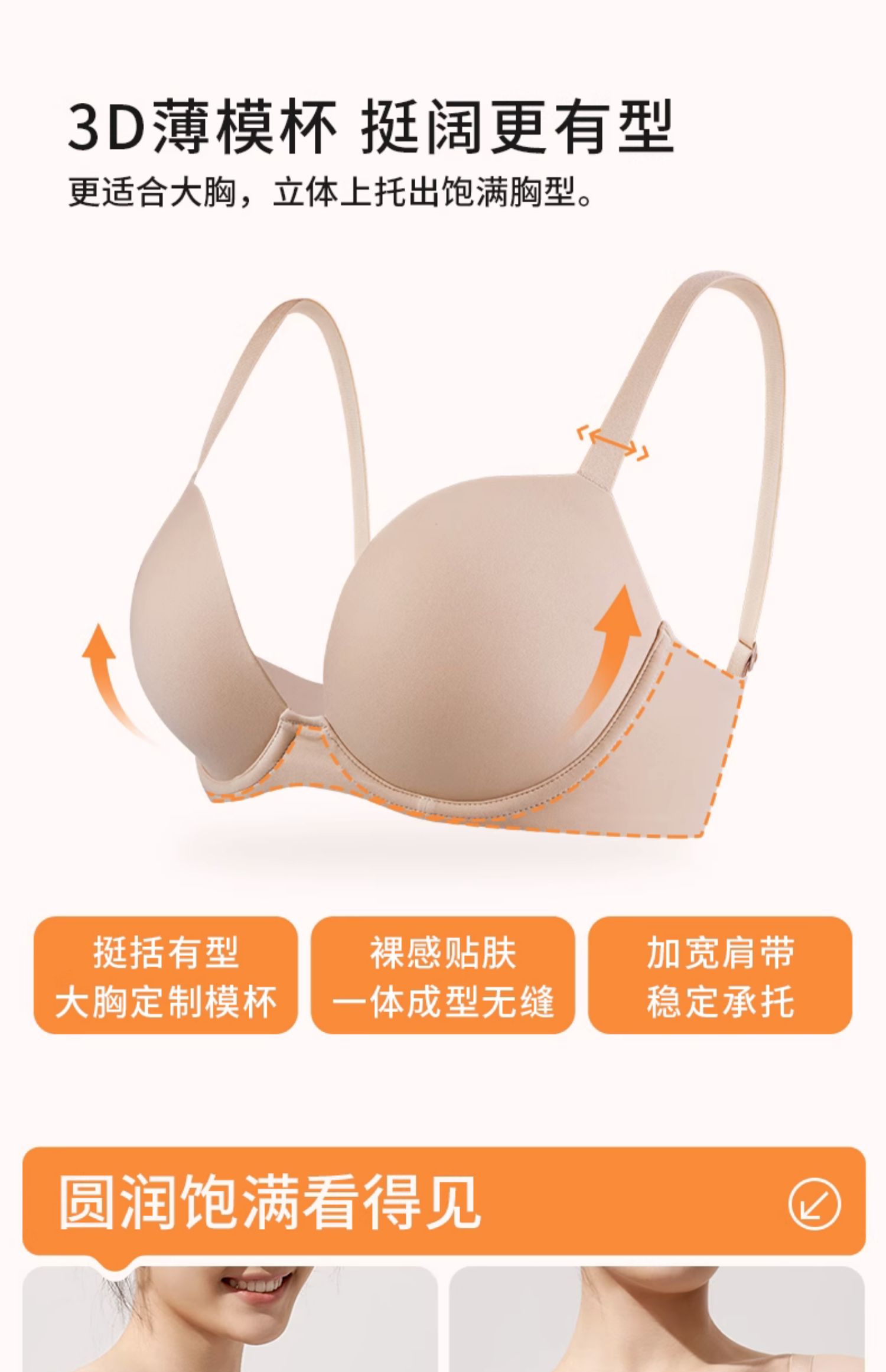 【会员积分兑换】奶糖派大胸无痕光面内衣大胸显大模杯挺拔聚拢圆润上托性感文胸女