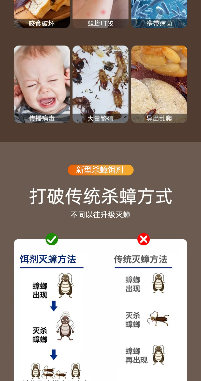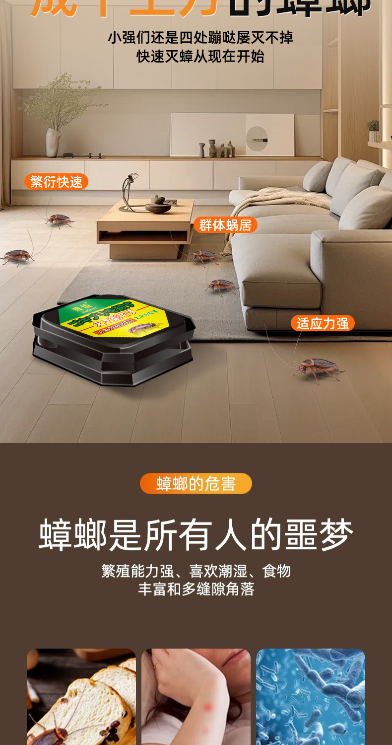 【买1发2❗️长效杀蟑饵剂】夏季来临“灭蟑刻不容缓”诱食力强,一盒6枚装告别蟑螂侵扰,防误食设计家用更放心,蟑螂药盒装灭蟑杀蟑颗粒诱饵家用L