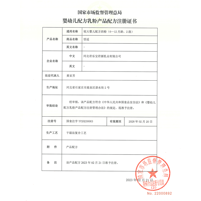 君乐宝恬适较大婴儿配方奶粉2段800g(6-12月龄)新旧包装随机发货