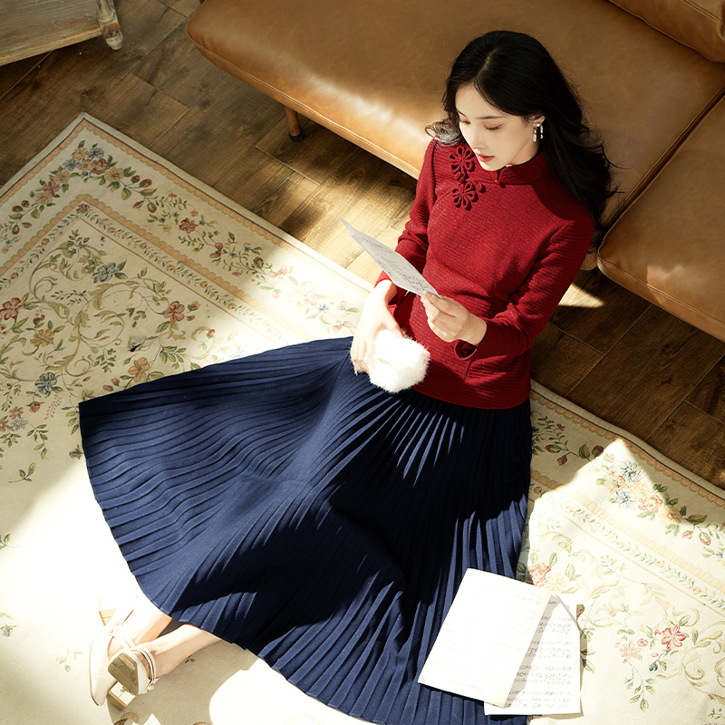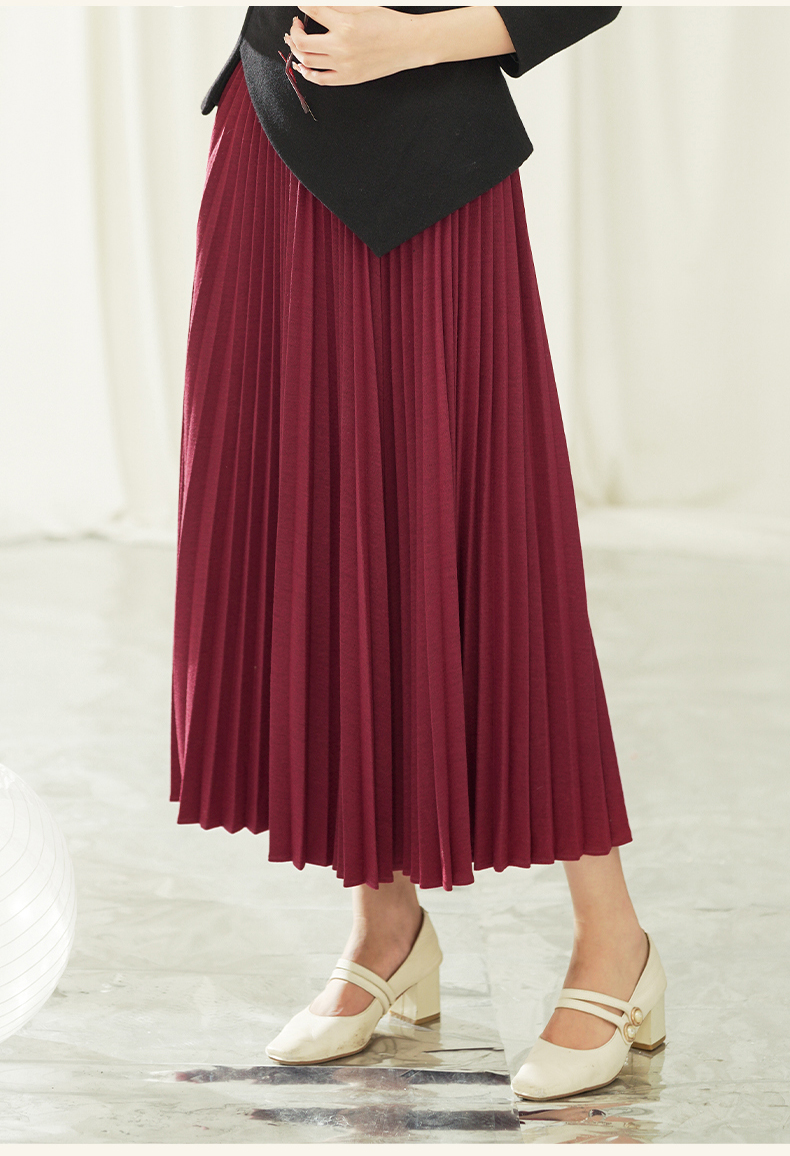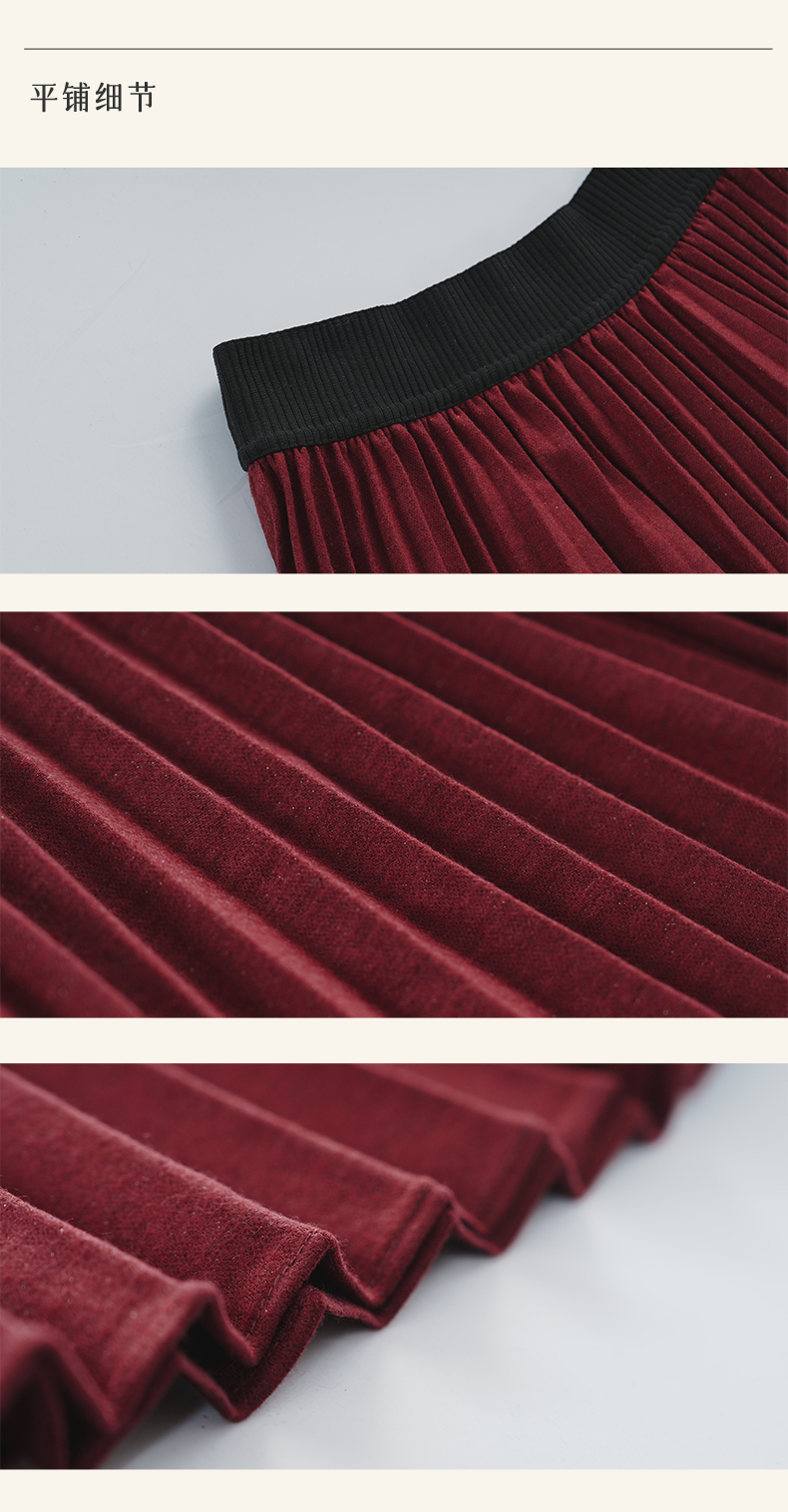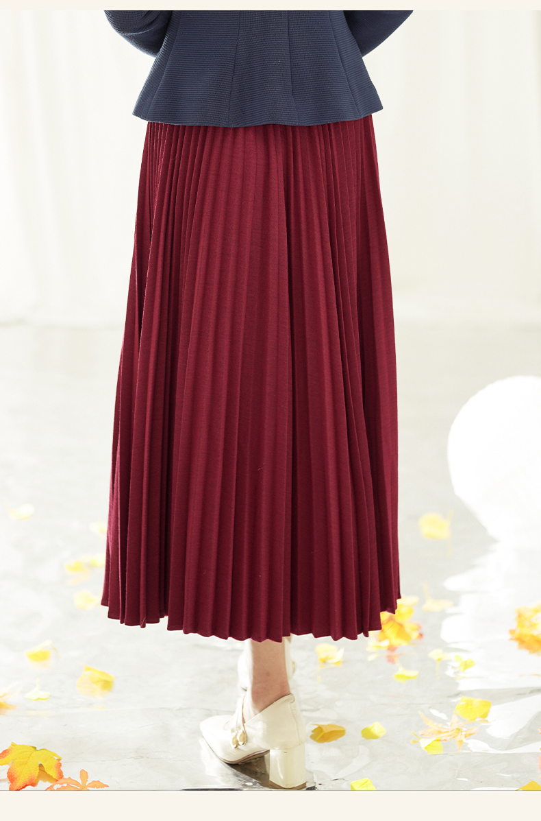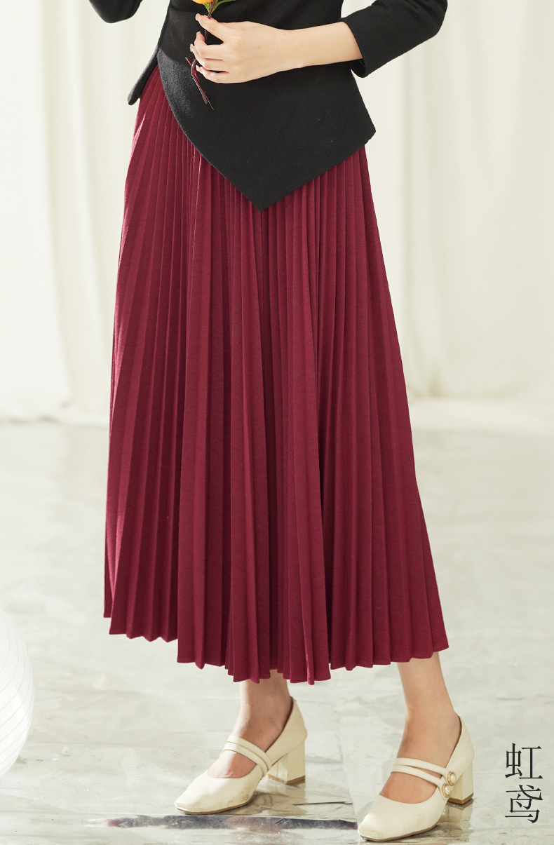 红色半身裙【虹鸢】选自53%的高支高密绵羊毛。