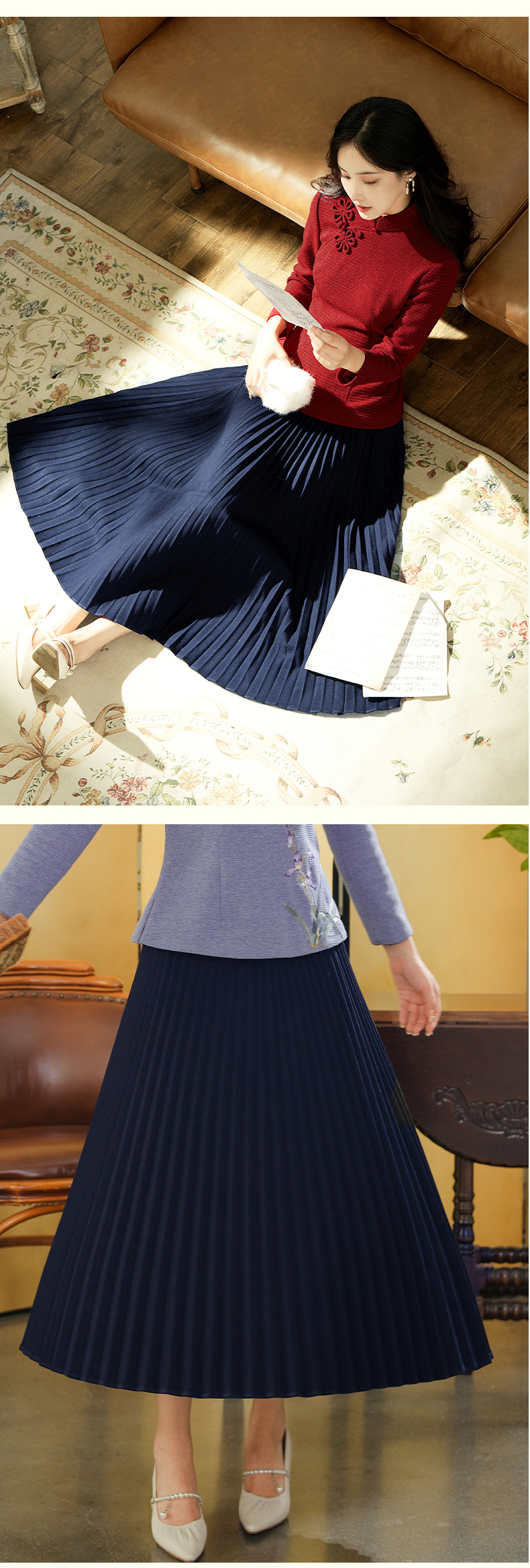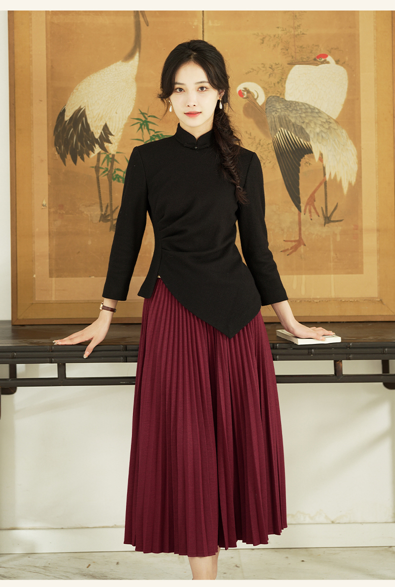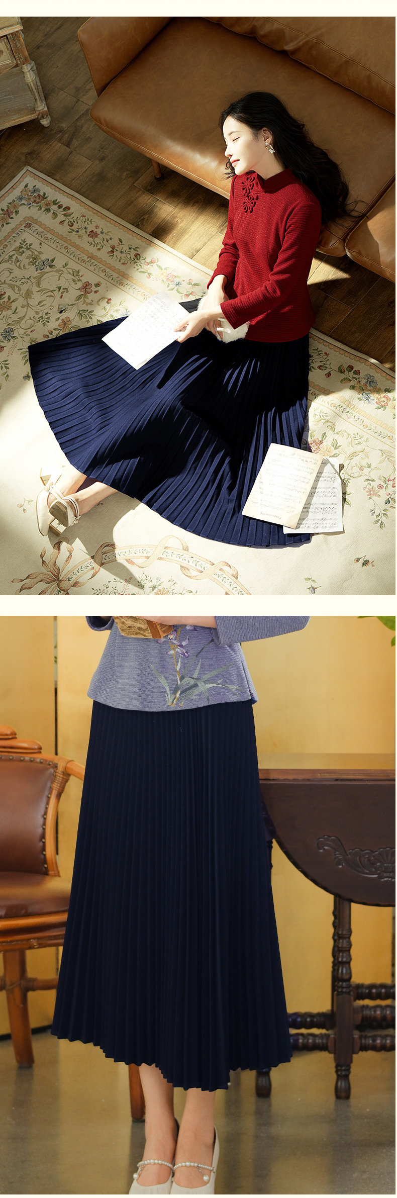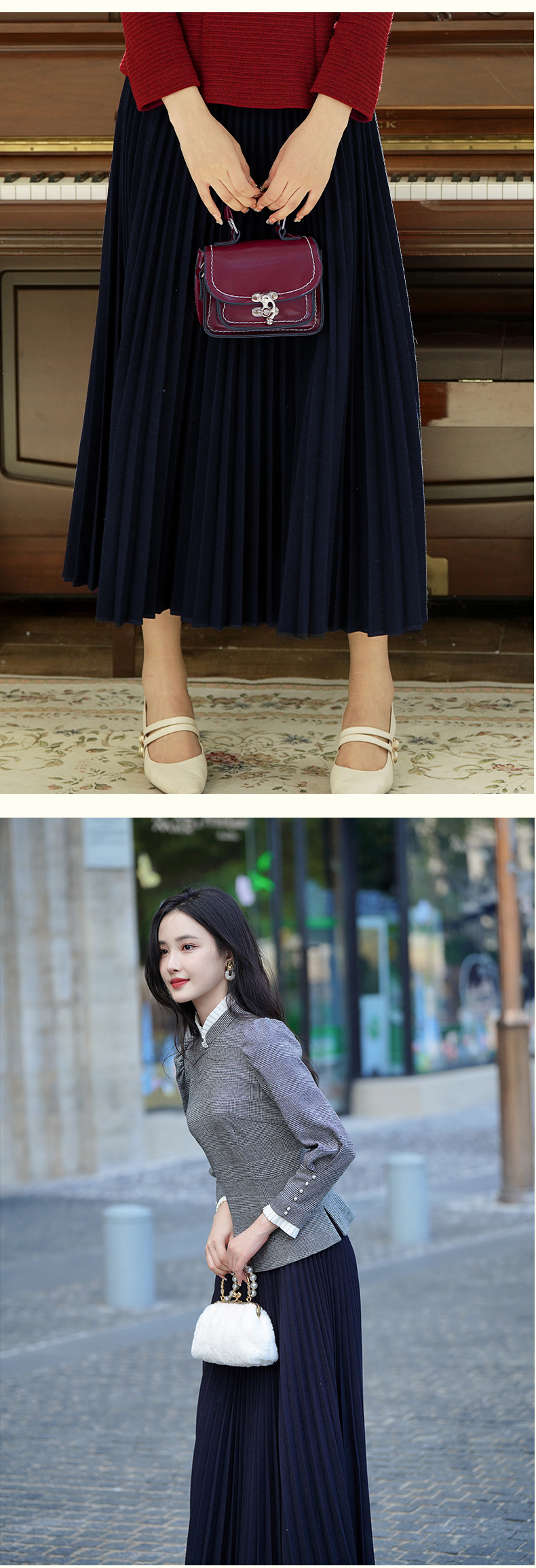 红色半身裙【虹鸢】选自53%的高支高密绵羊毛。
