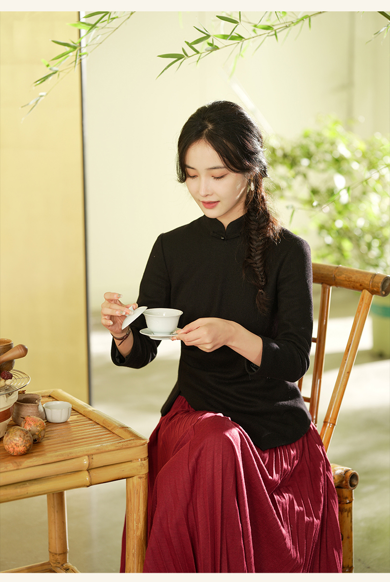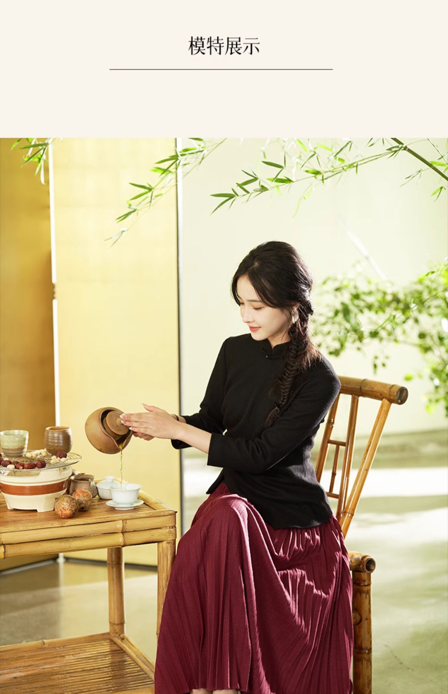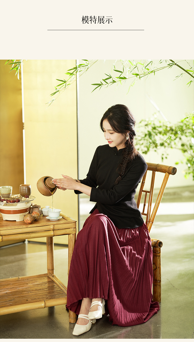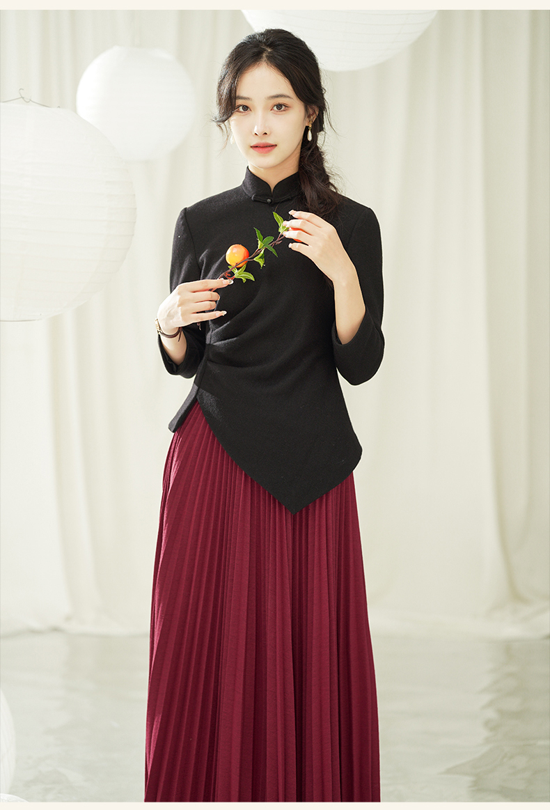 红色半身裙【虹鸢】选自53%的高支高密绵羊毛。