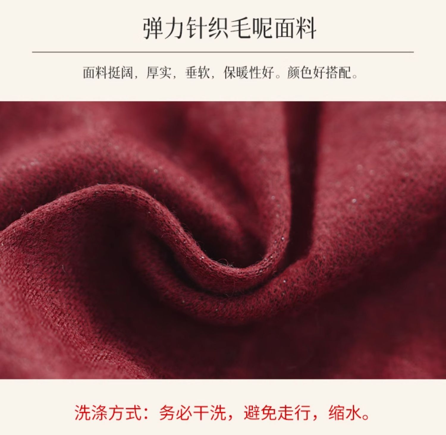面料挺阔厚实,垂软,上身有型,冬天穿保暖性也很好。颜色好搭配。