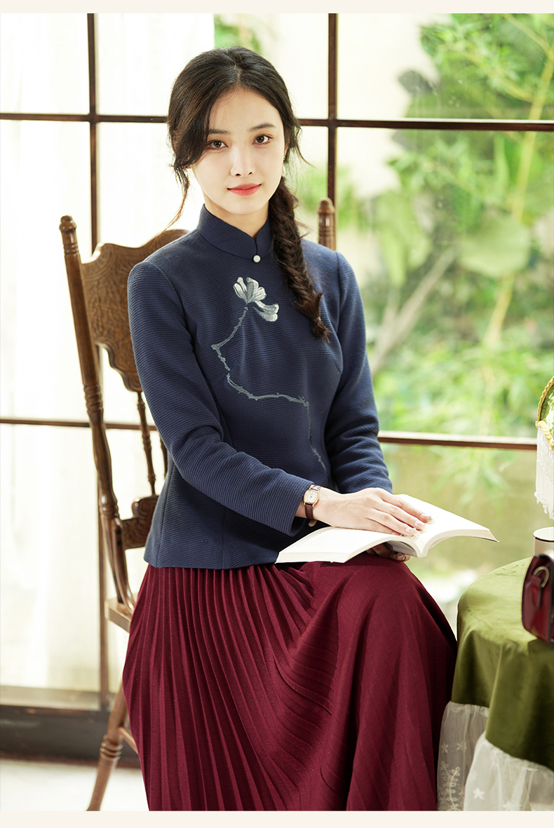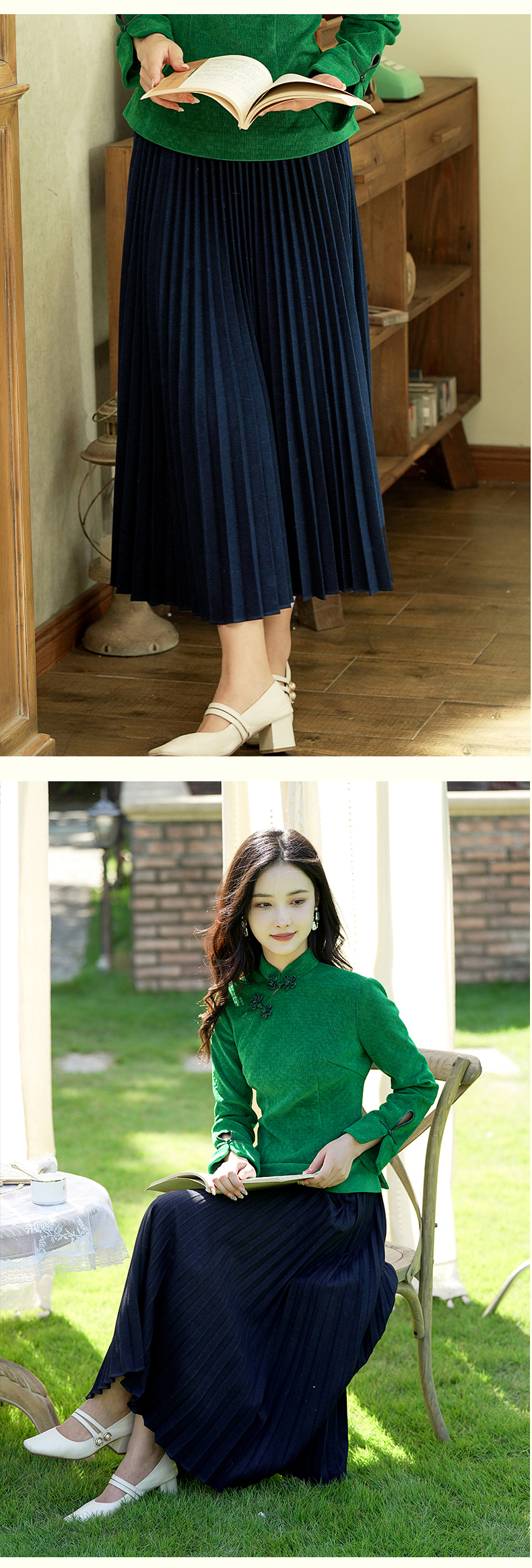 蓝色半身裙【祥雲】选自2.4%氨纶、23%粘纤。