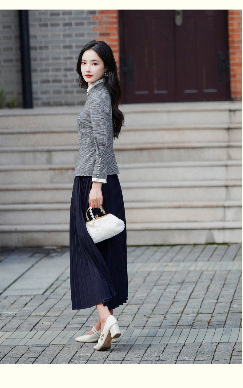 2.A摆足量摆裙。3片拼接压褶,摆大更加复古浪漫。