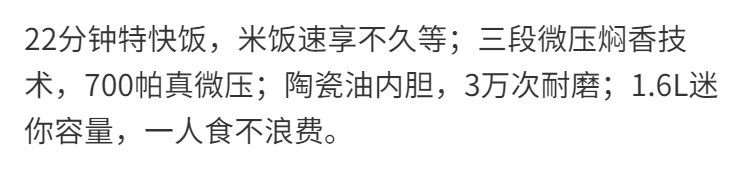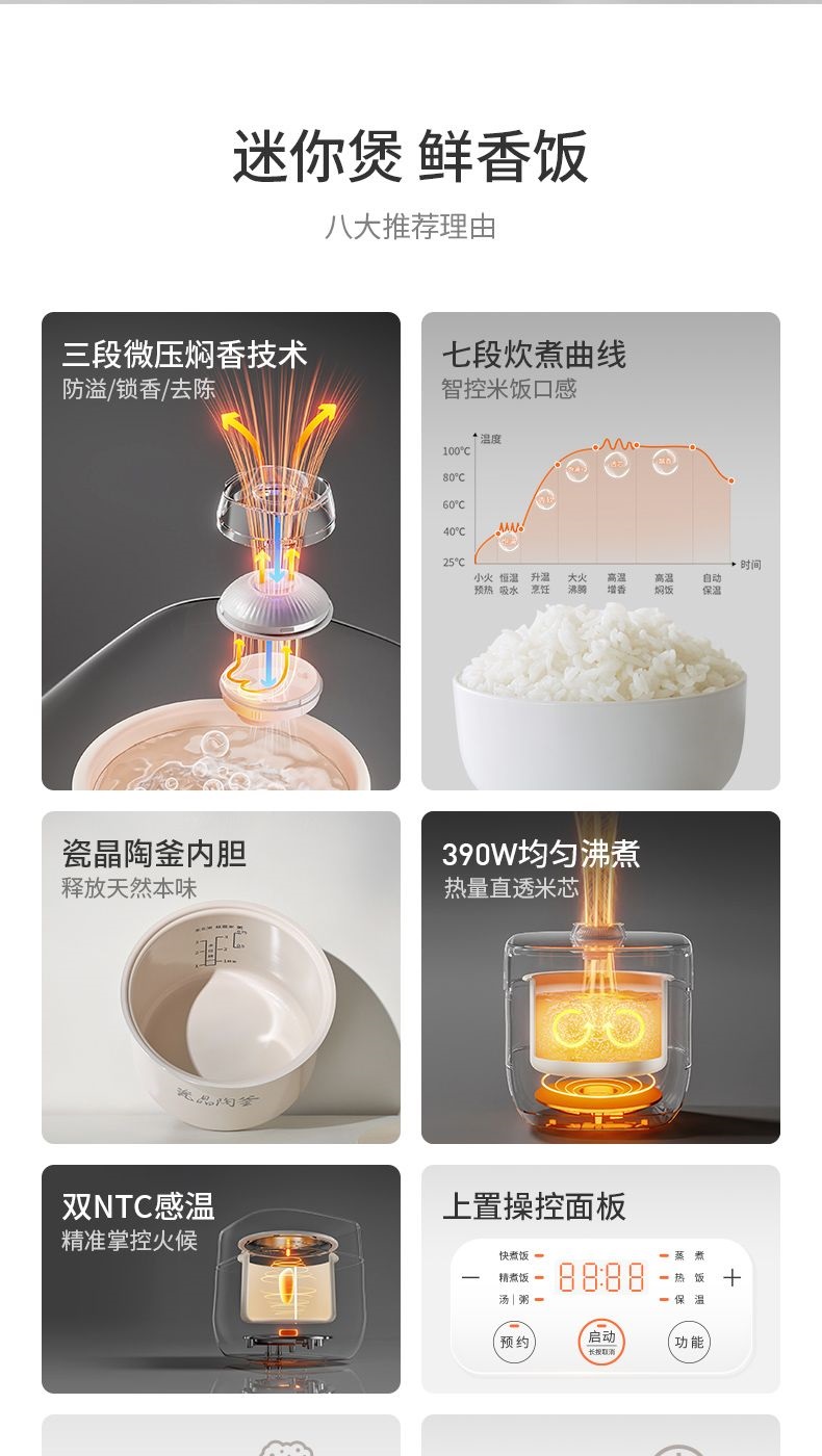 九阳1.2L1.6L一人食电饭煲家用迷你机械煲单人电饭锅多功能陶瓷油胆