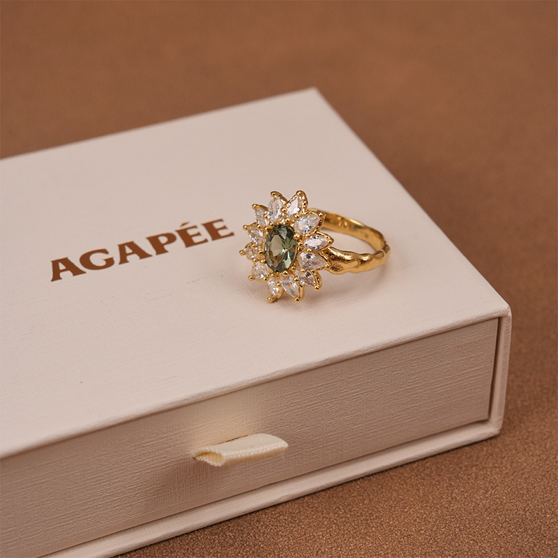 北京仓|Agapee-Calia-青色 锤纹 锆石 戒指[法国设计师]