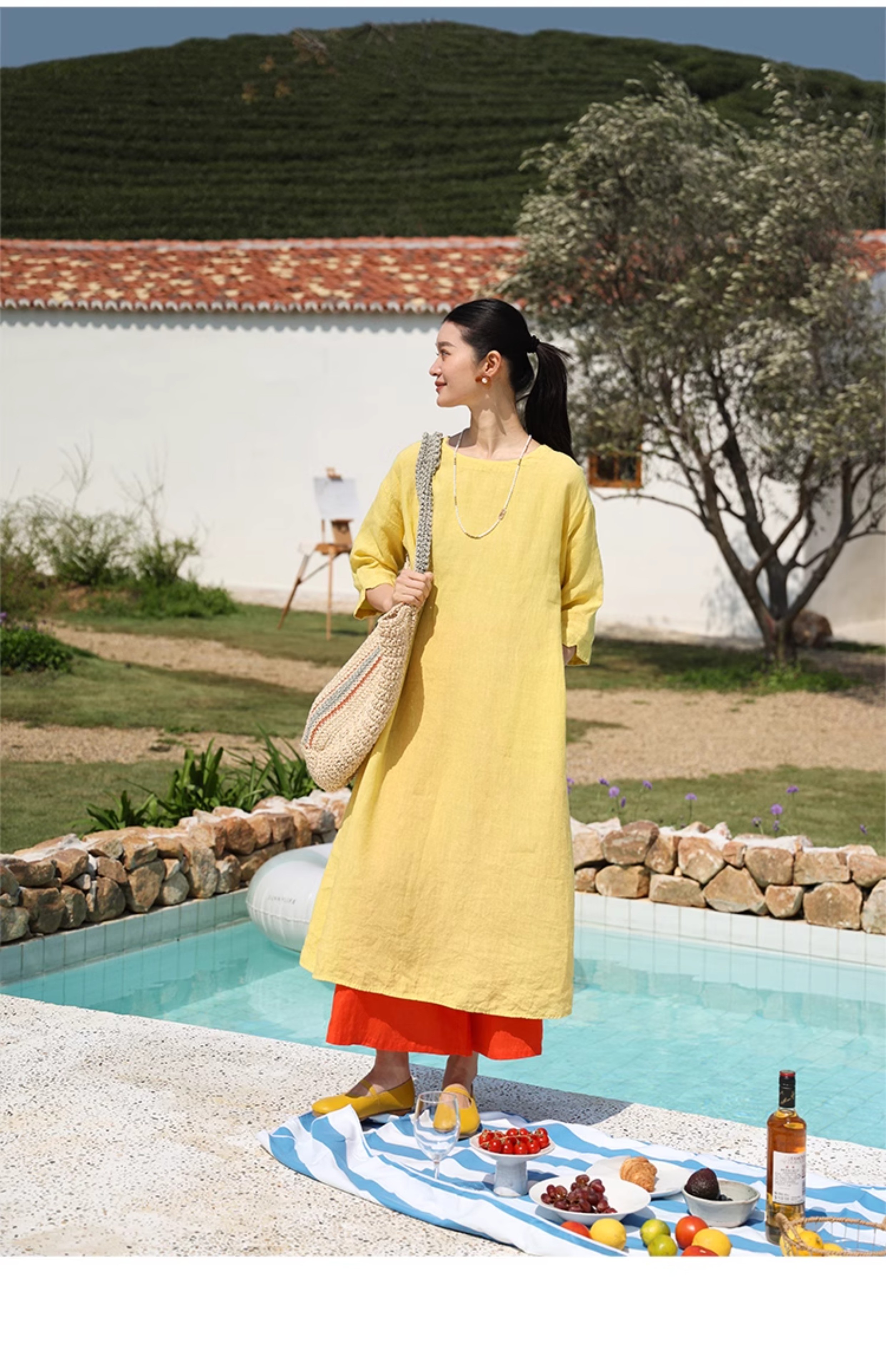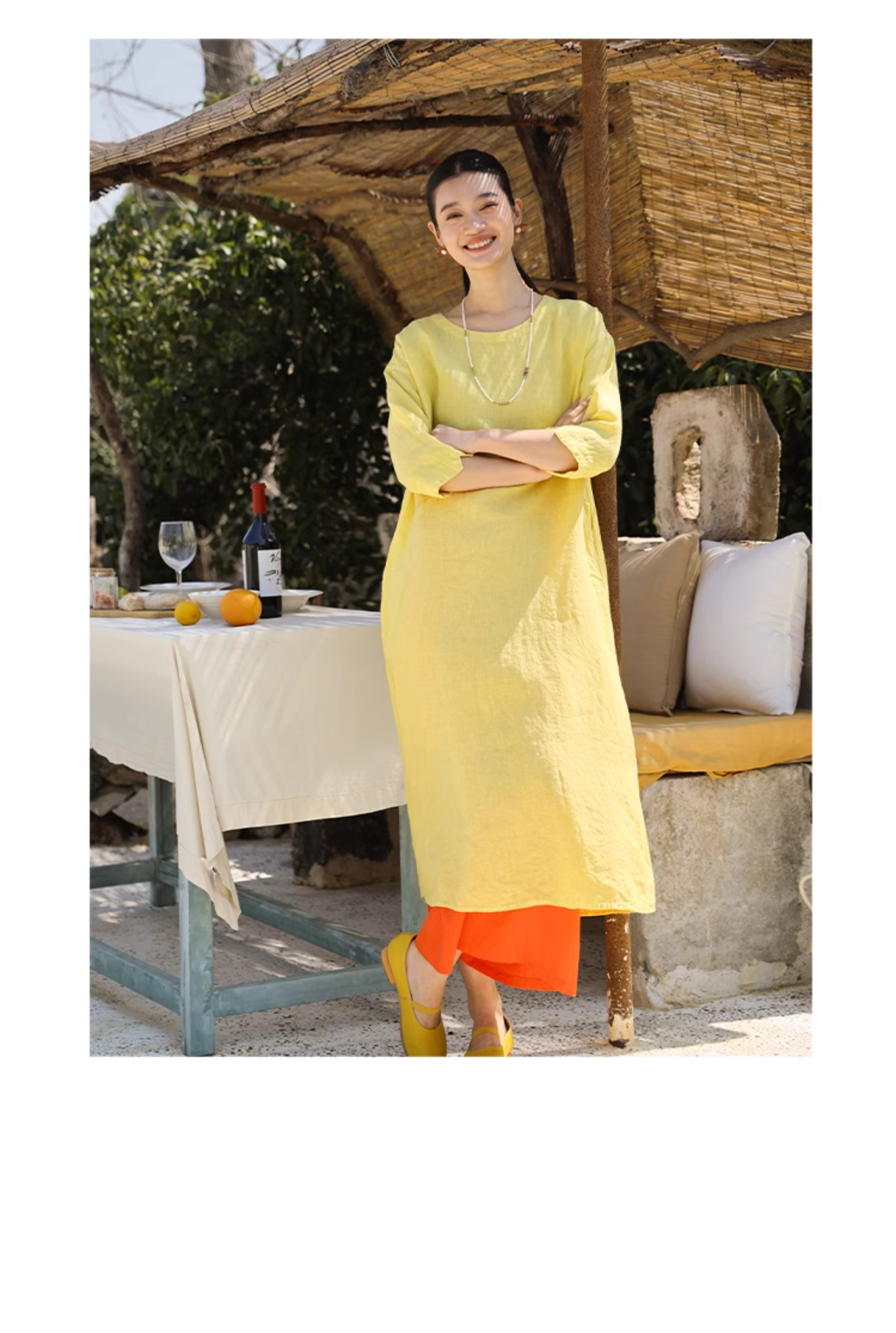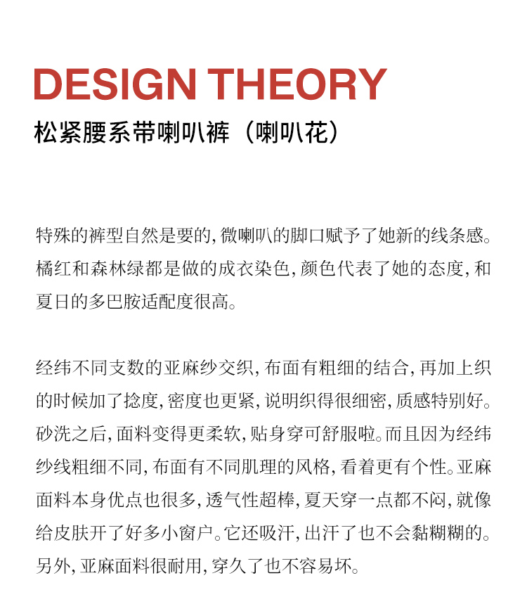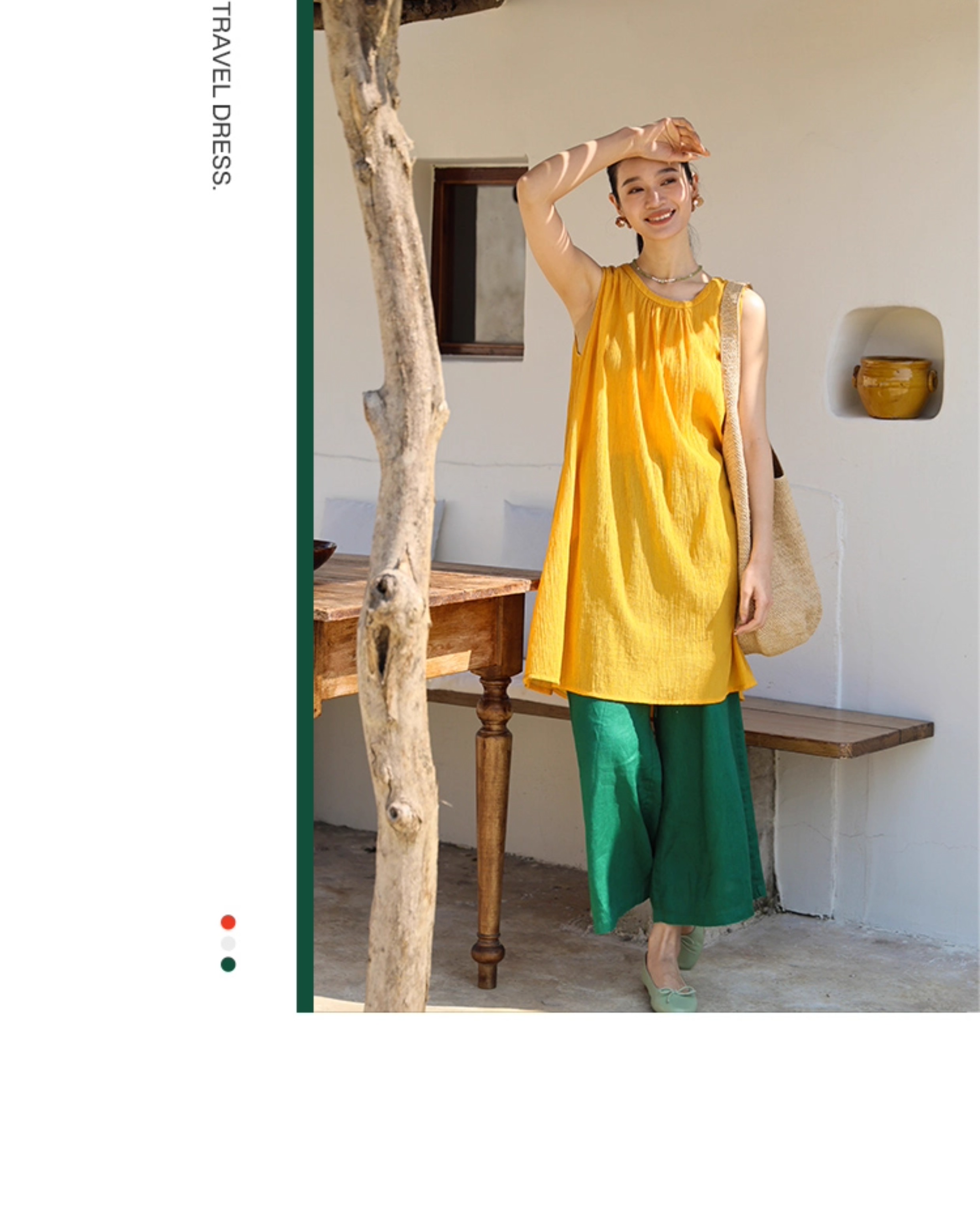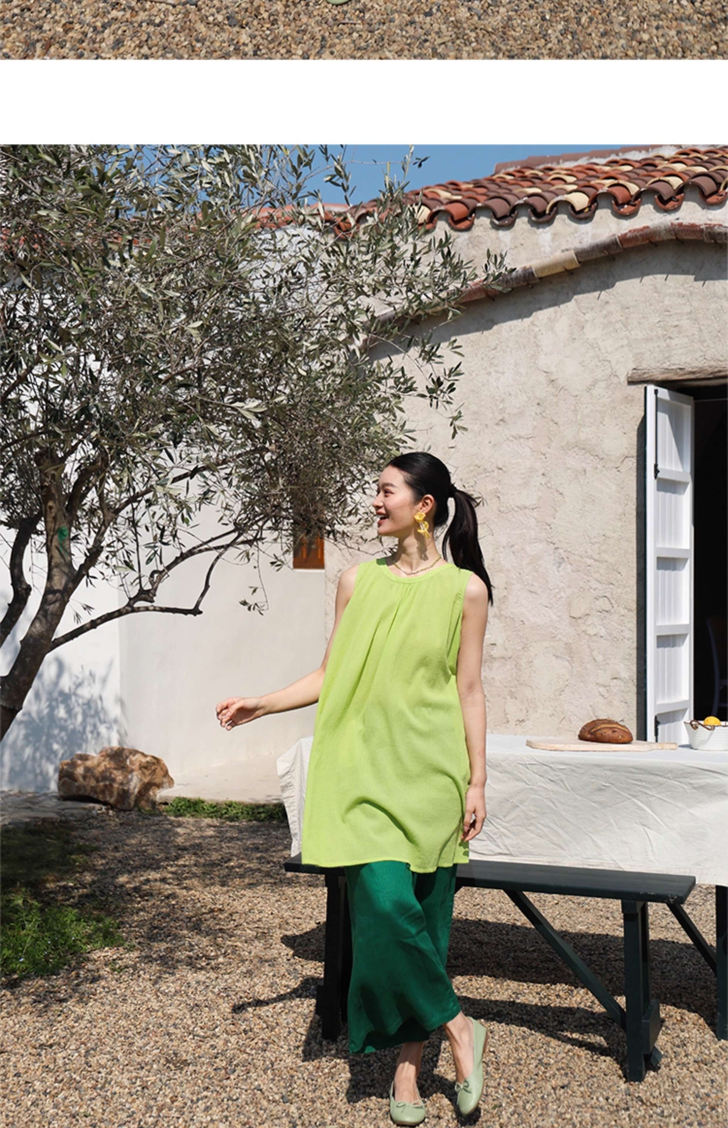 以天然亚麻为载体,融合热烈色彩与自在剪裁为身在城市、心怀远方的女性提供兼具美学与舒适的旅行着装