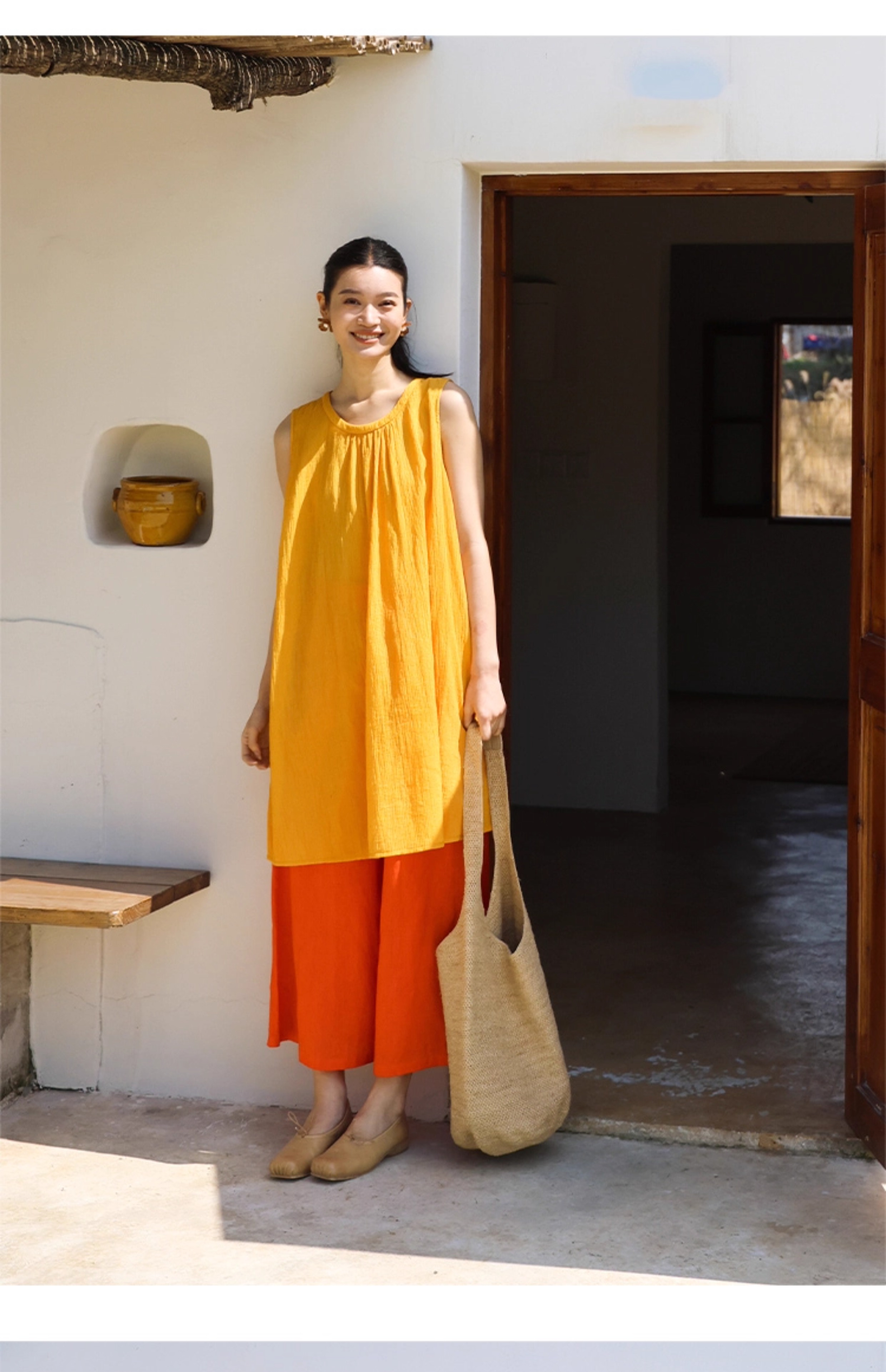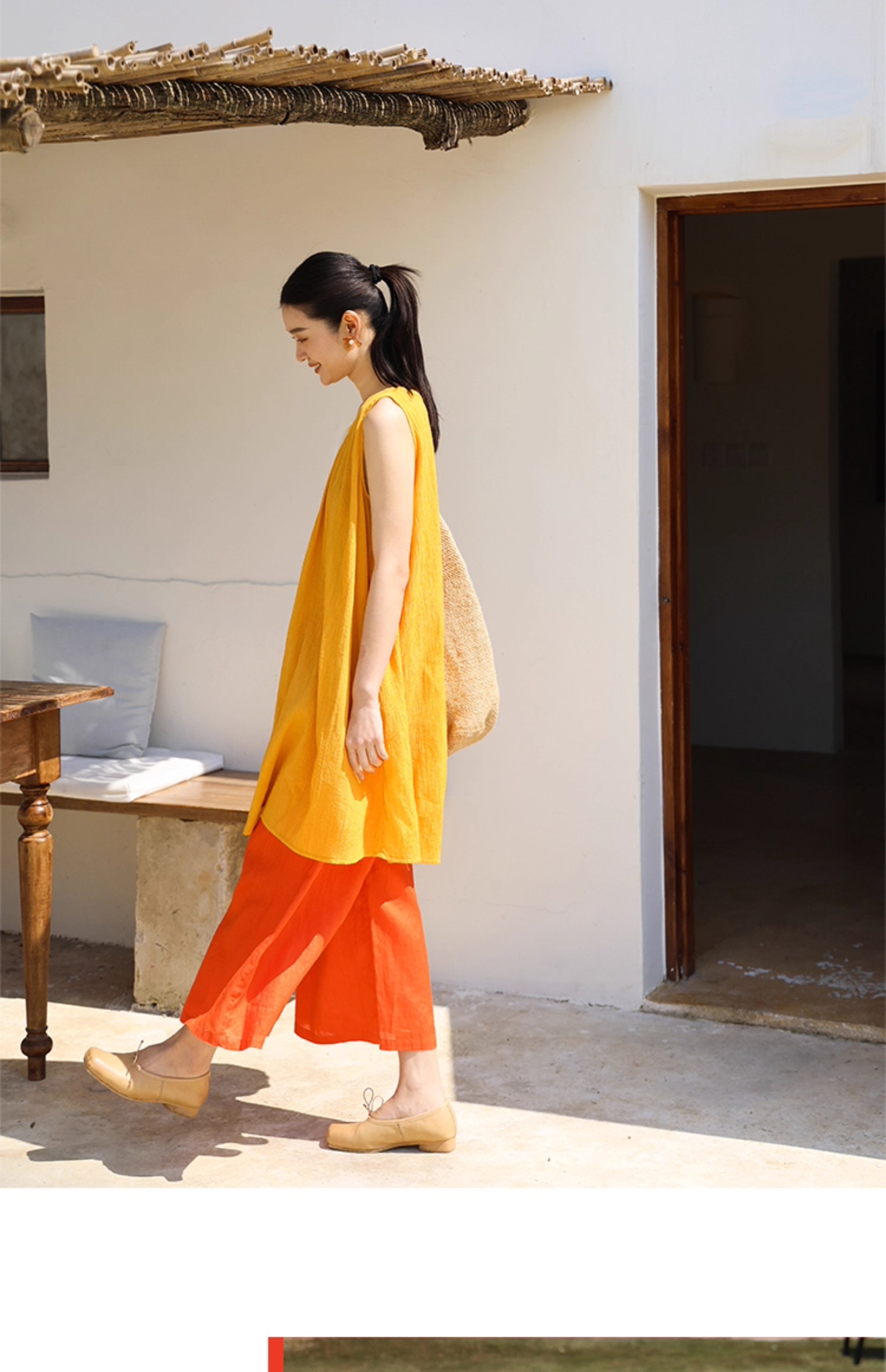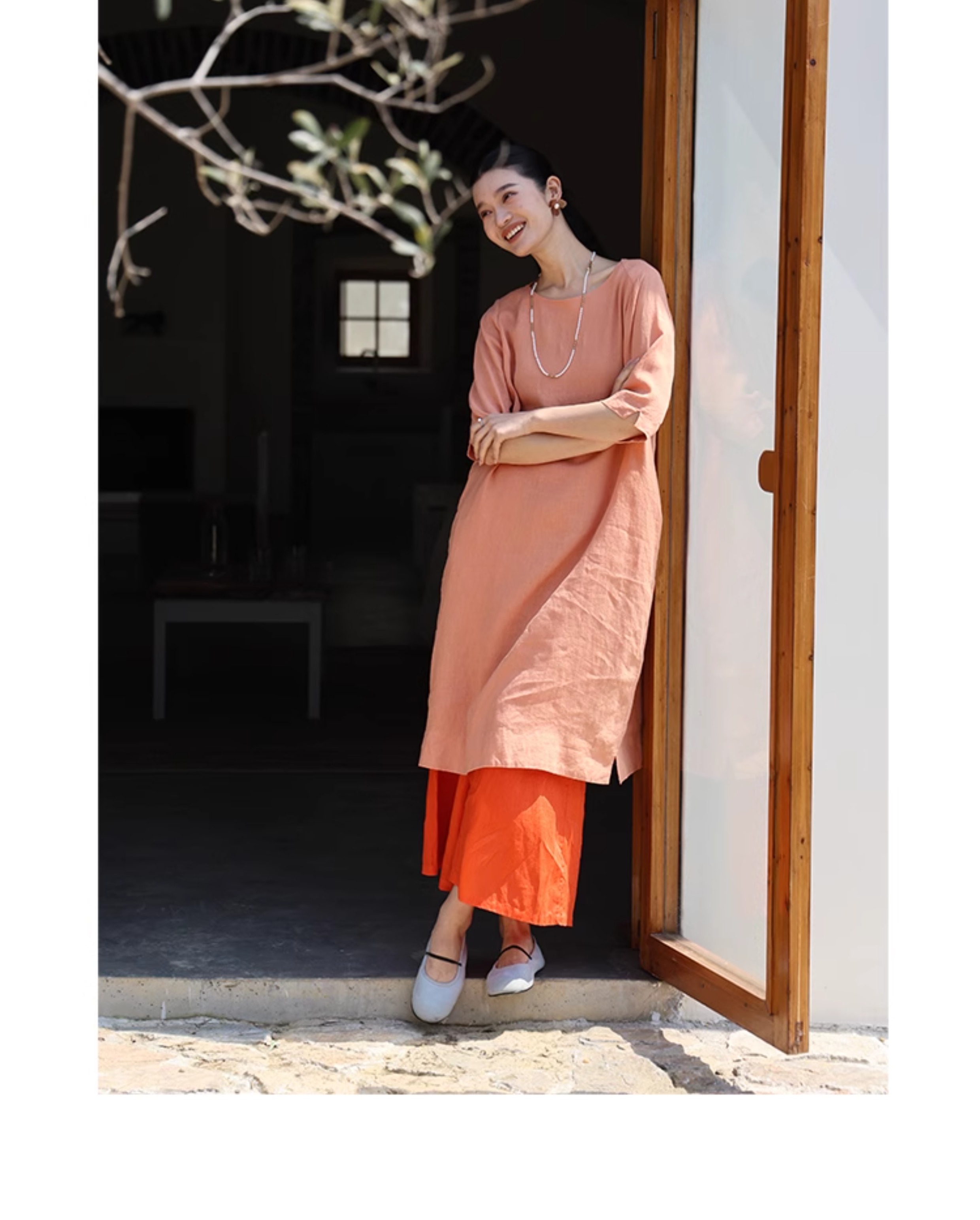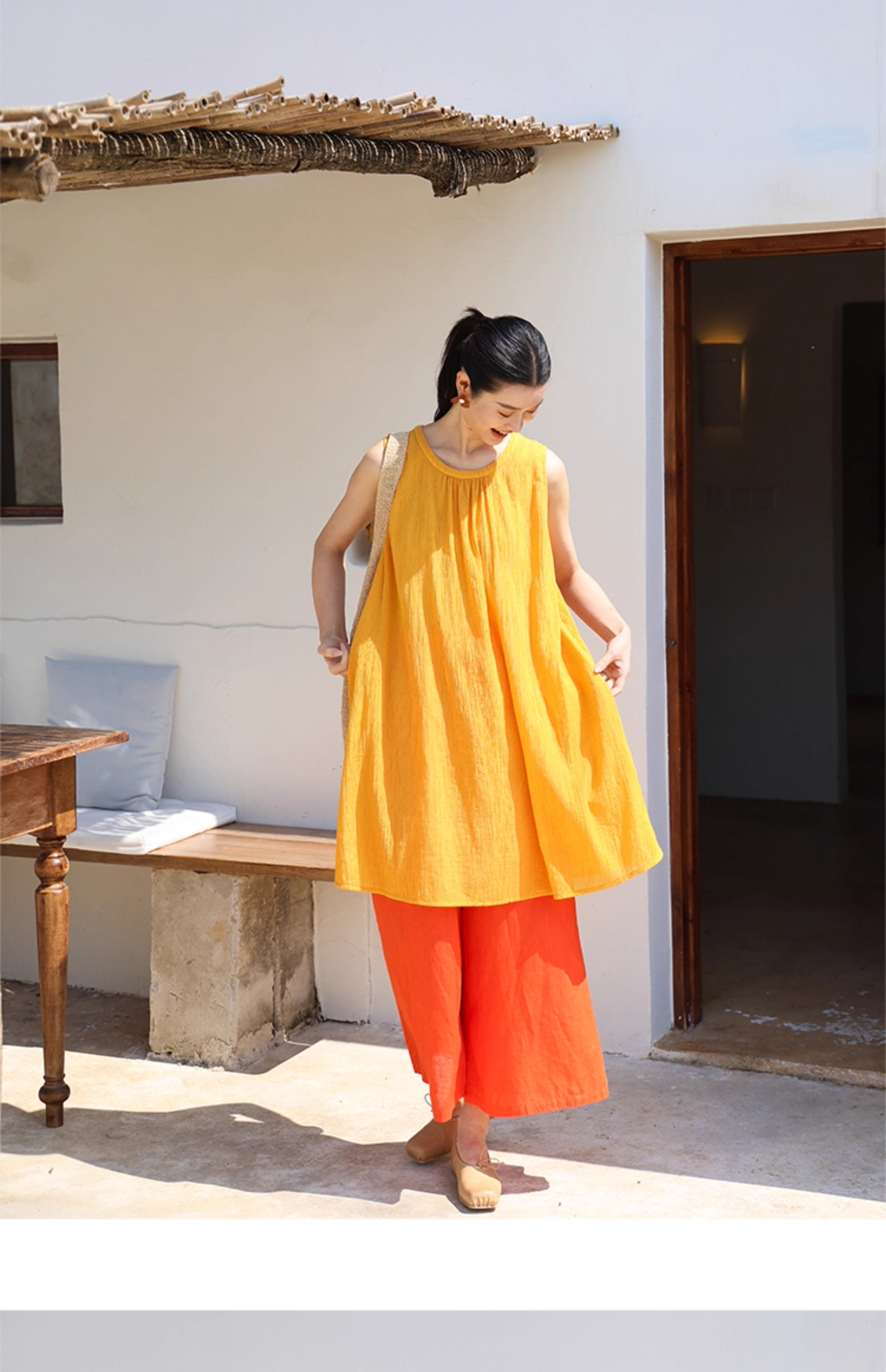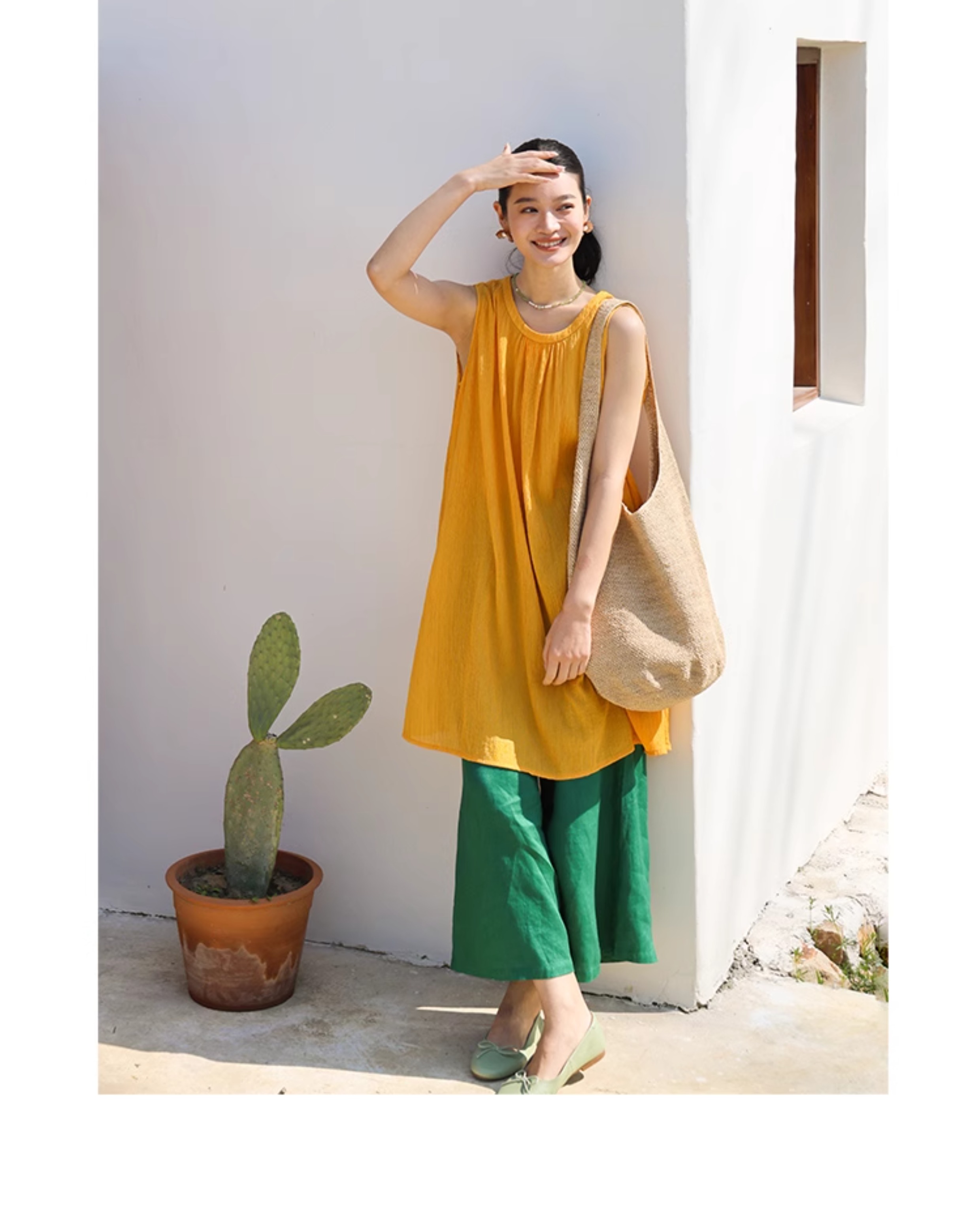以天然亚麻为载体,融合热烈色彩与自在剪裁为身在城市、心怀远方的女性提供兼具美学与舒适的旅行着装