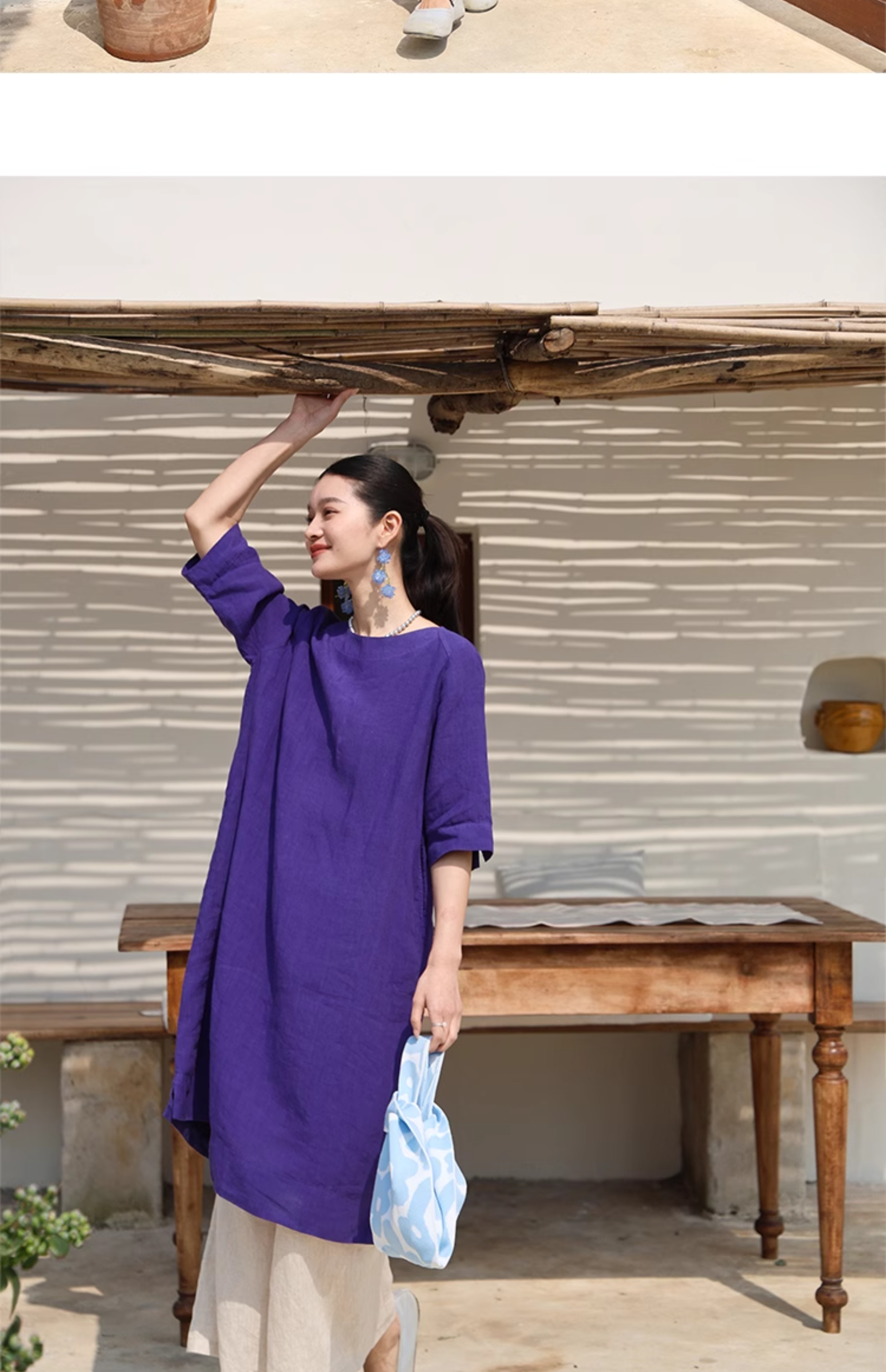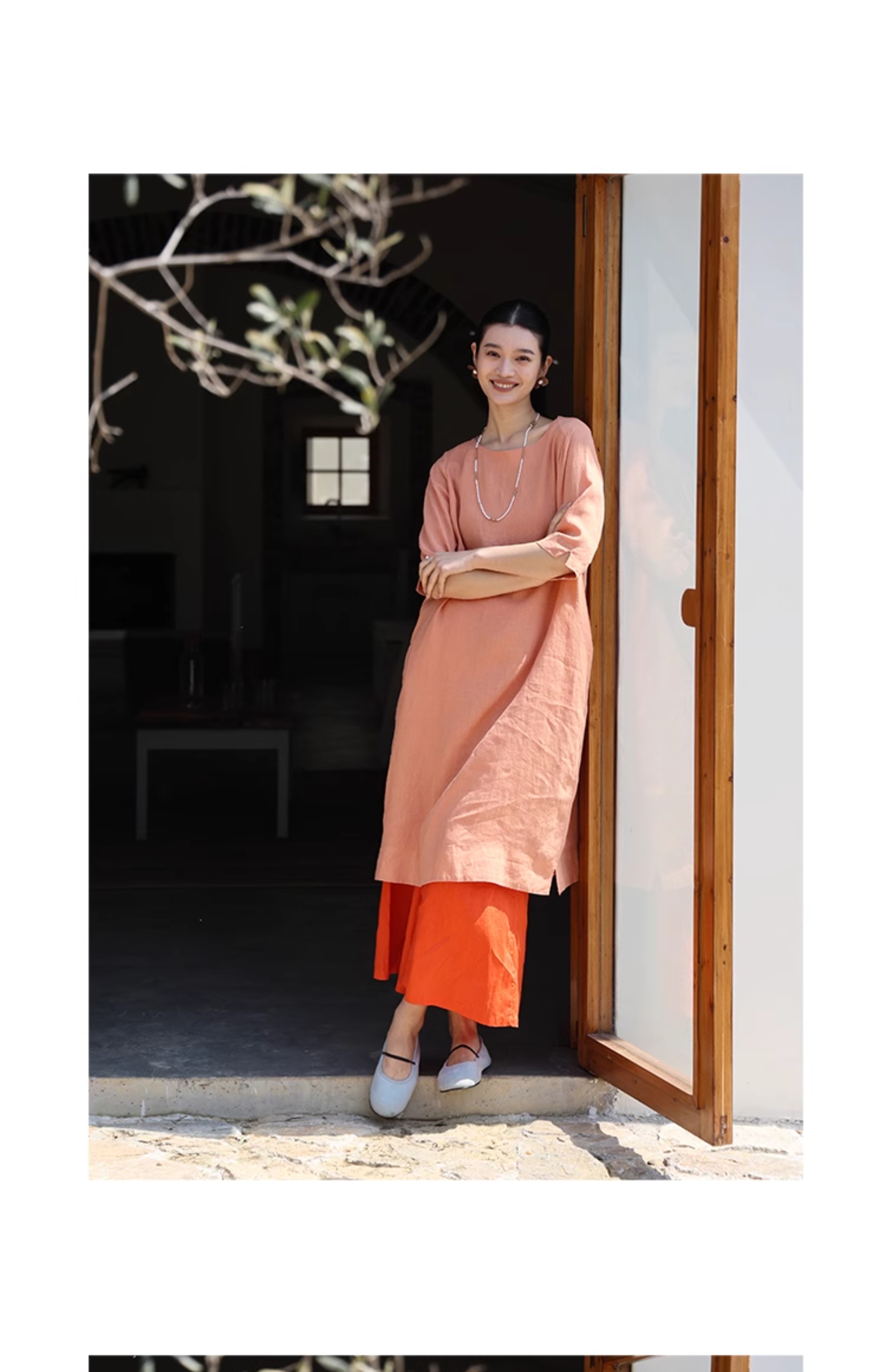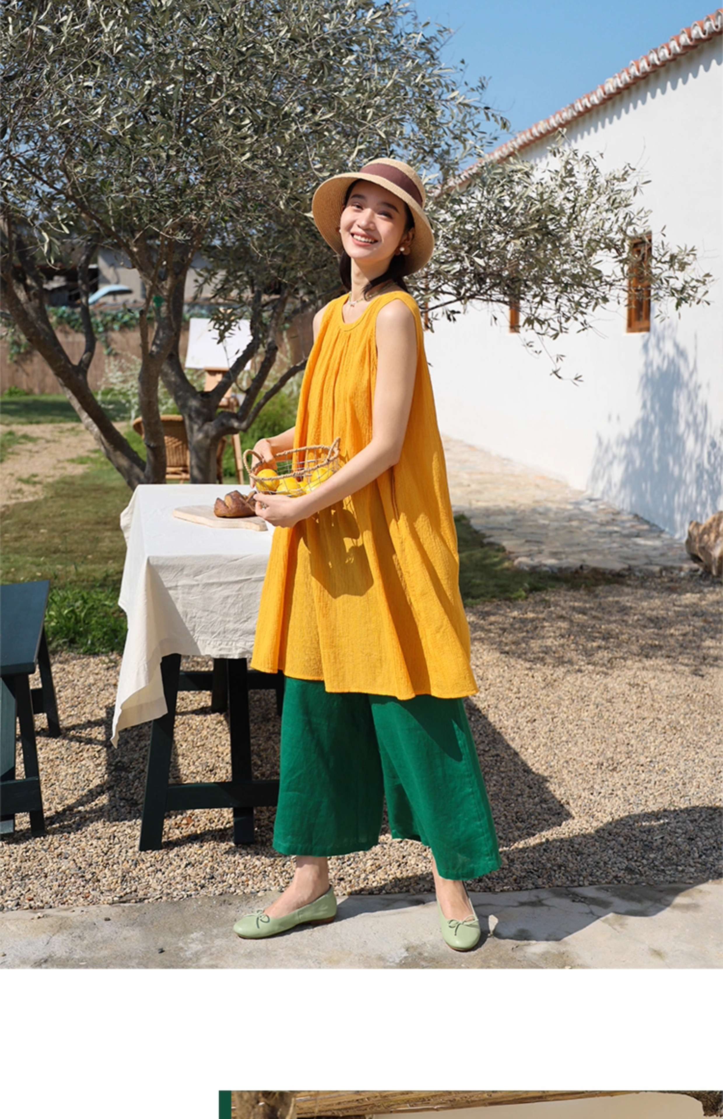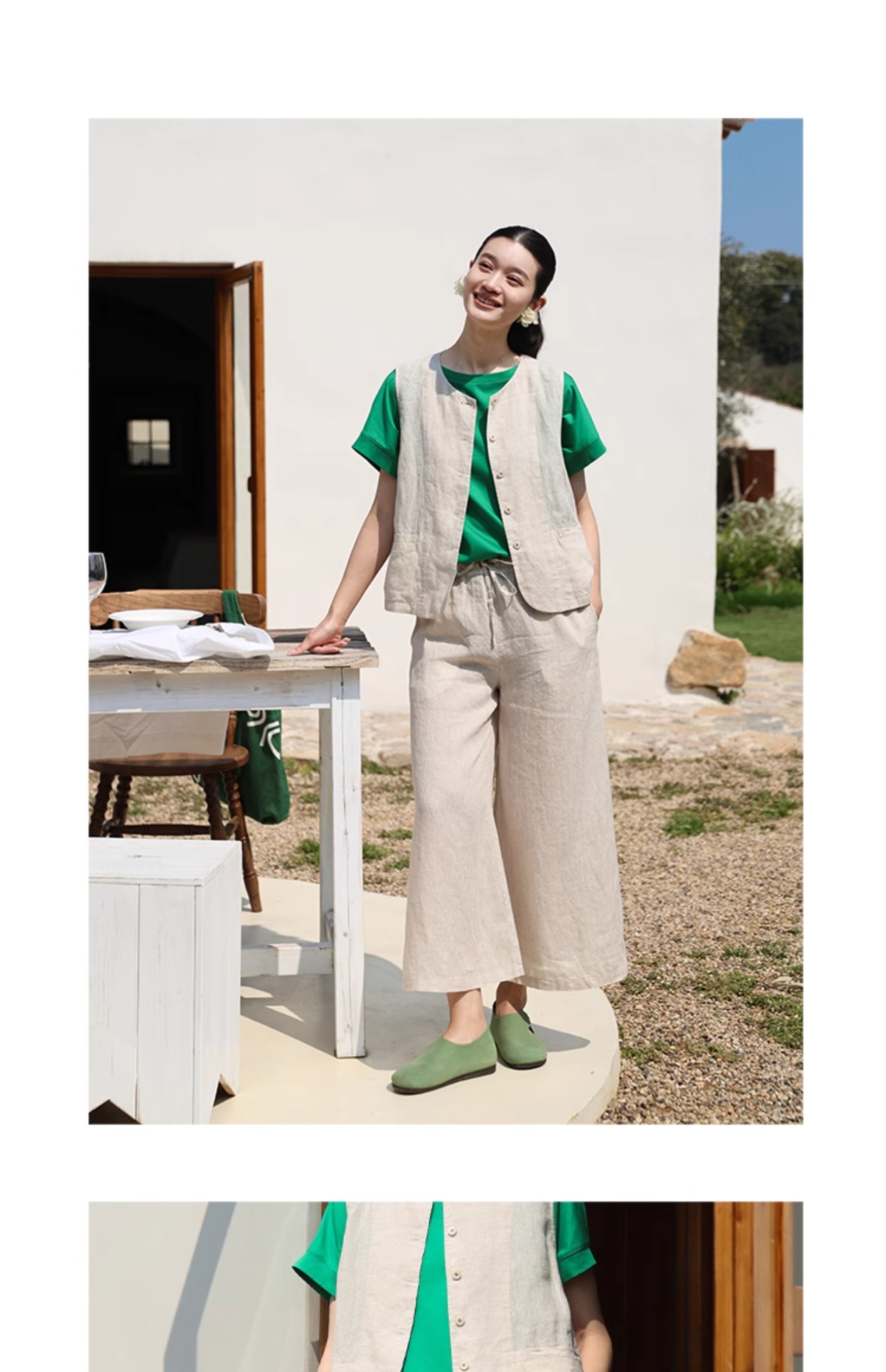 以天然亚麻为载体,融合热烈色彩与自在剪裁为身在城市、心怀远方的女性提供兼具美学与舒适的旅行着装