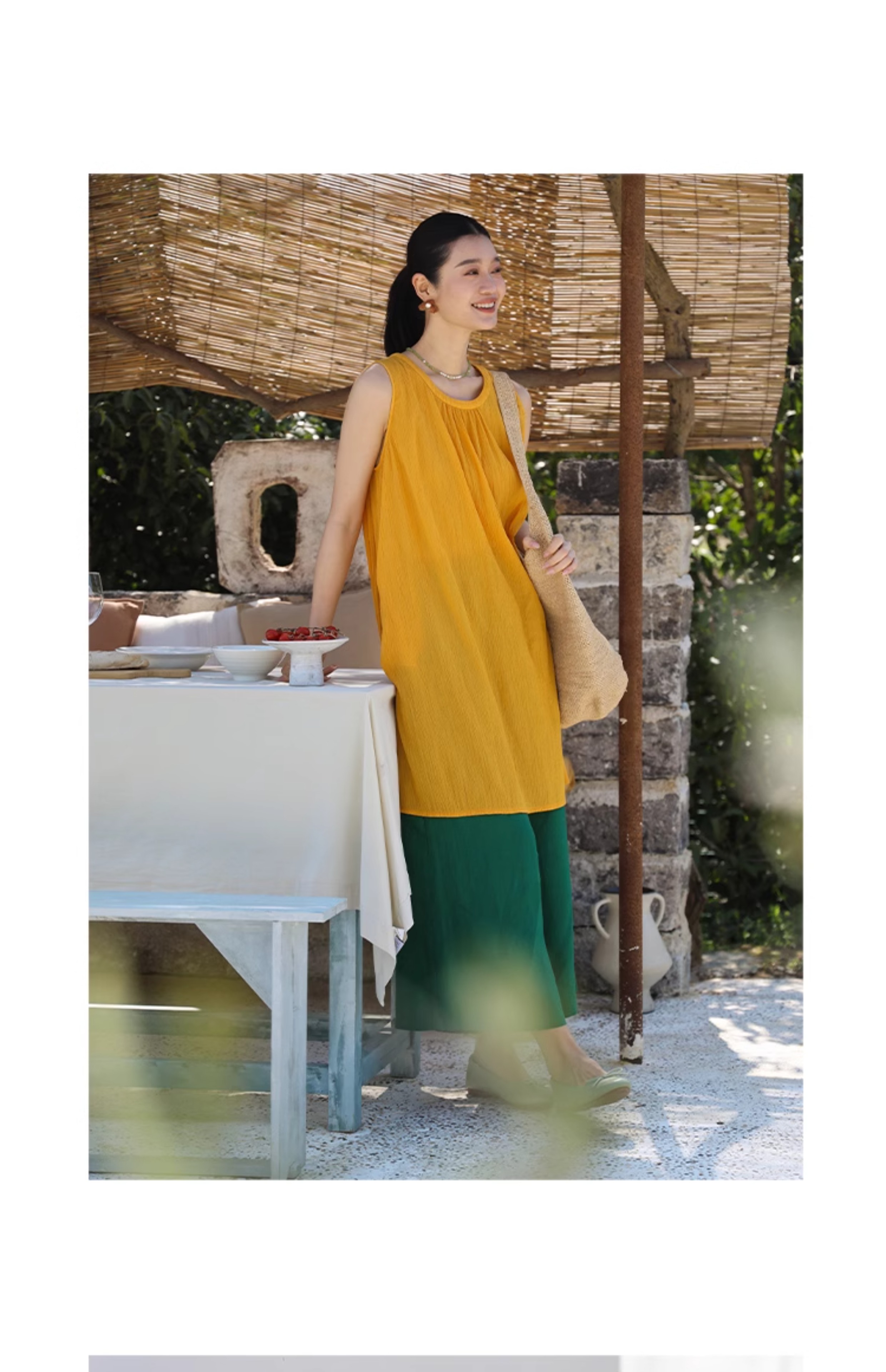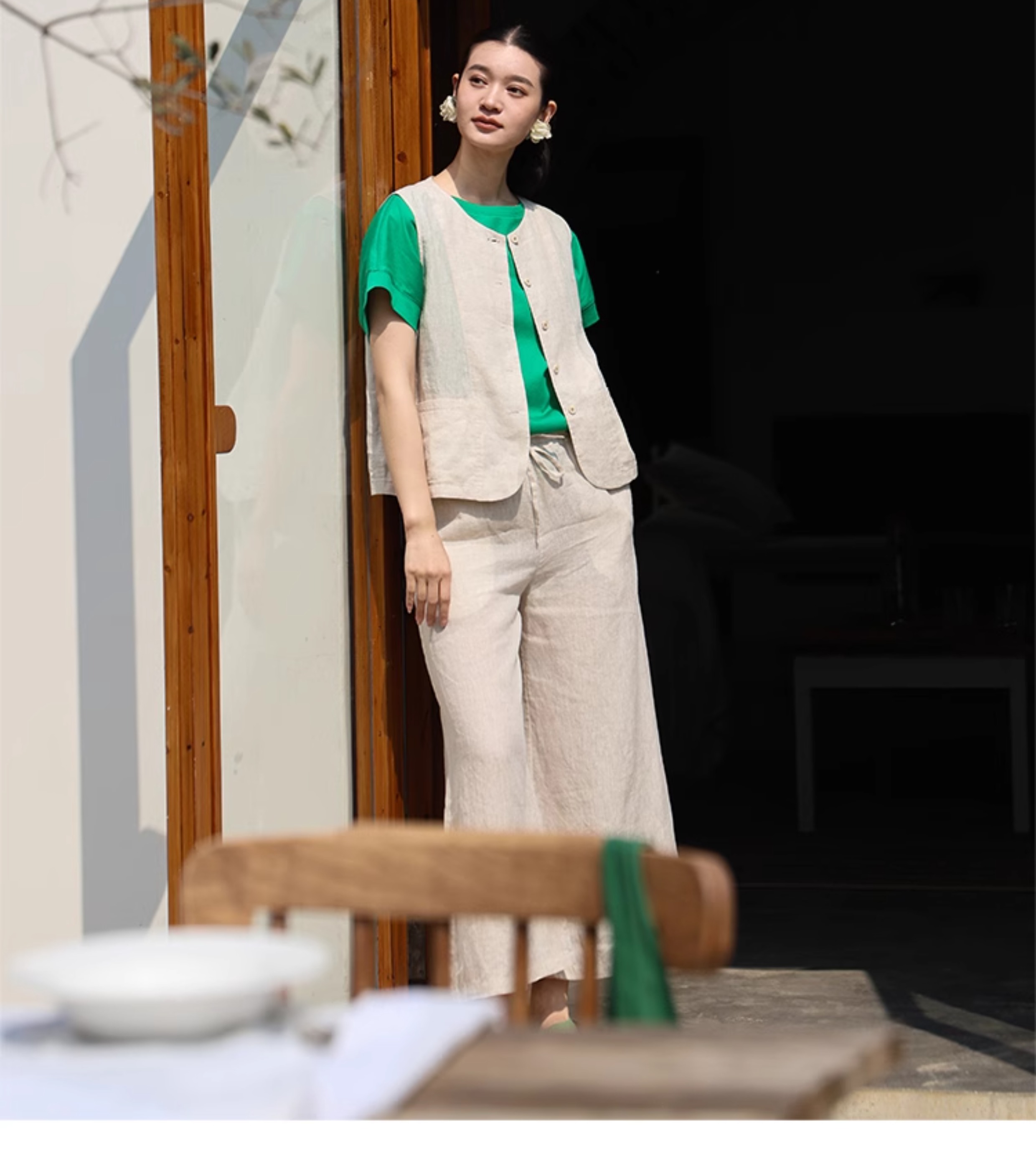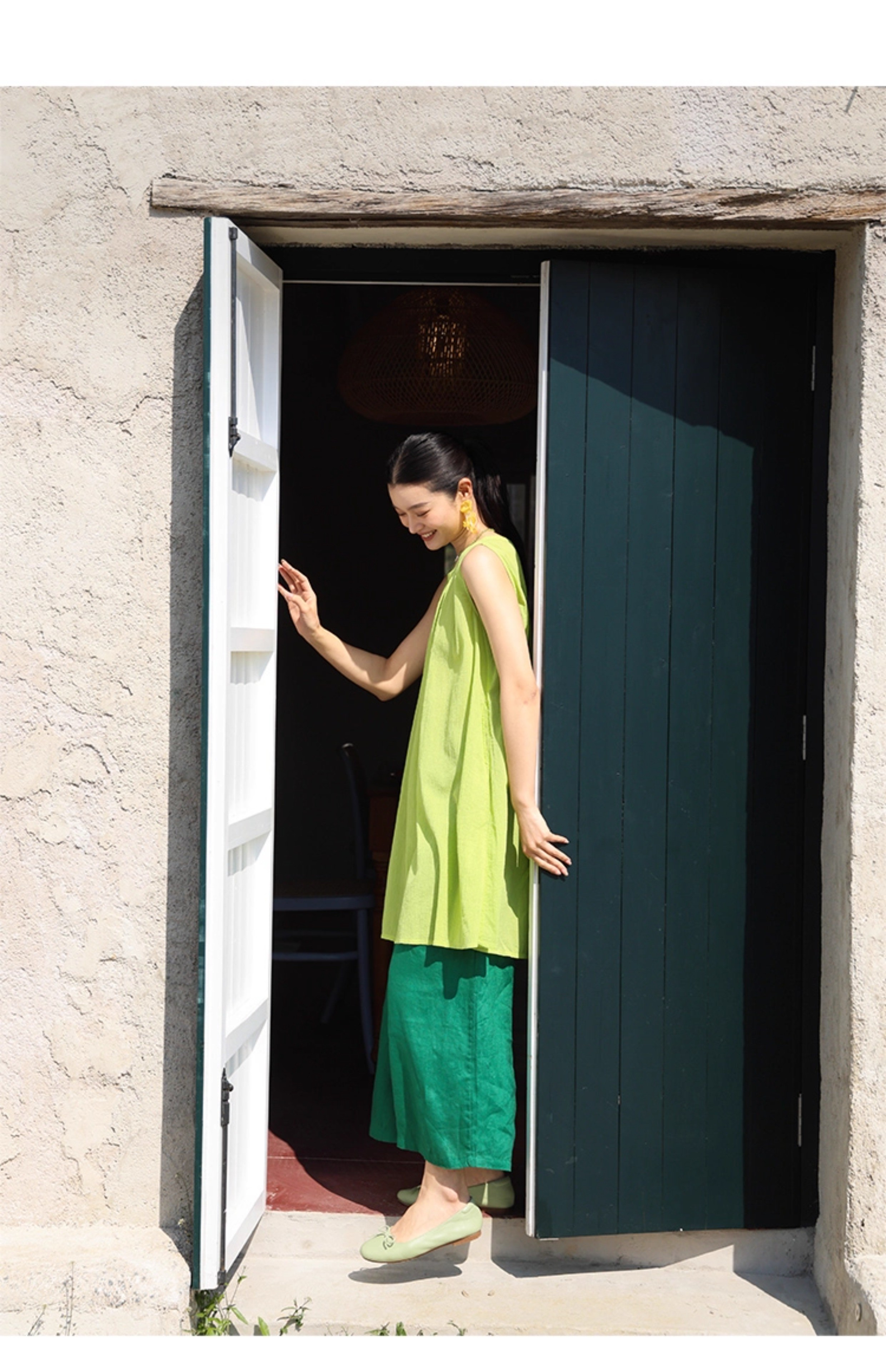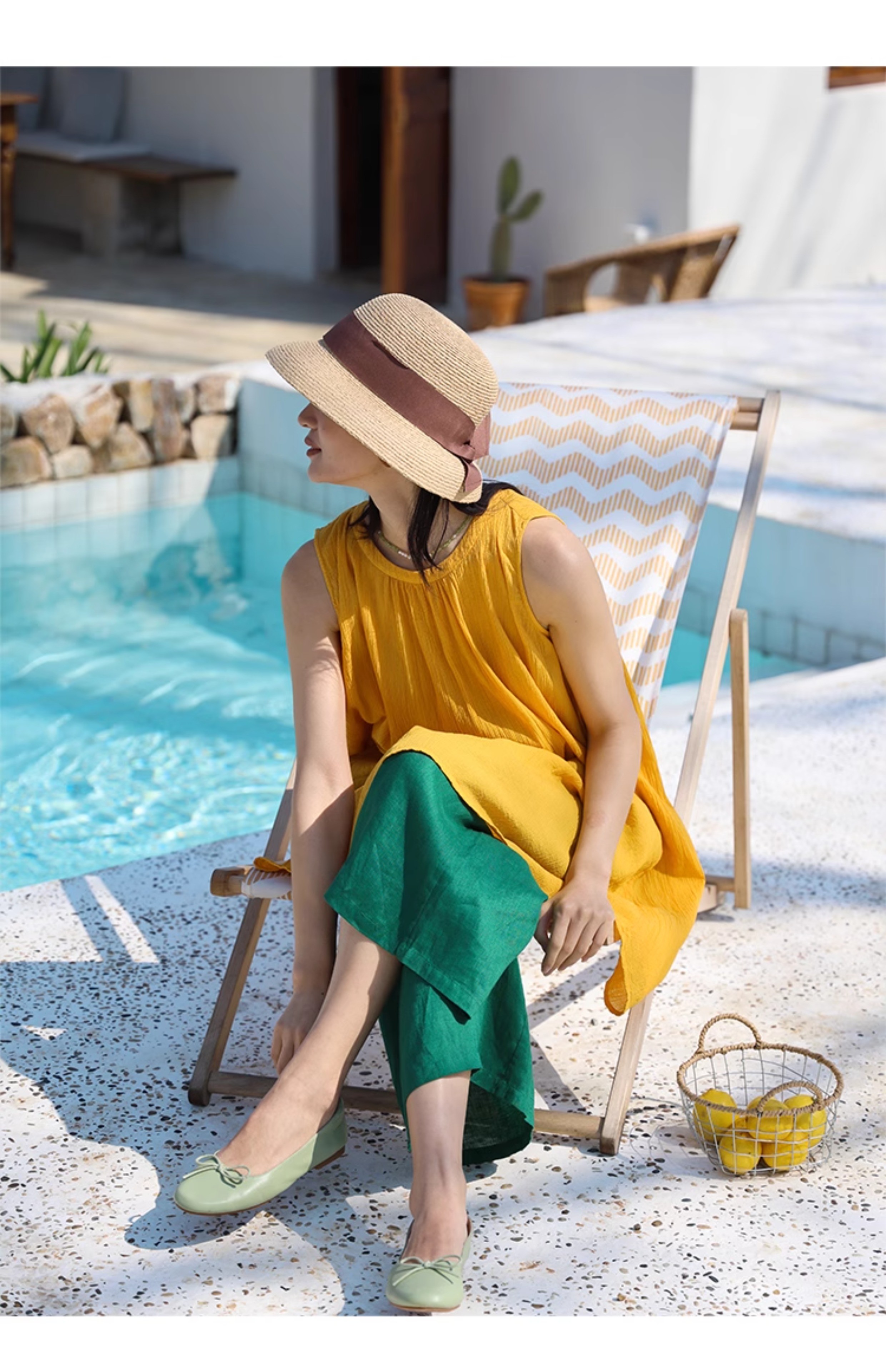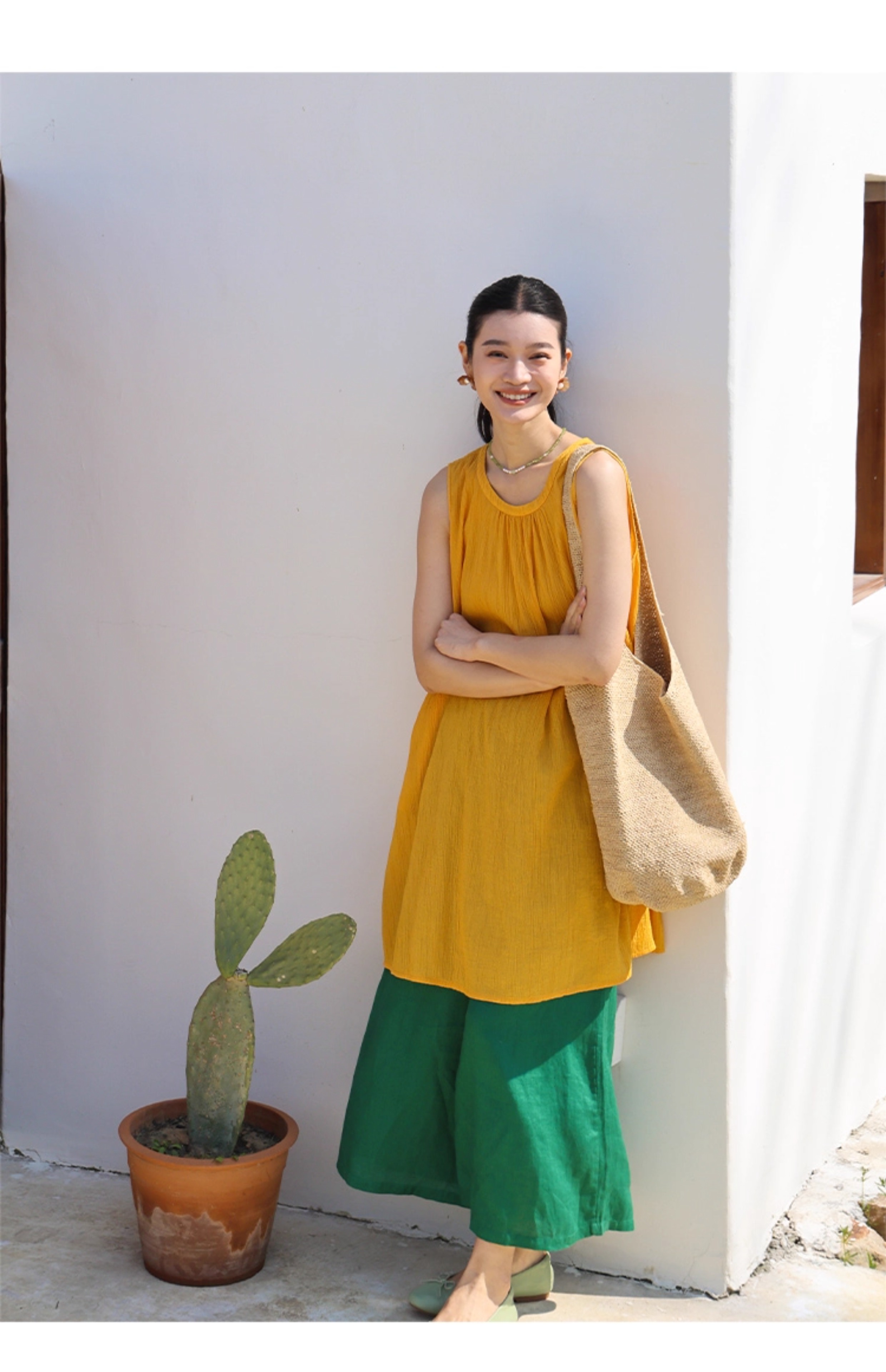 以天然亚麻为载体,融合热烈色彩与自在剪裁为身在城市、心怀远方的女性提供兼具美学与舒适的旅行着装