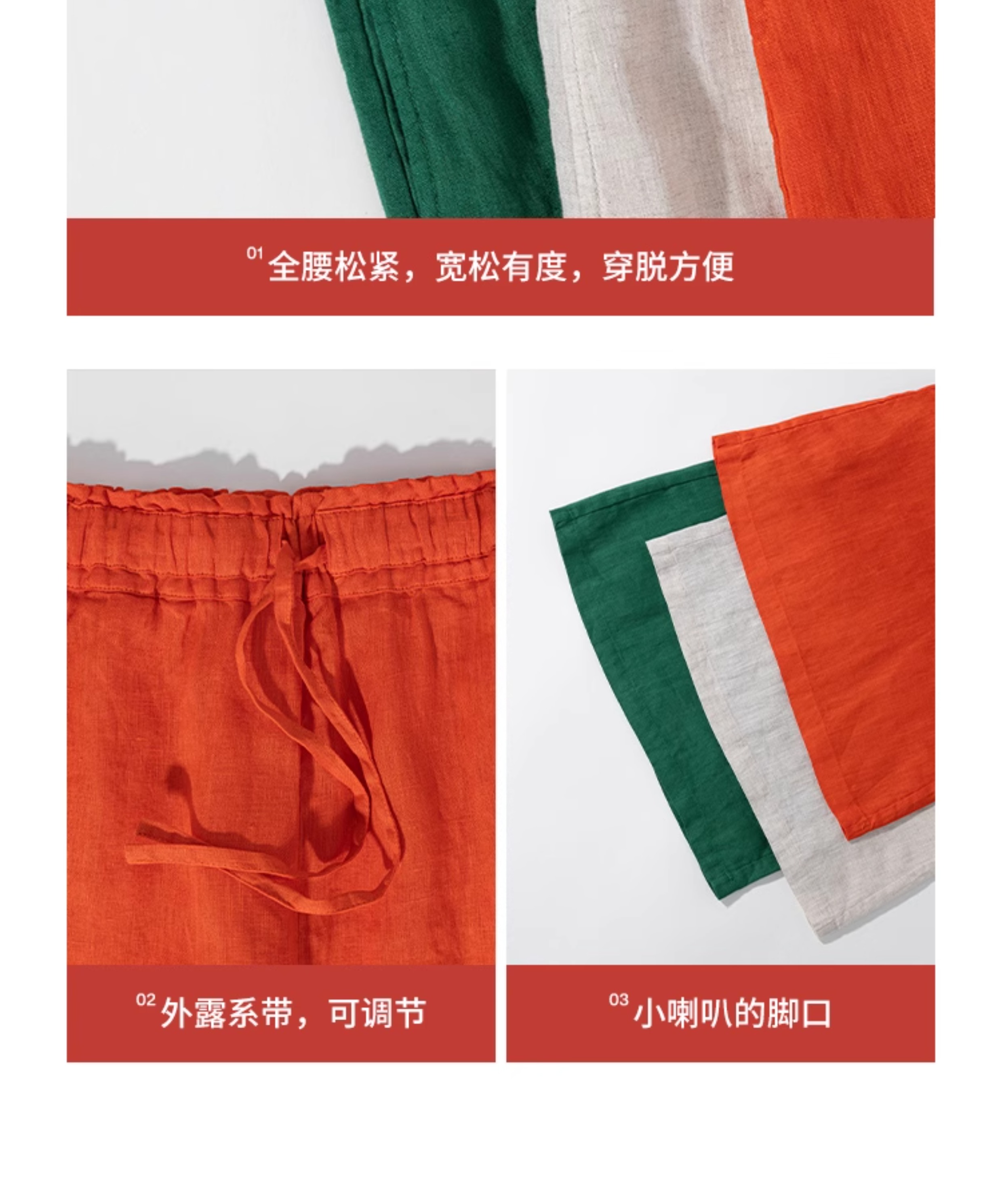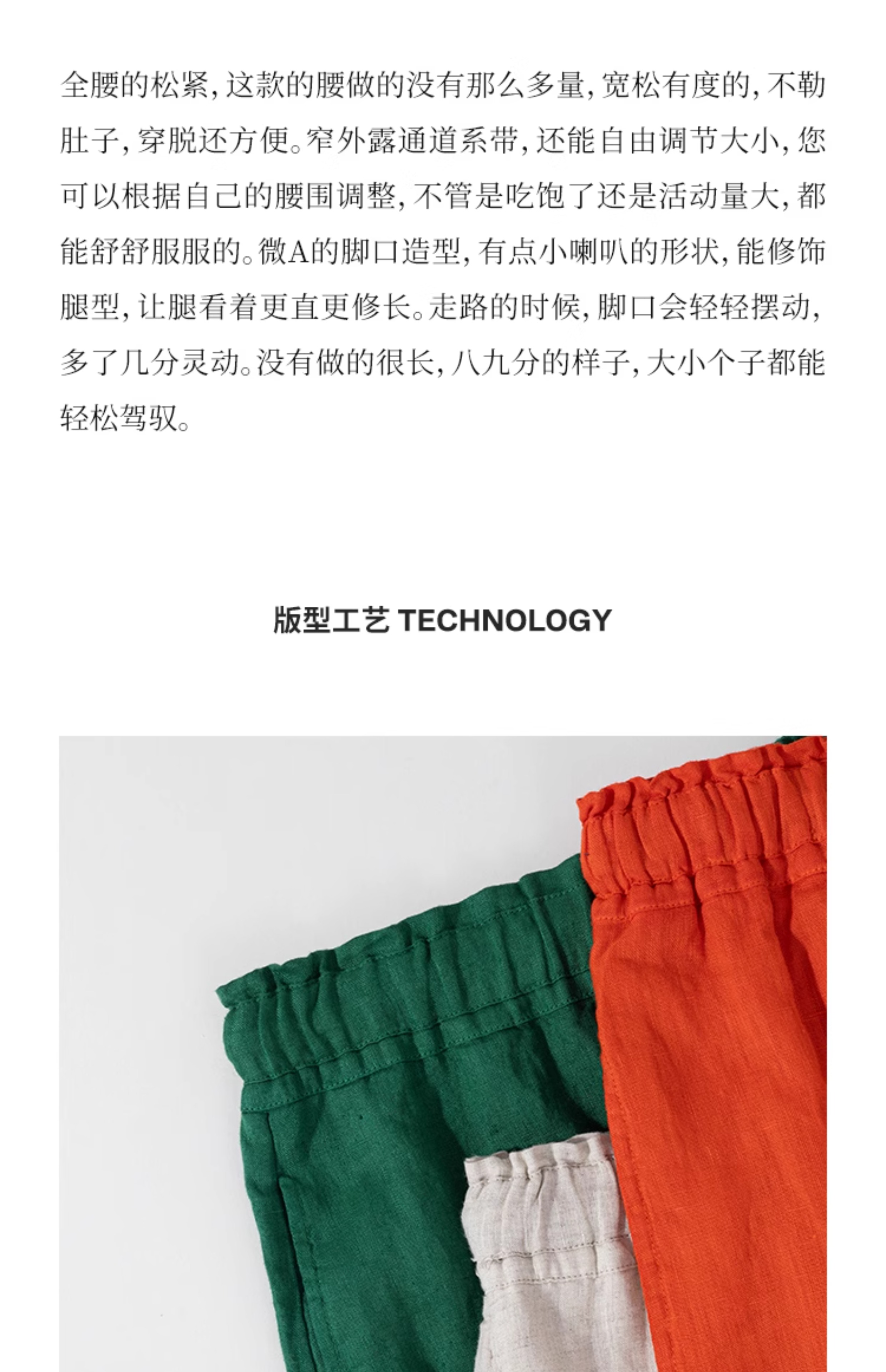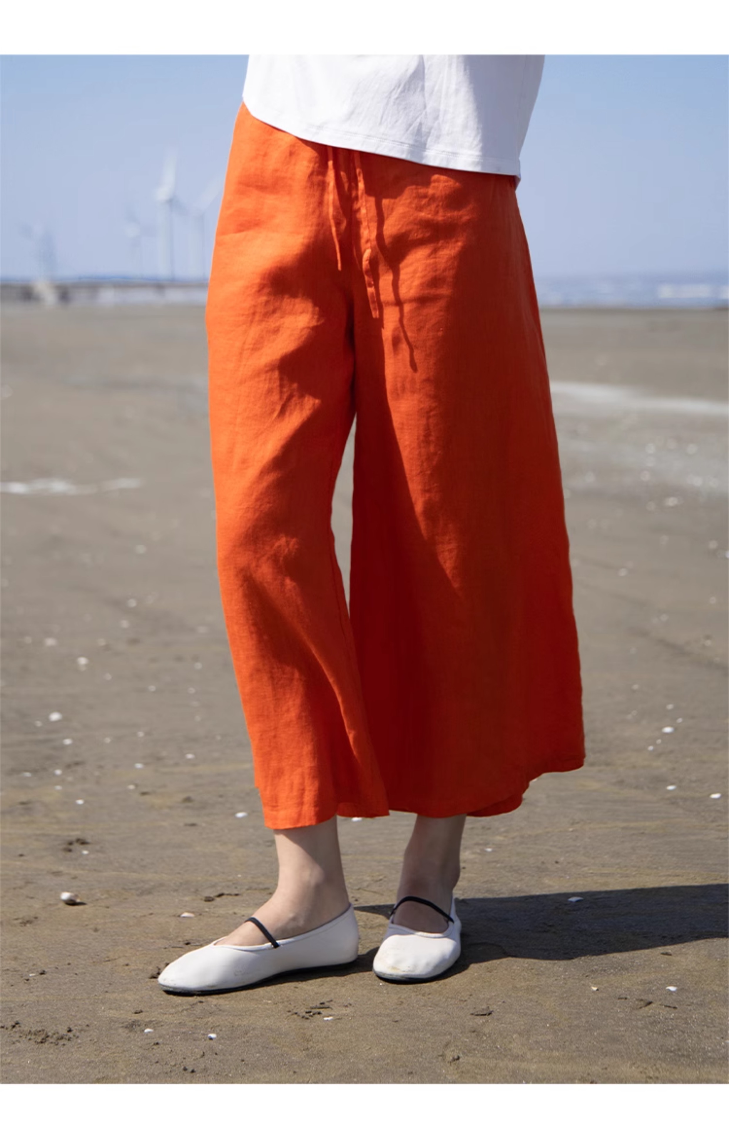 绽放旅行女装259朵/松紧腰系带喇叭裤高支亚麻立体系带九分休闲裤