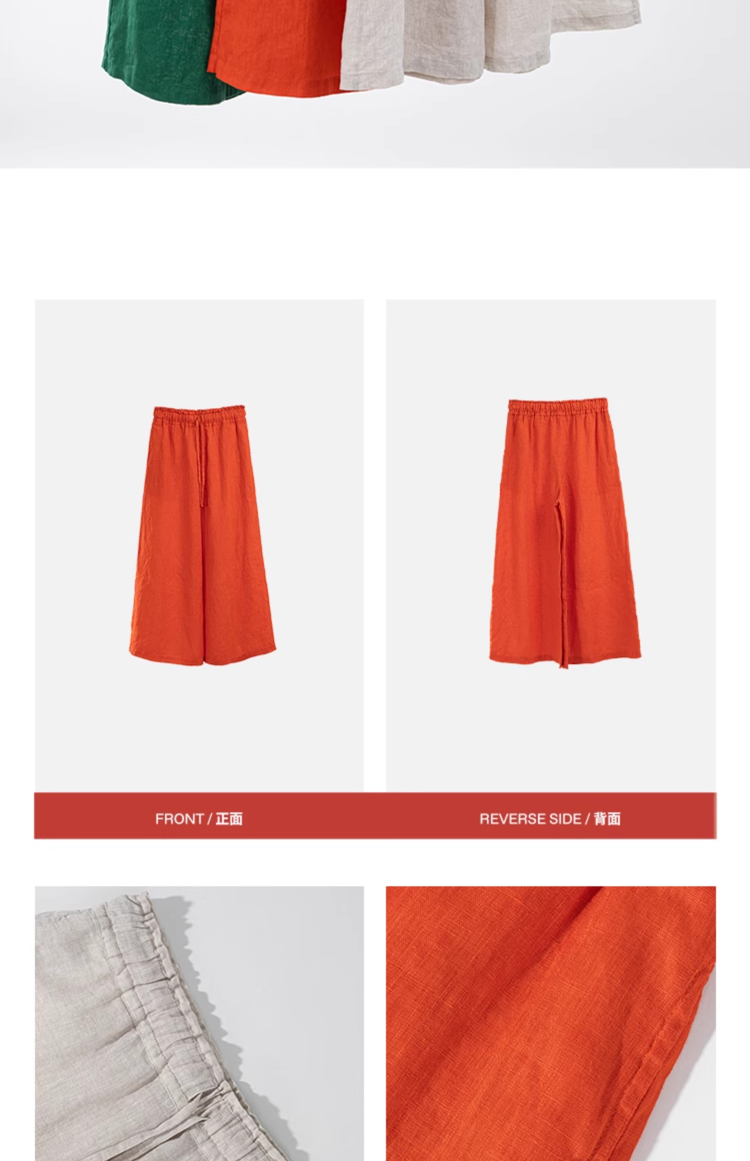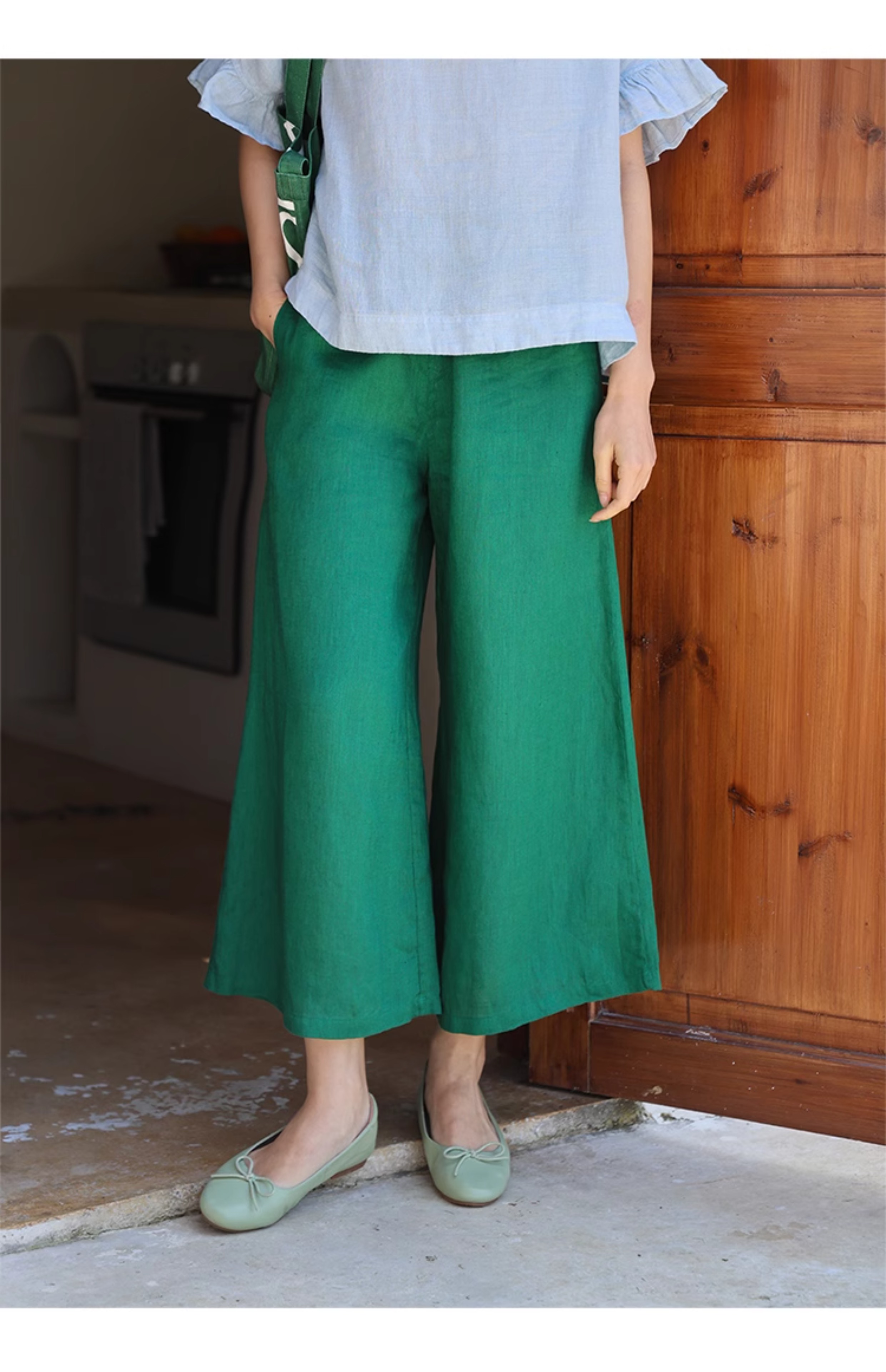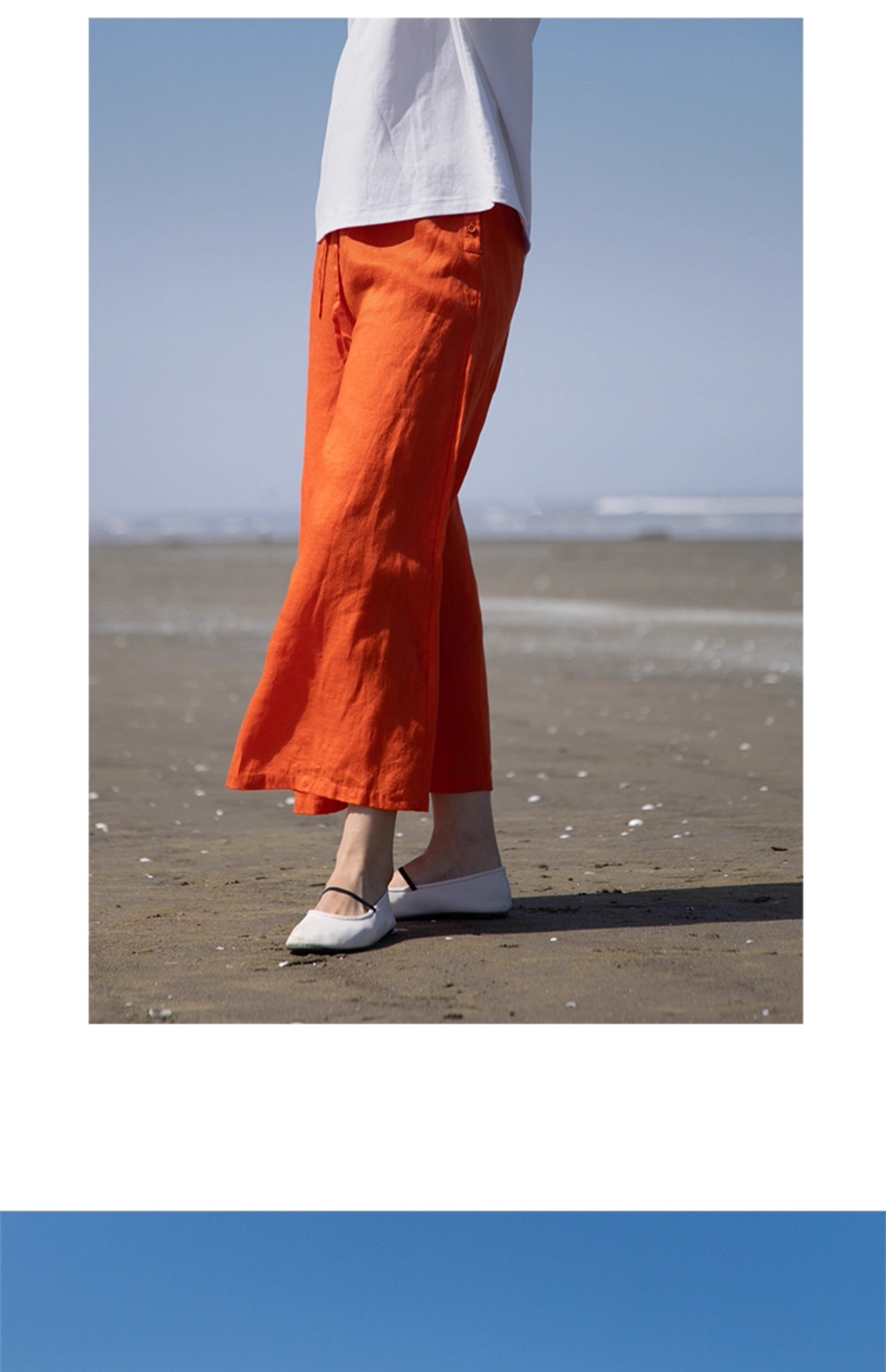 绽放旅行女装259朵/松紧腰系带喇叭裤高支亚麻立体系带九分休闲裤