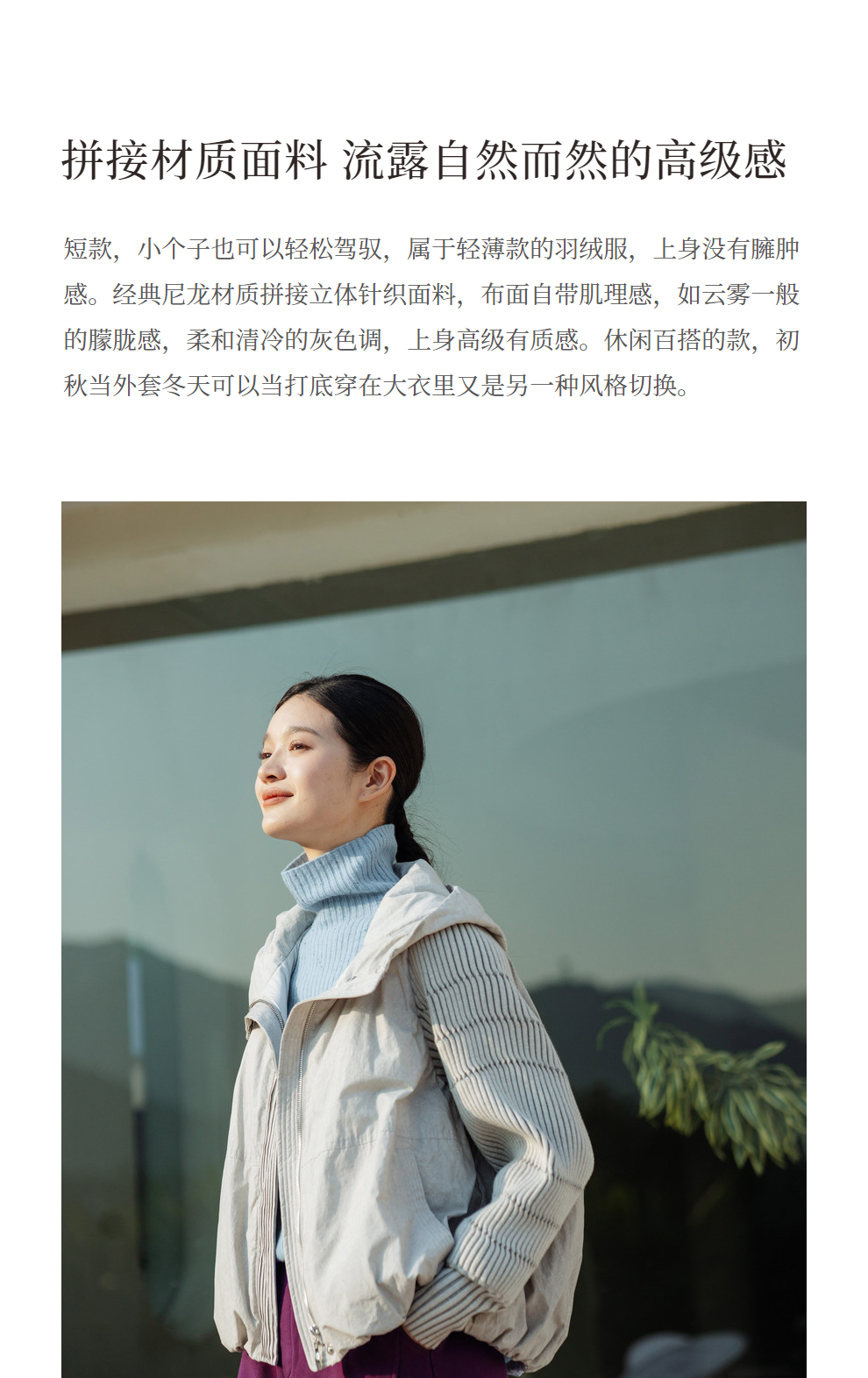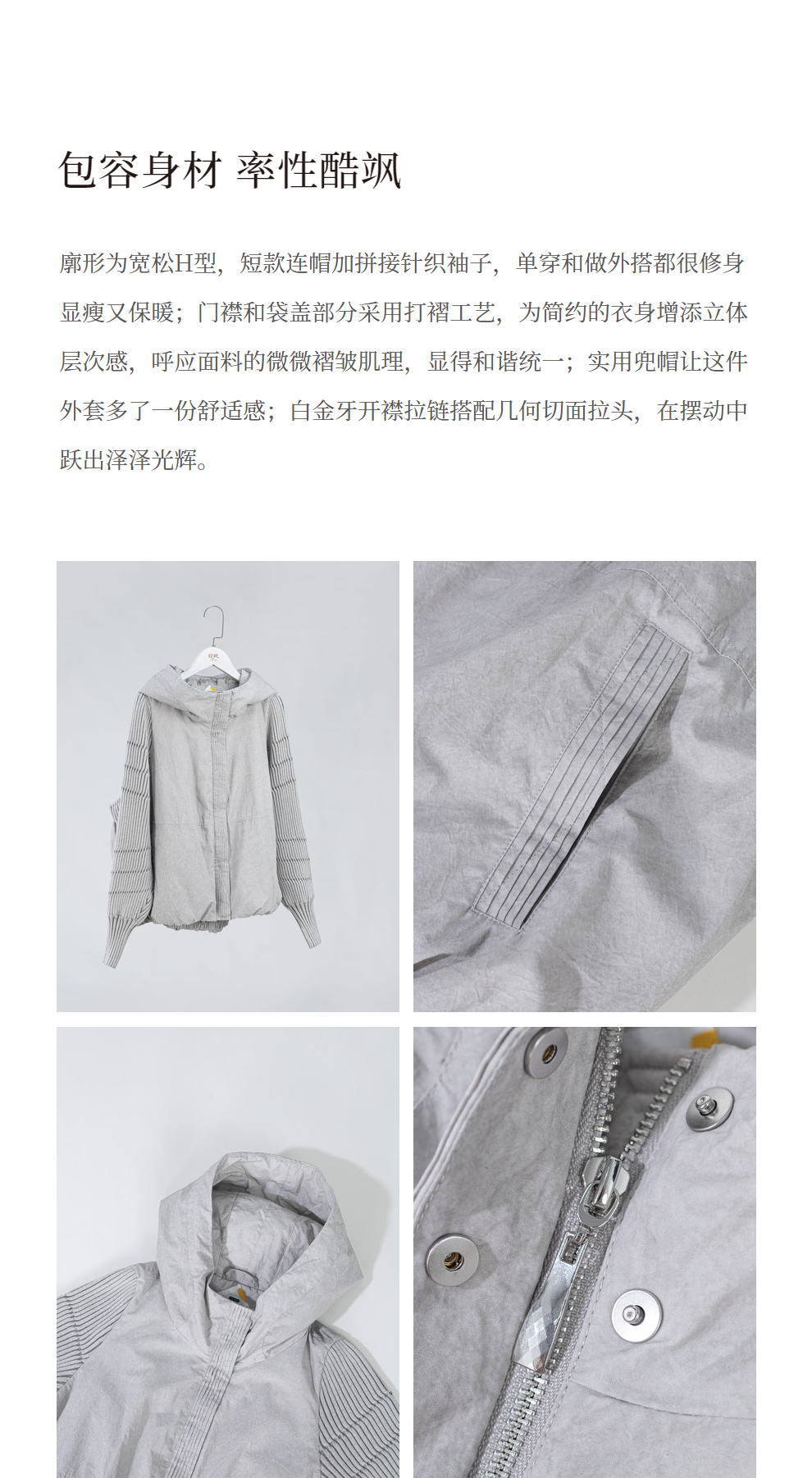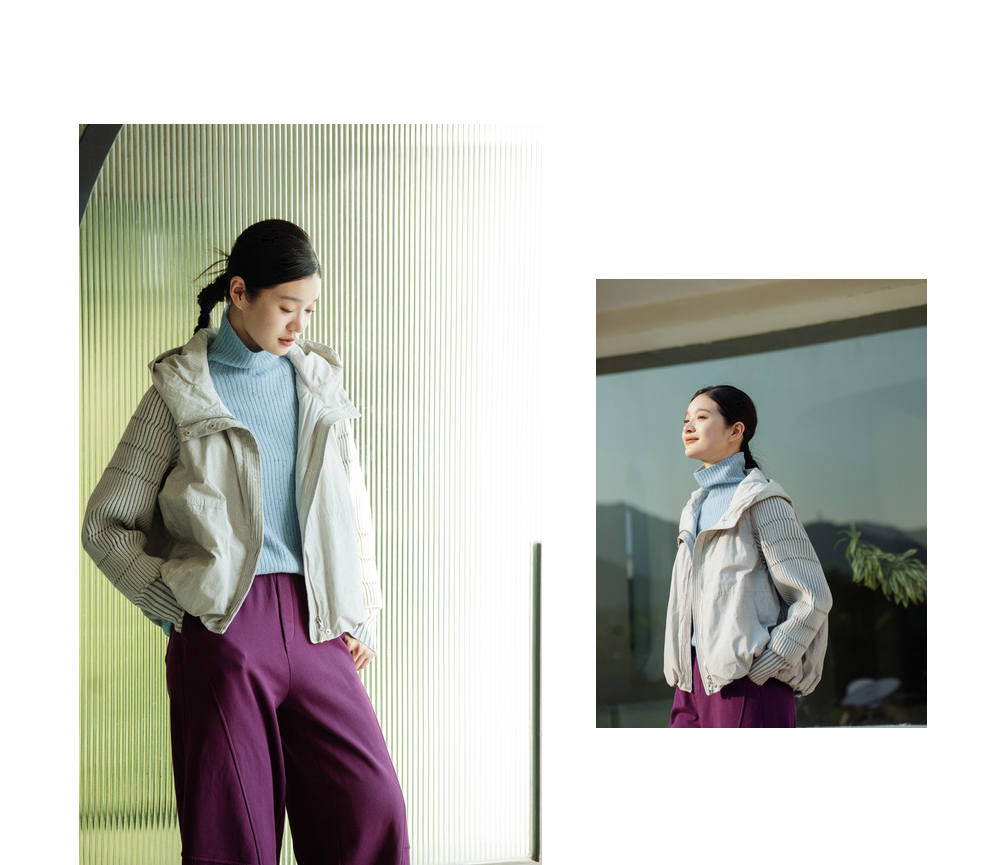 绽放707朵/冬季轻薄连帽材质拼接针织袖子简约宽松短款保暖羽绒服