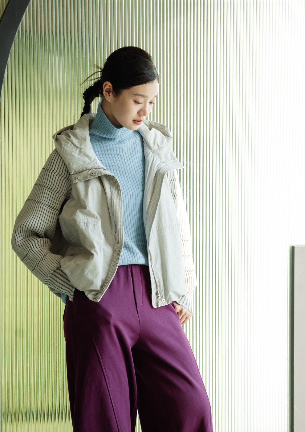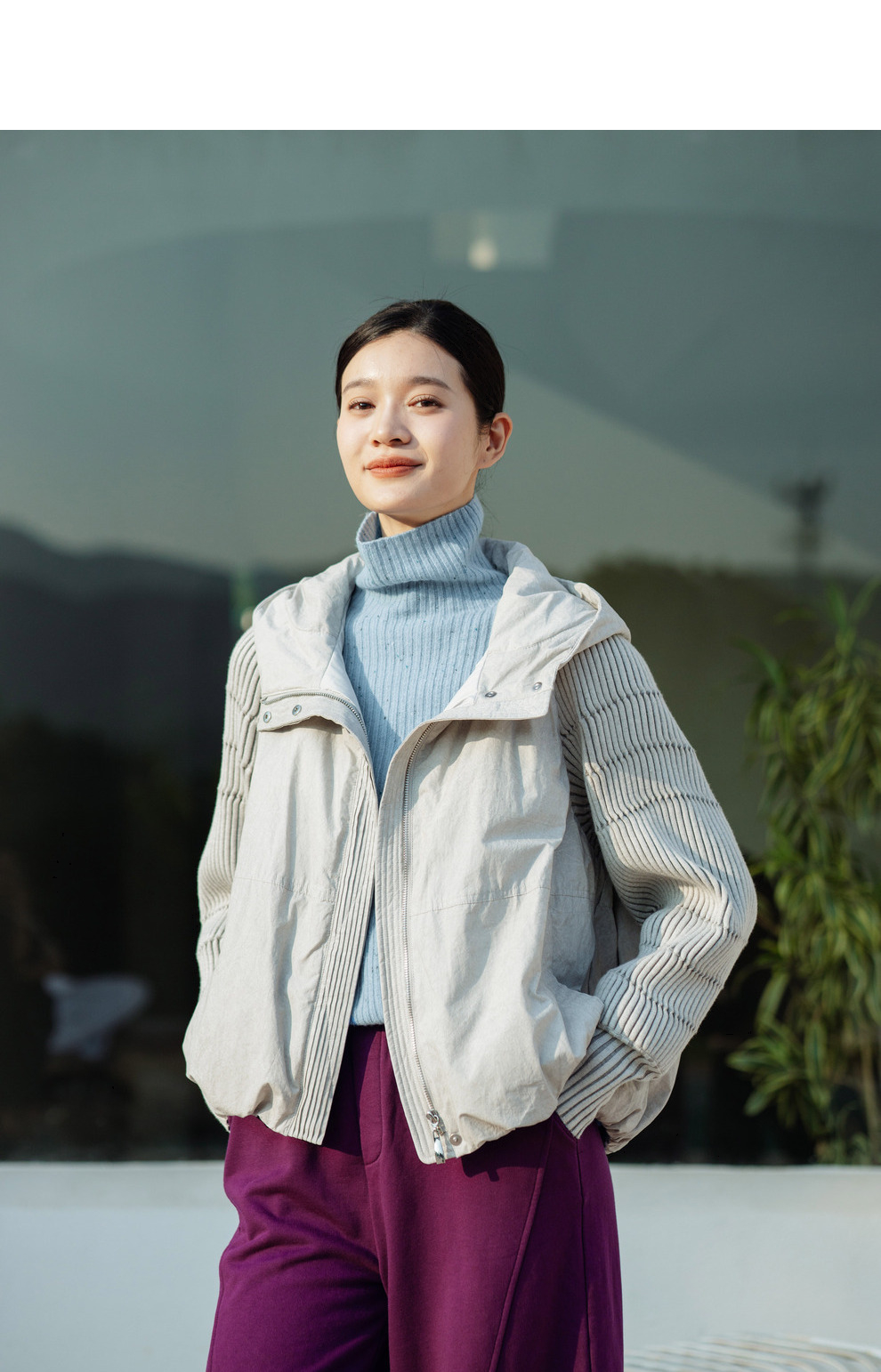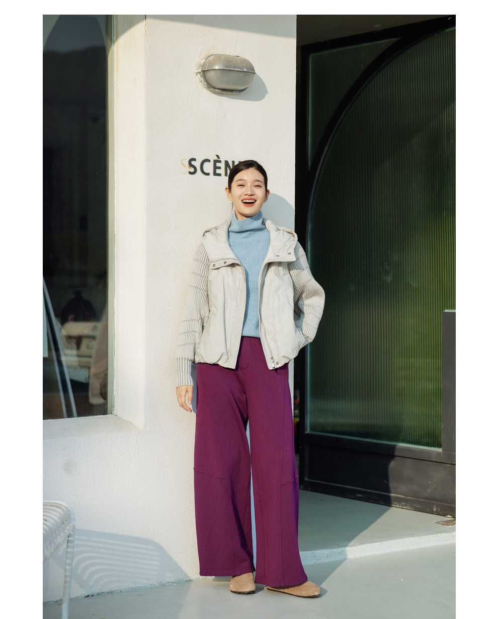 绽放707朵/冬季轻薄连帽材质拼接针织袖子简约宽松短款保暖羽绒服