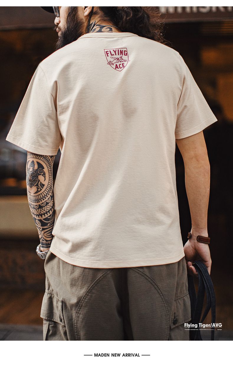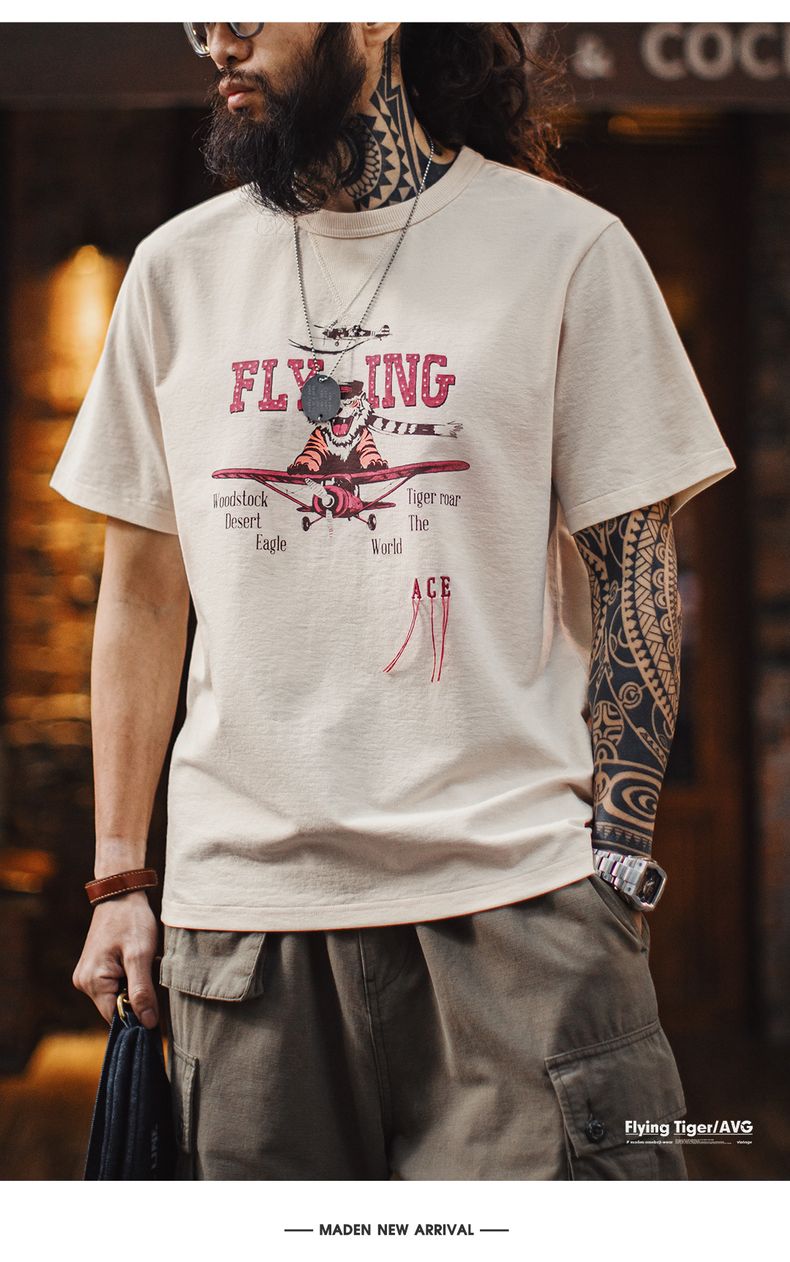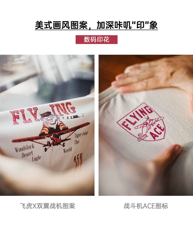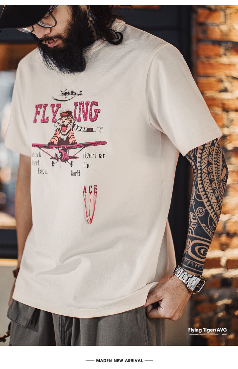 工装优选美式复古老虎印花阿美咔叽T恤宽松休闲二本针短袖男春夏
