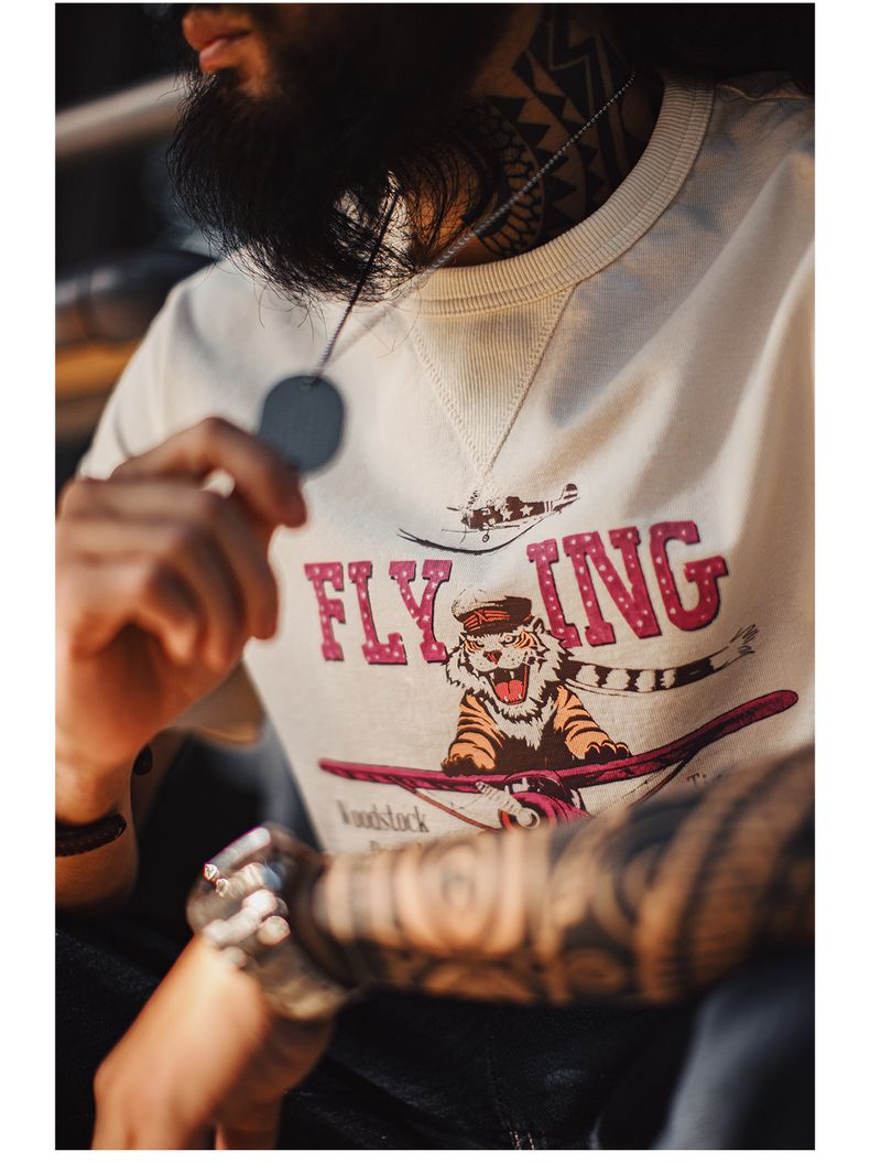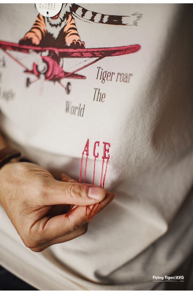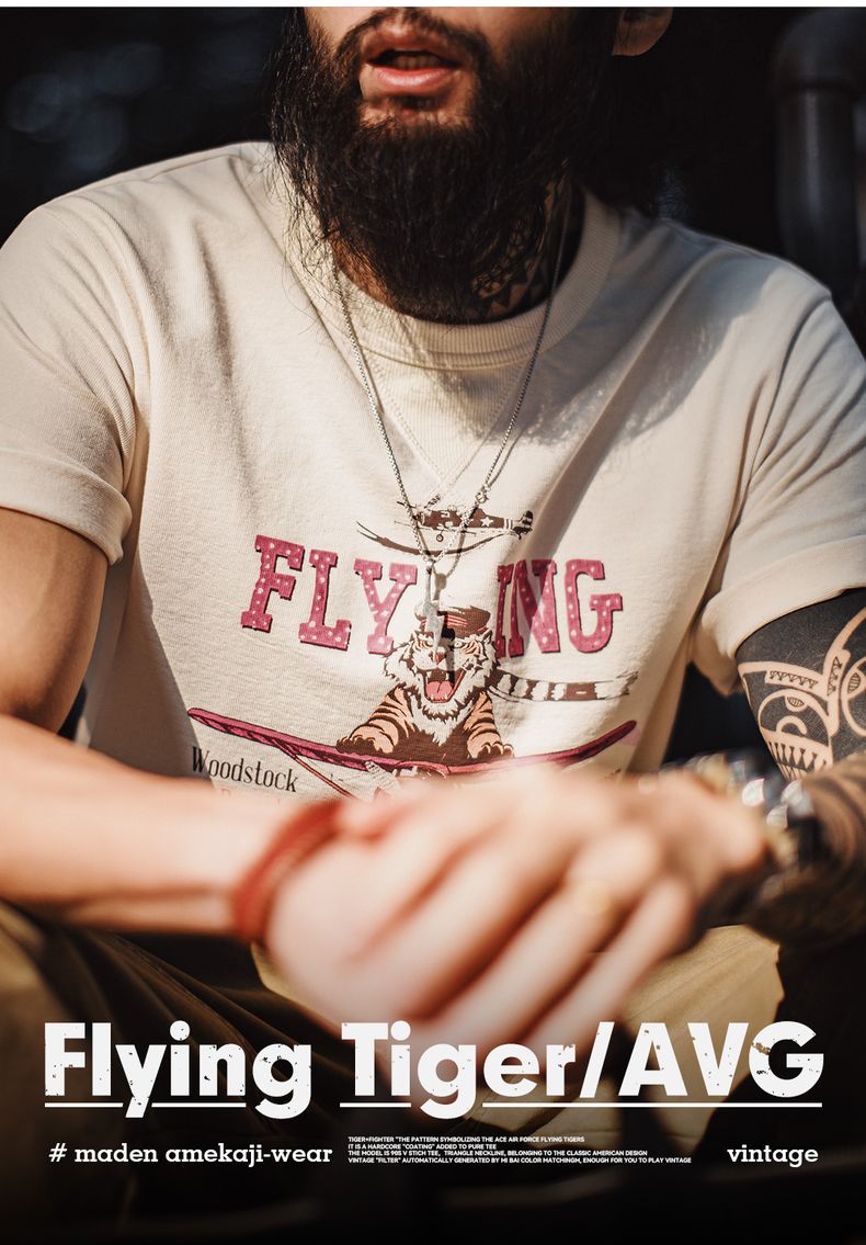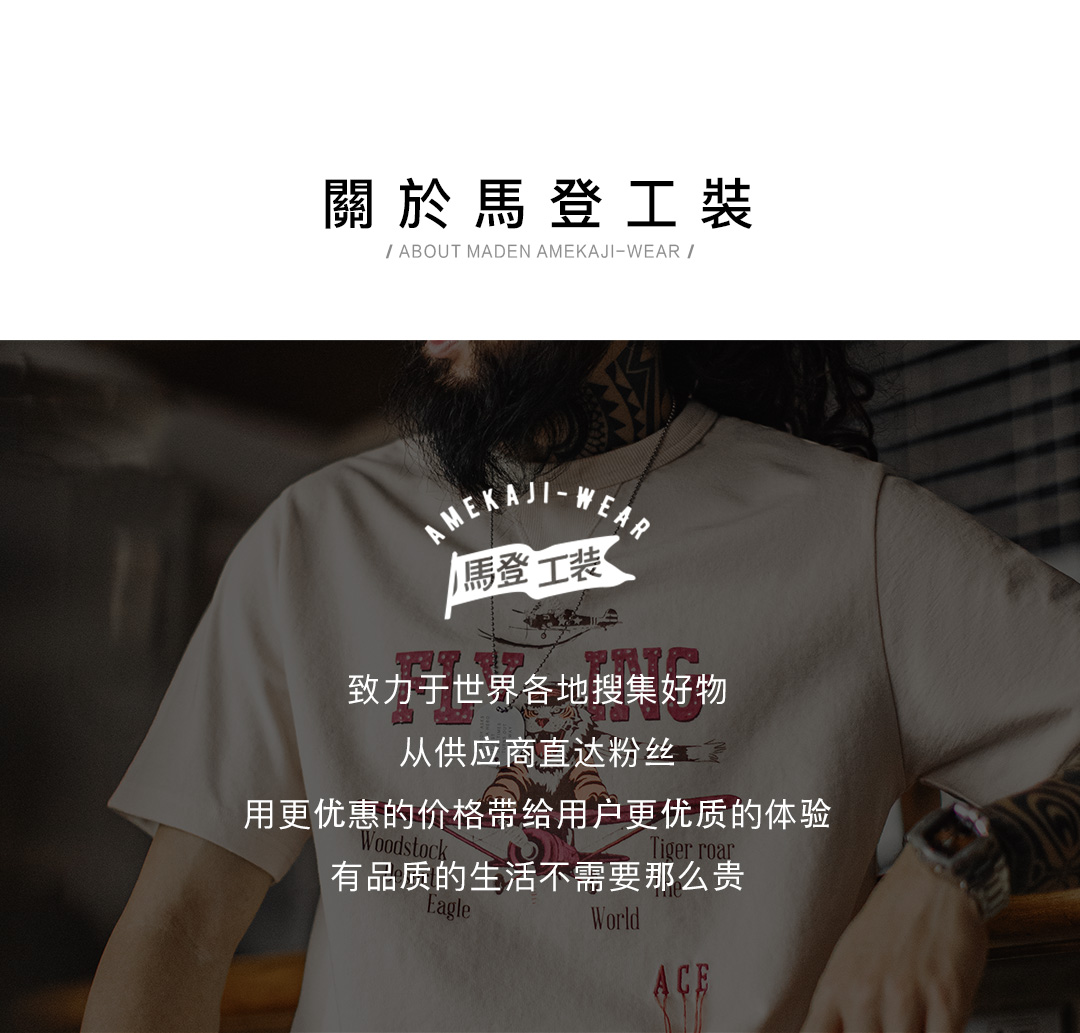 工装优选美式复古老虎印花阿美咔叽T恤宽松休闲二本针短袖男春夏