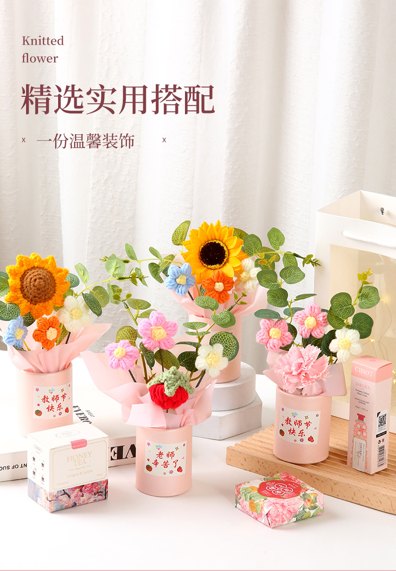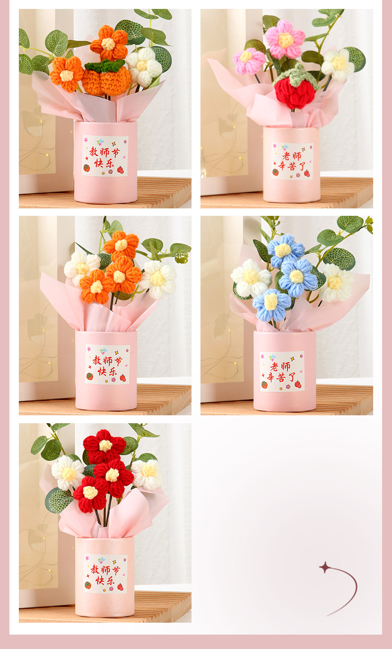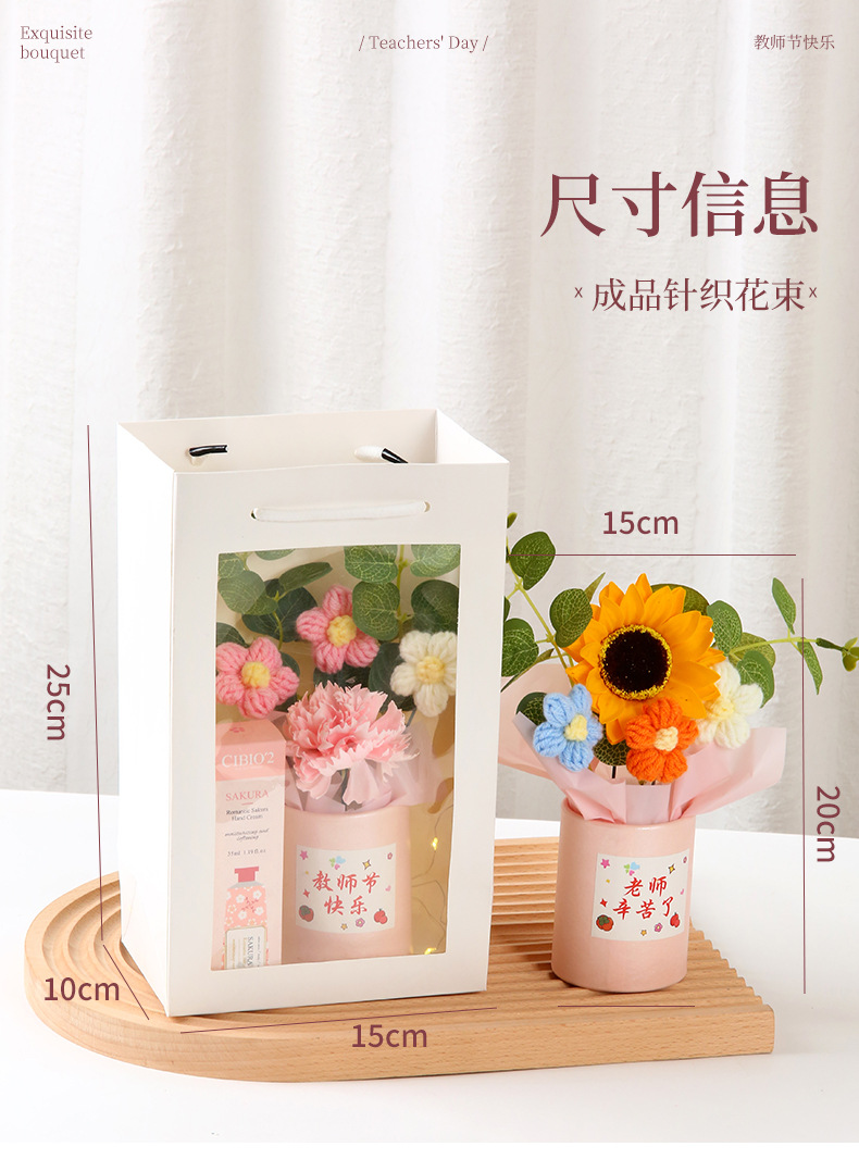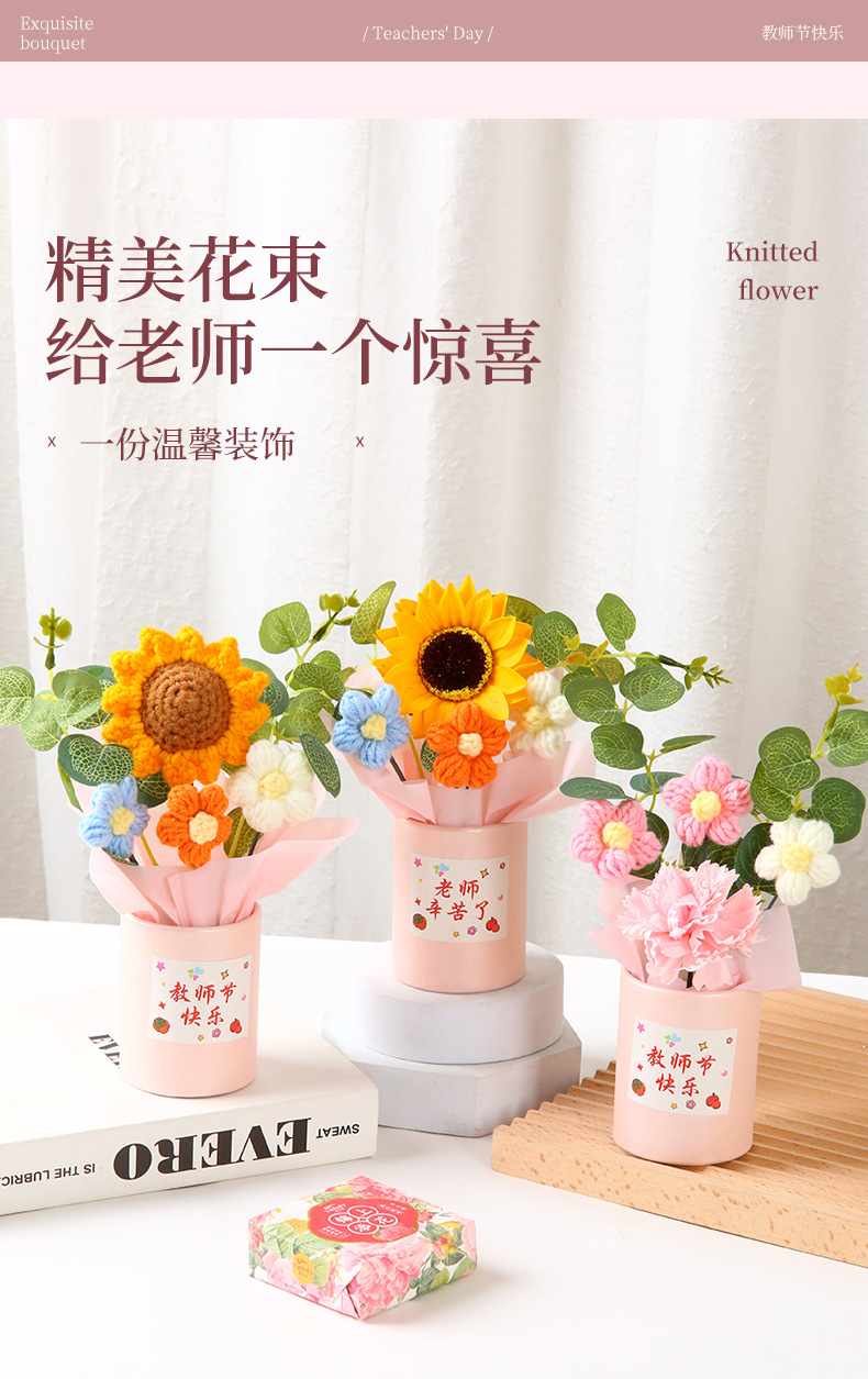 教师节礼物 创意手工针织毛线花束感谢师恩送老师生日活动伴手礼