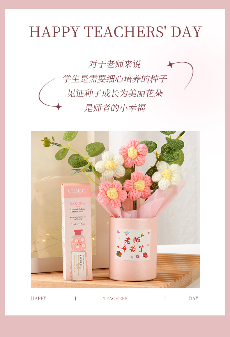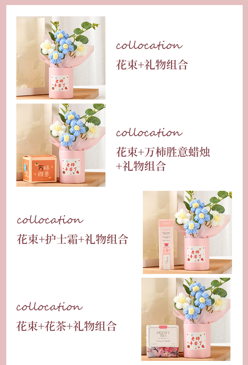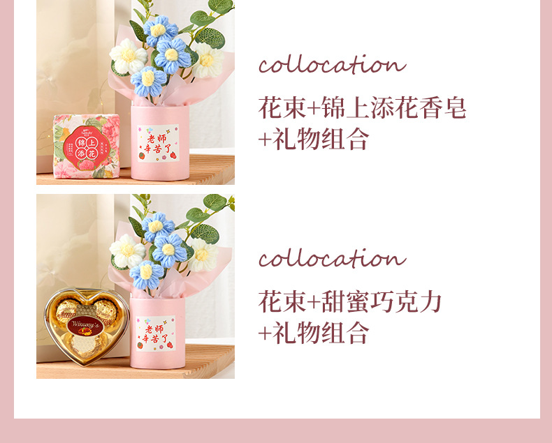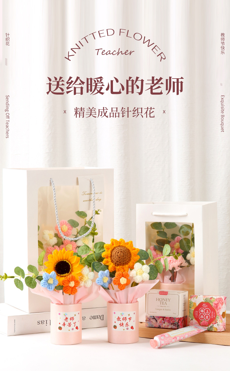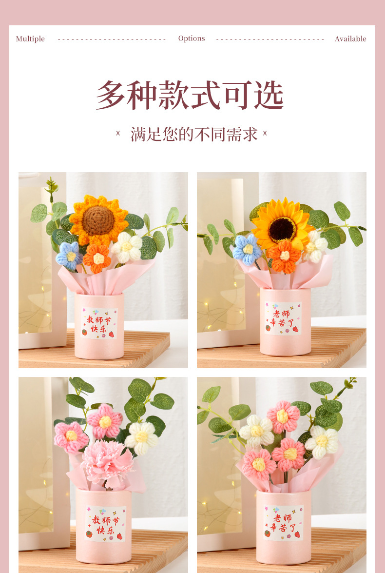 教师节礼物 创意手工针织毛线花束感谢师恩送老师生日活动伴手礼