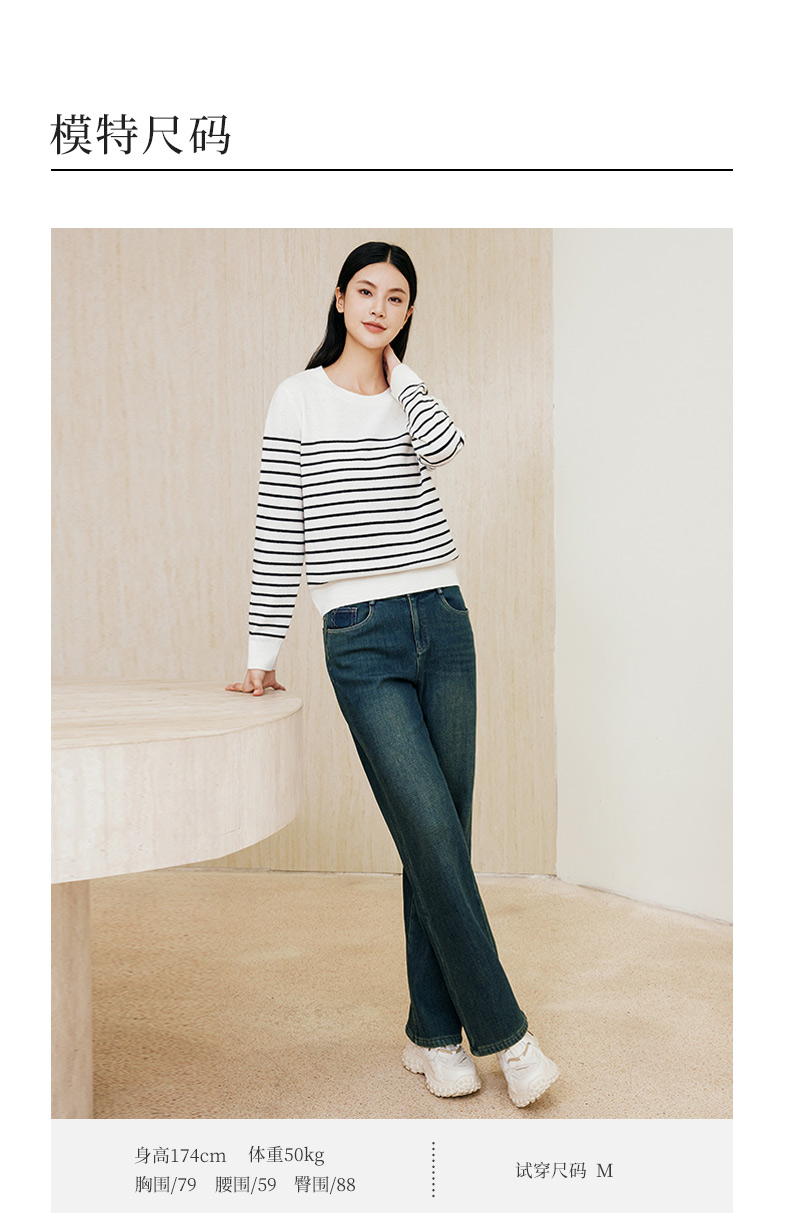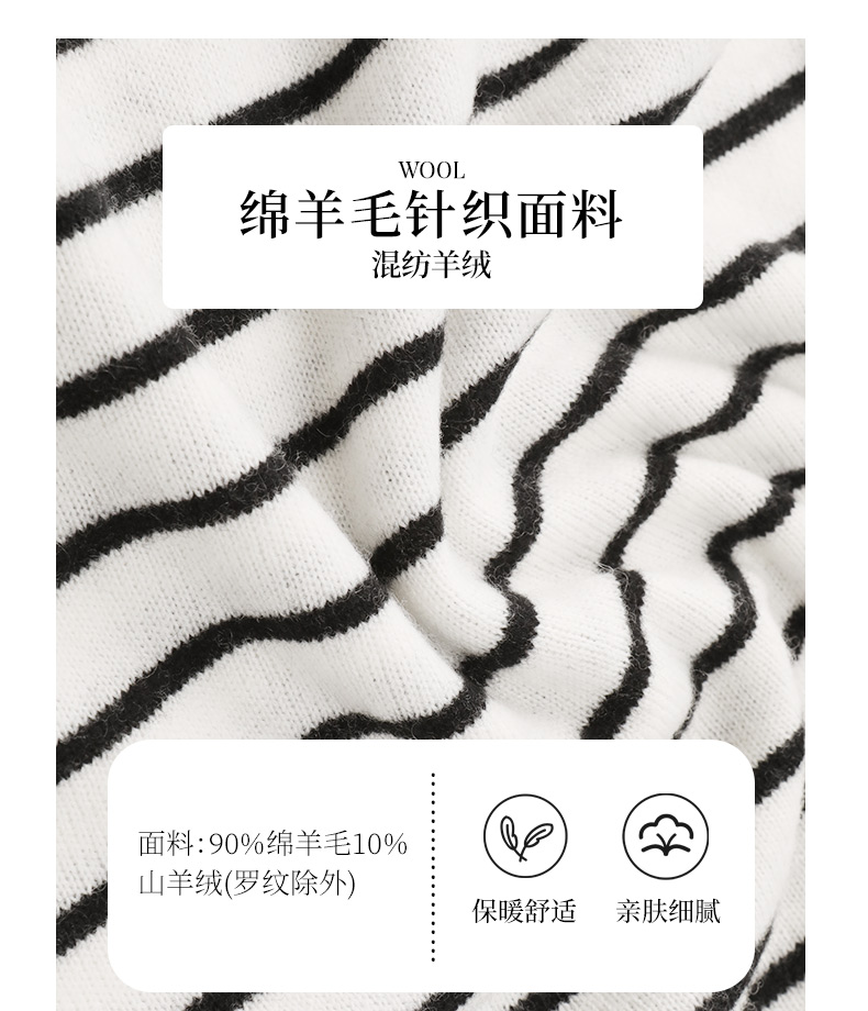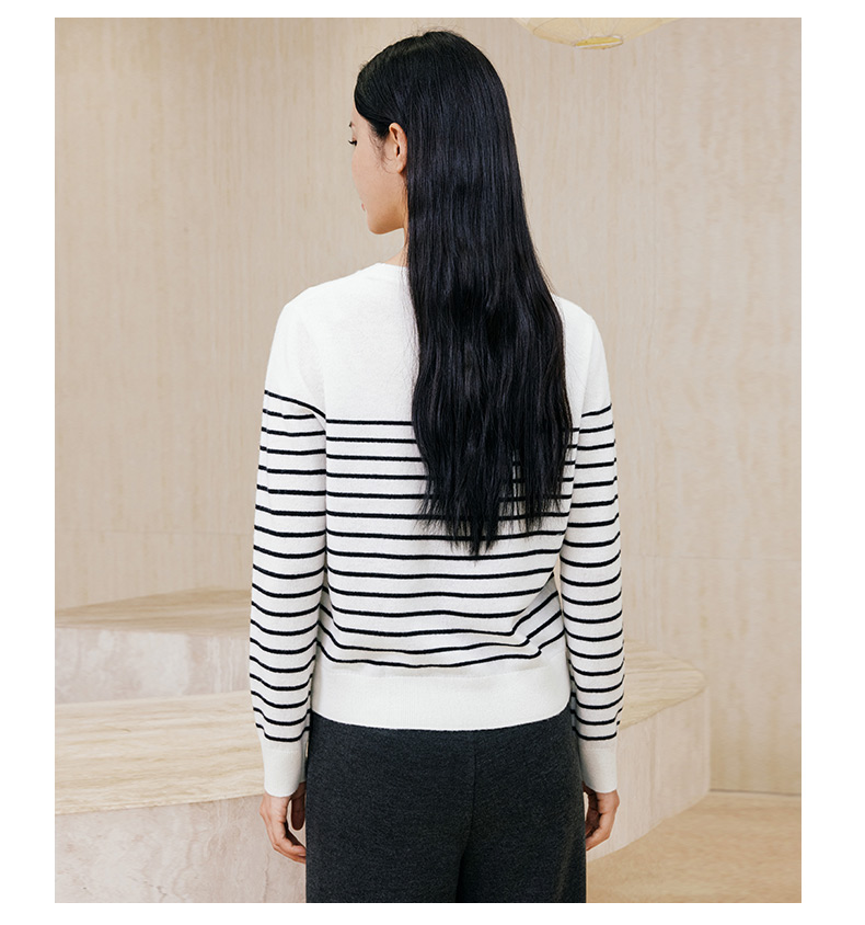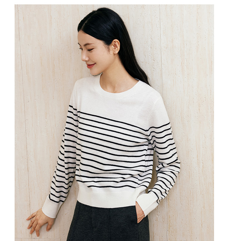 玳莎黑白条纹圆领毛衣女士24年冬季新款时尚羊毛羊绒混纺内搭上衣 ED33308