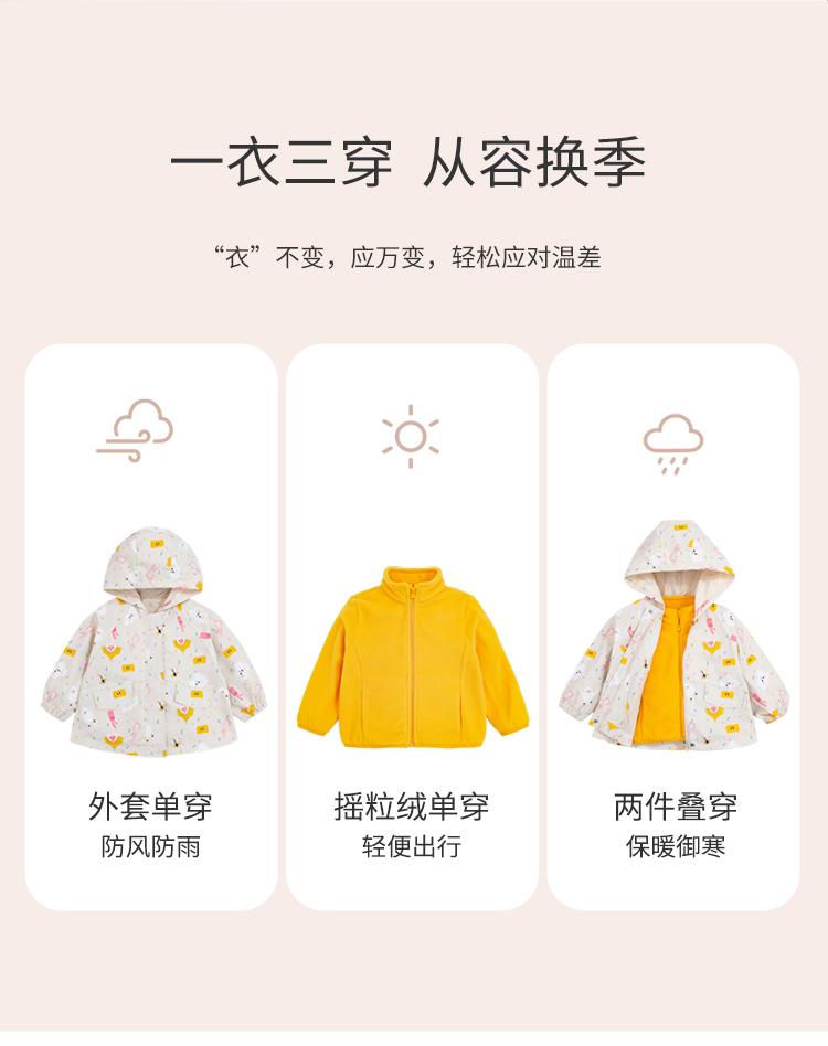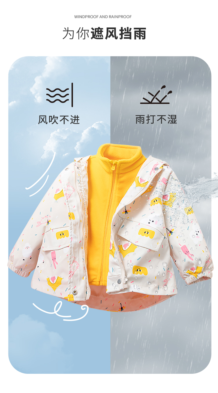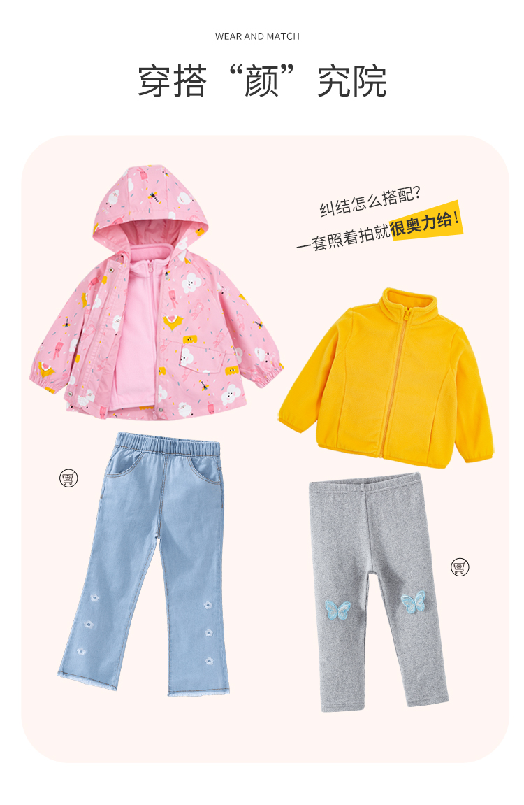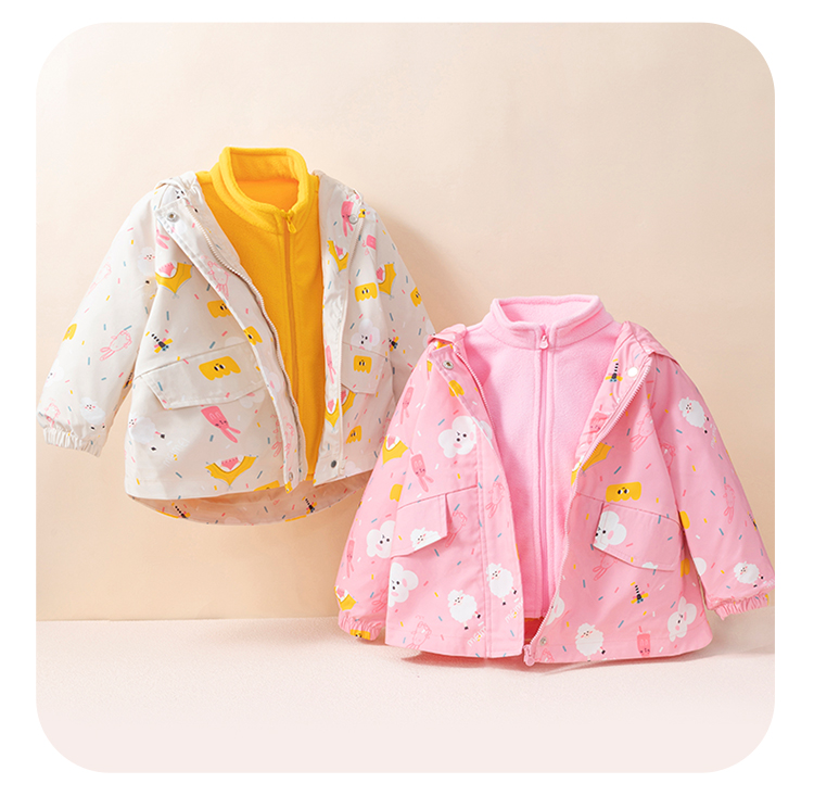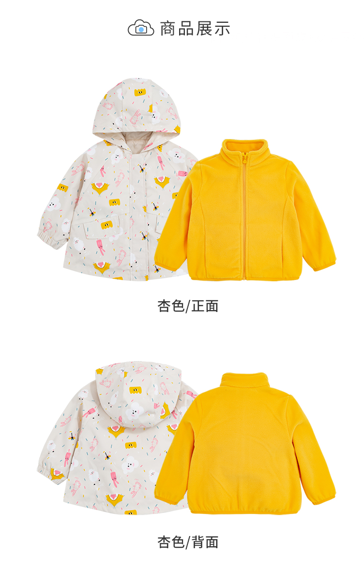 贝贝怡儿童摇粒绒秋冬外套女童可爱二合一防风外衣新款上衣