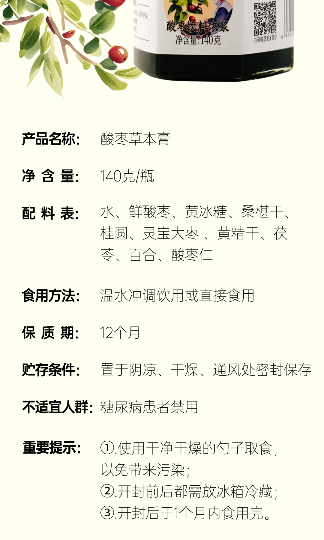 野生酸枣仁膏140G/瓶丨十二小时柴火慢熬