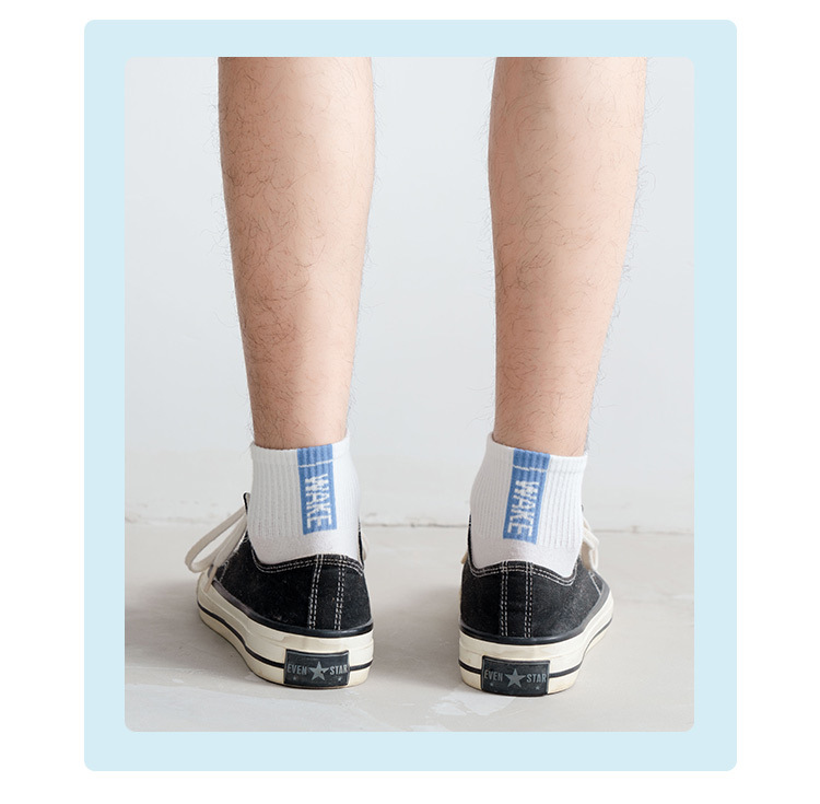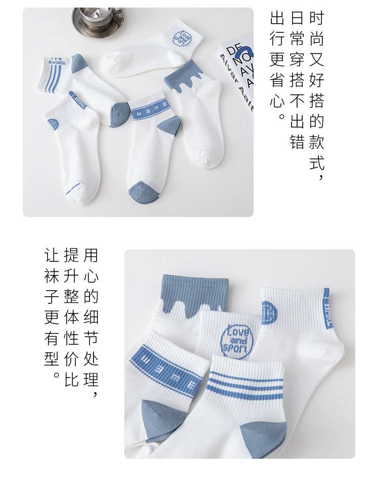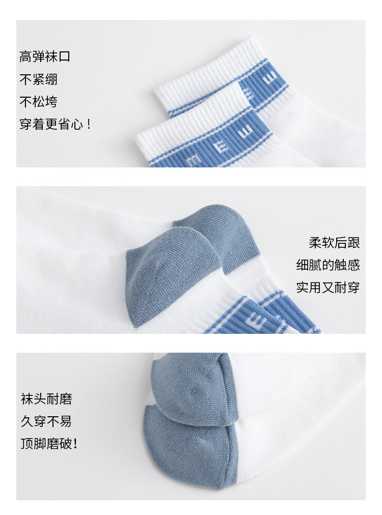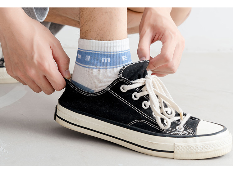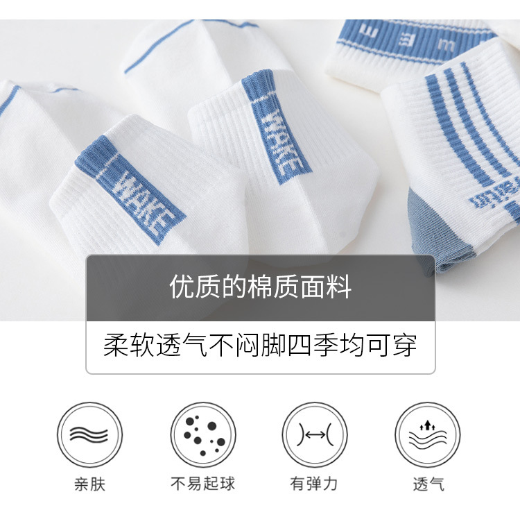 【5双装 柔软透气不闷脚】男袜新款运动中筒袜街头时尚篮球袜高橡筋吸汗男士棉袜子