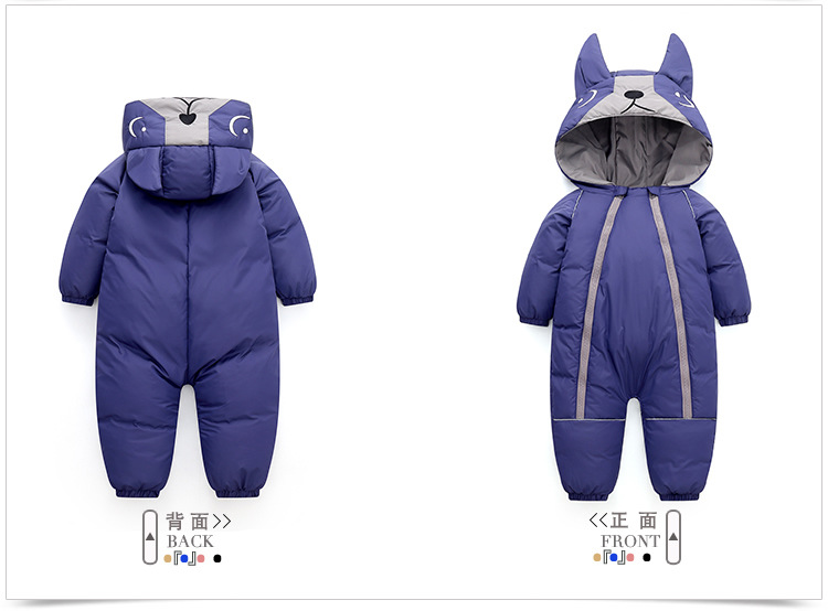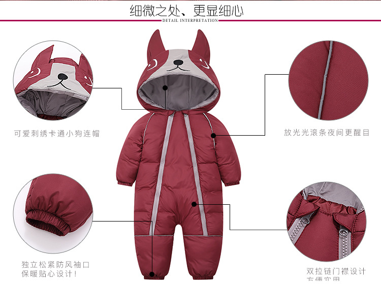 【萌动可爱】秋冬新款卡通刺绣造型连帽加厚保暖双拉链婴儿连体衣爬服