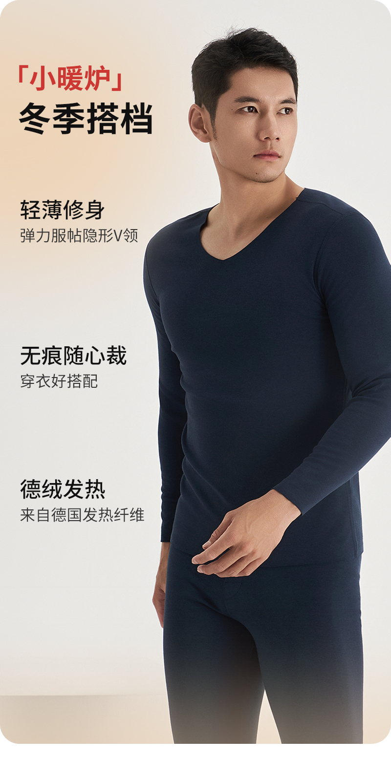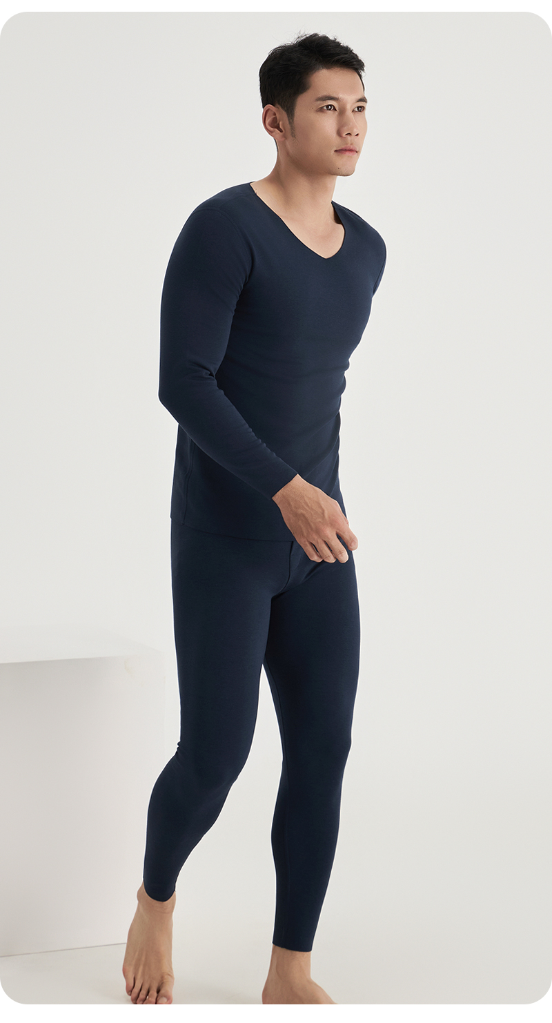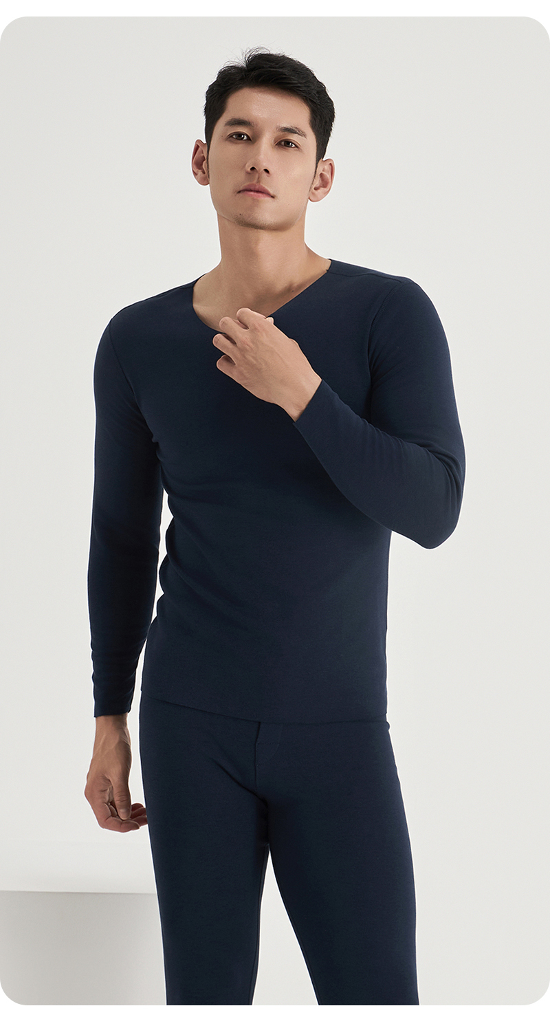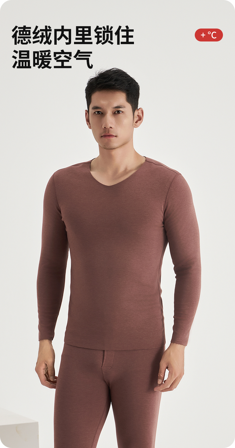 weyo冬季男款单面德绒打底圆领内衣保暖衣套装F2831
