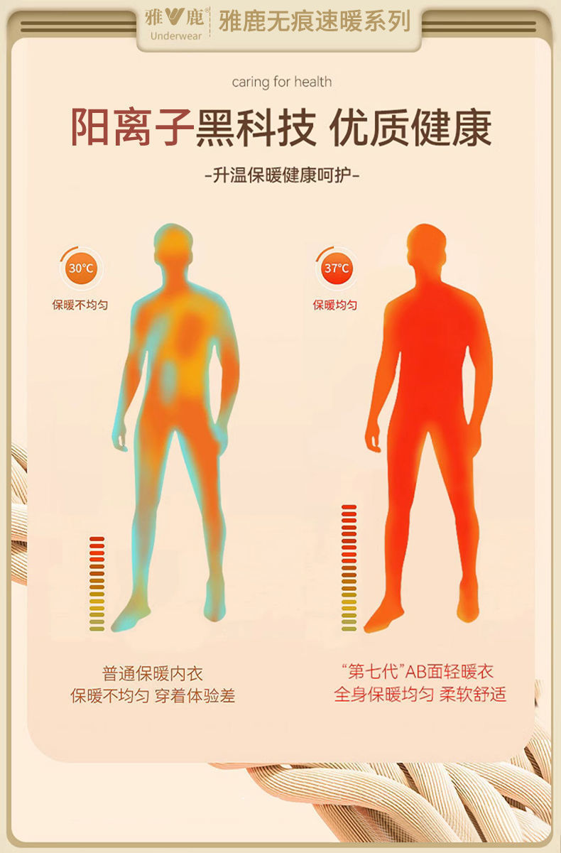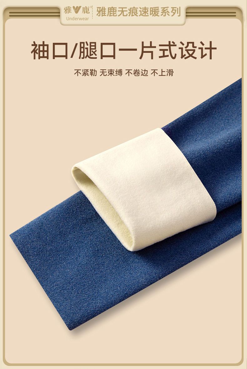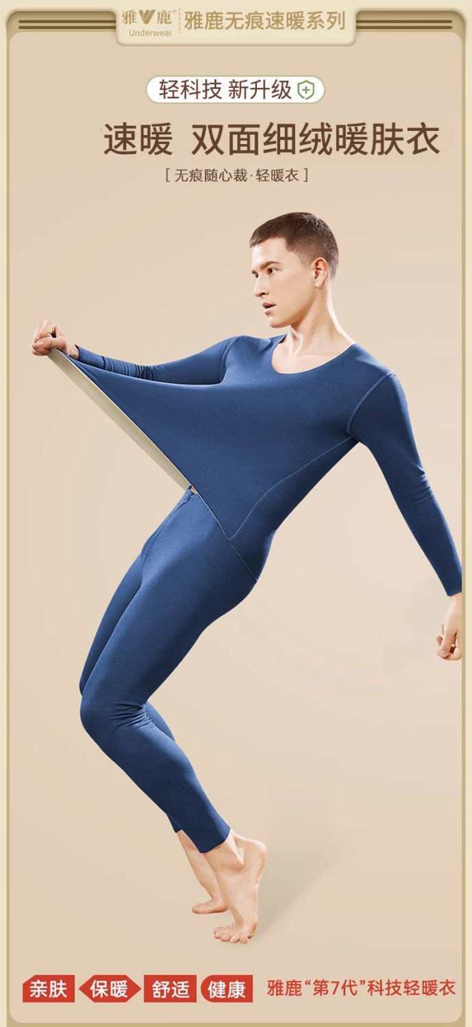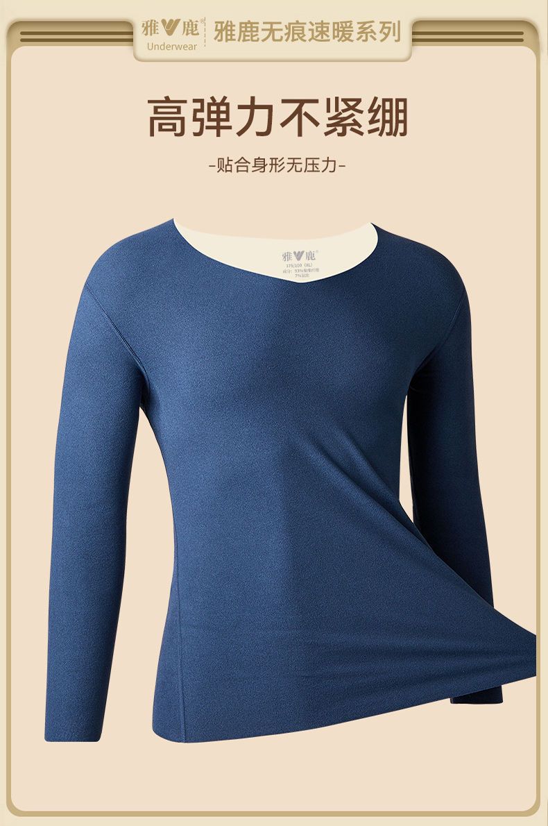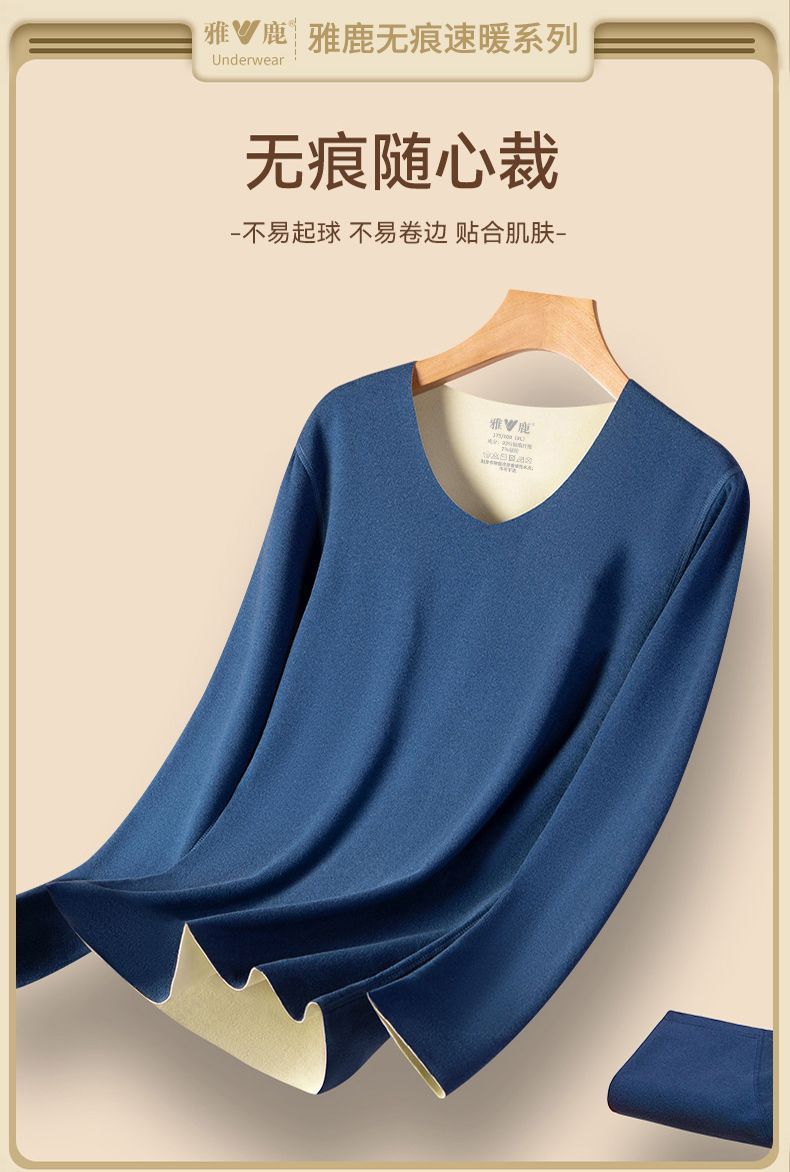 雅鹿无痕保暖内衣男士AB面加厚秋衣秋裤套装发热打底衫冬季