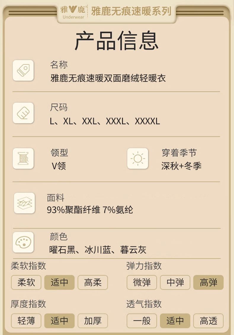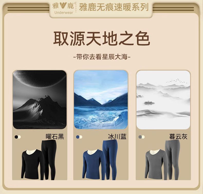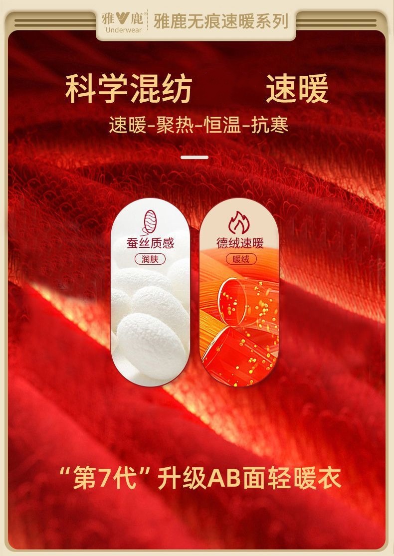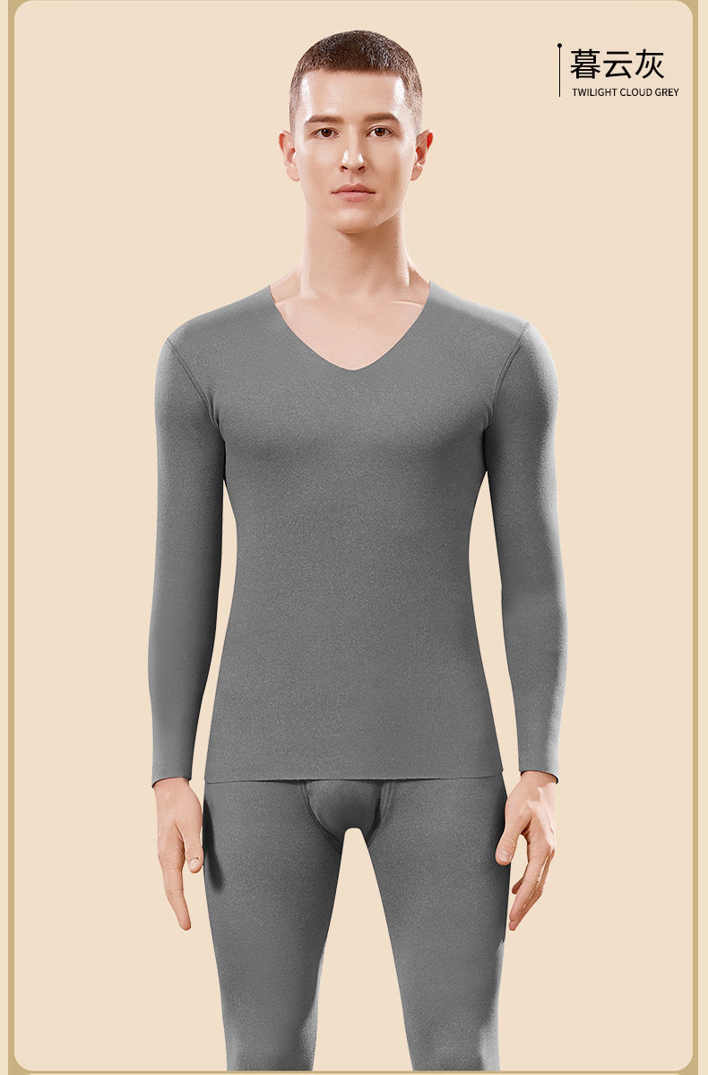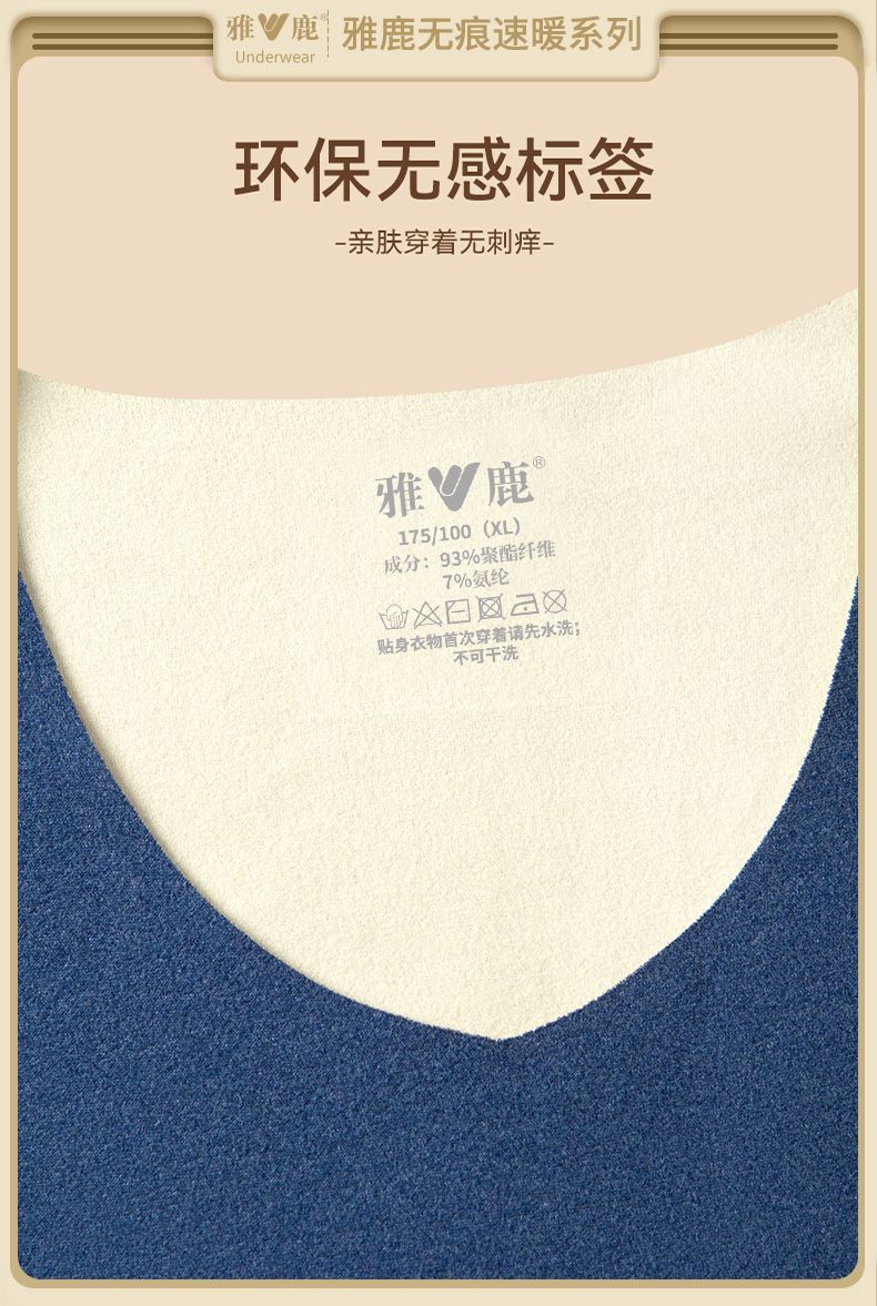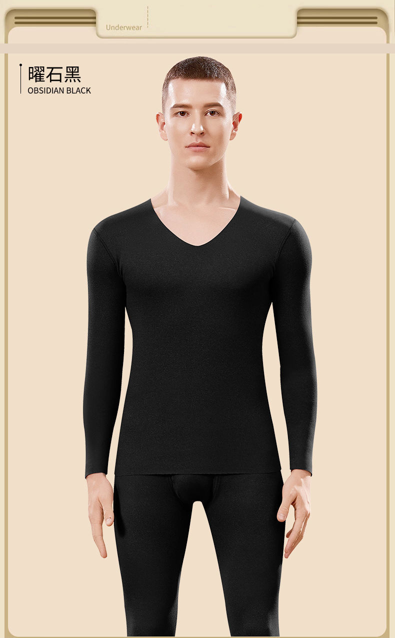 雅鹿无痕保暖内衣男士AB面加厚秋衣秋裤套装发热打底衫冬季