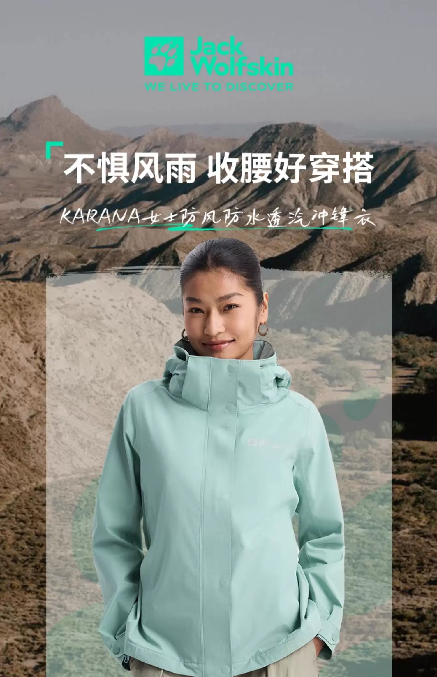 【云粉节】【6折】6楼JACKWOLFSKIN狼爪春款KARANA女款户外休闲收腰防水冲锋衣5124041-E0180吊牌价1699折后价1019