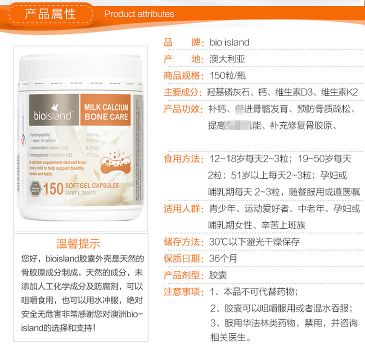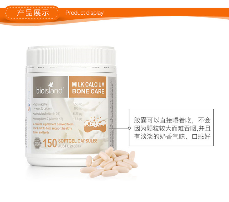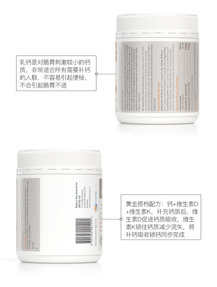 【包邮保税区直发】澳洲 bio island 液体乳钙胶囊补钙 新旧包装随机