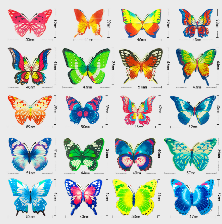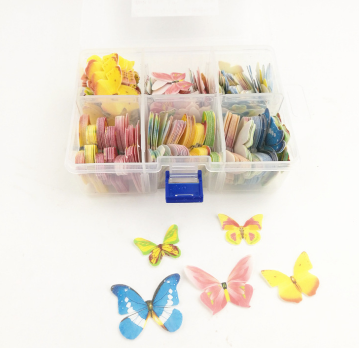 每盒336只大小全拿下糯米纸片食用可以食用的墨水印制,您收到的是平的但是您可以抹一点水来再次造型,沾一点水也可以把蝴蝶沾在实物或餐具上哦!