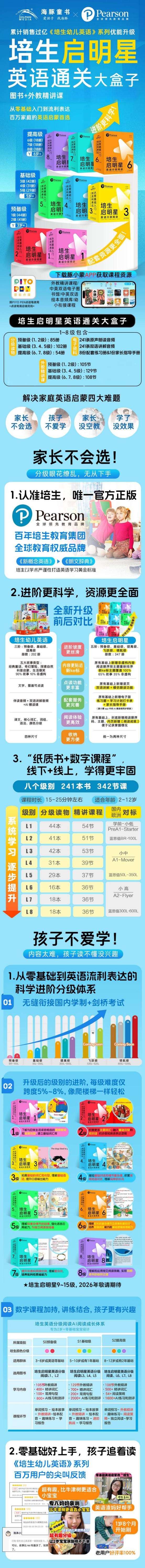 培生启明星英语分级阅读英语通关大套装点读版1-8级3-12岁英语零基础启蒙读物