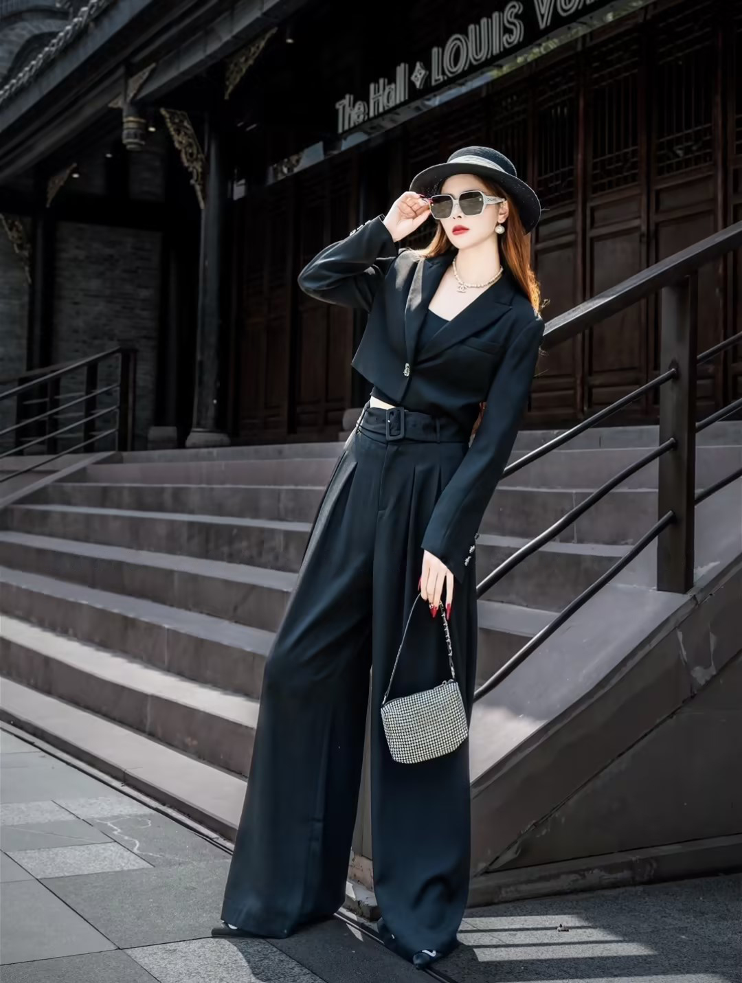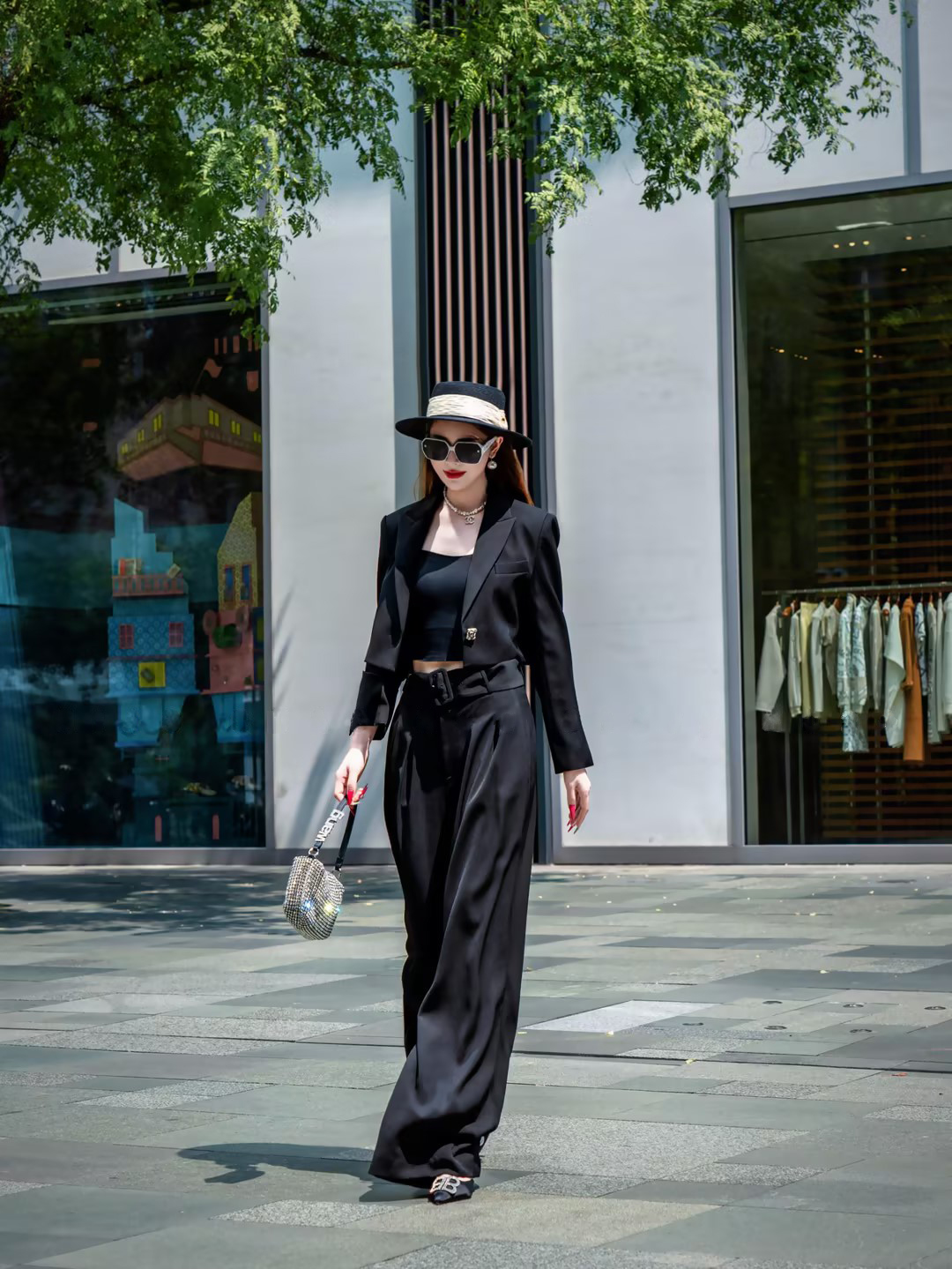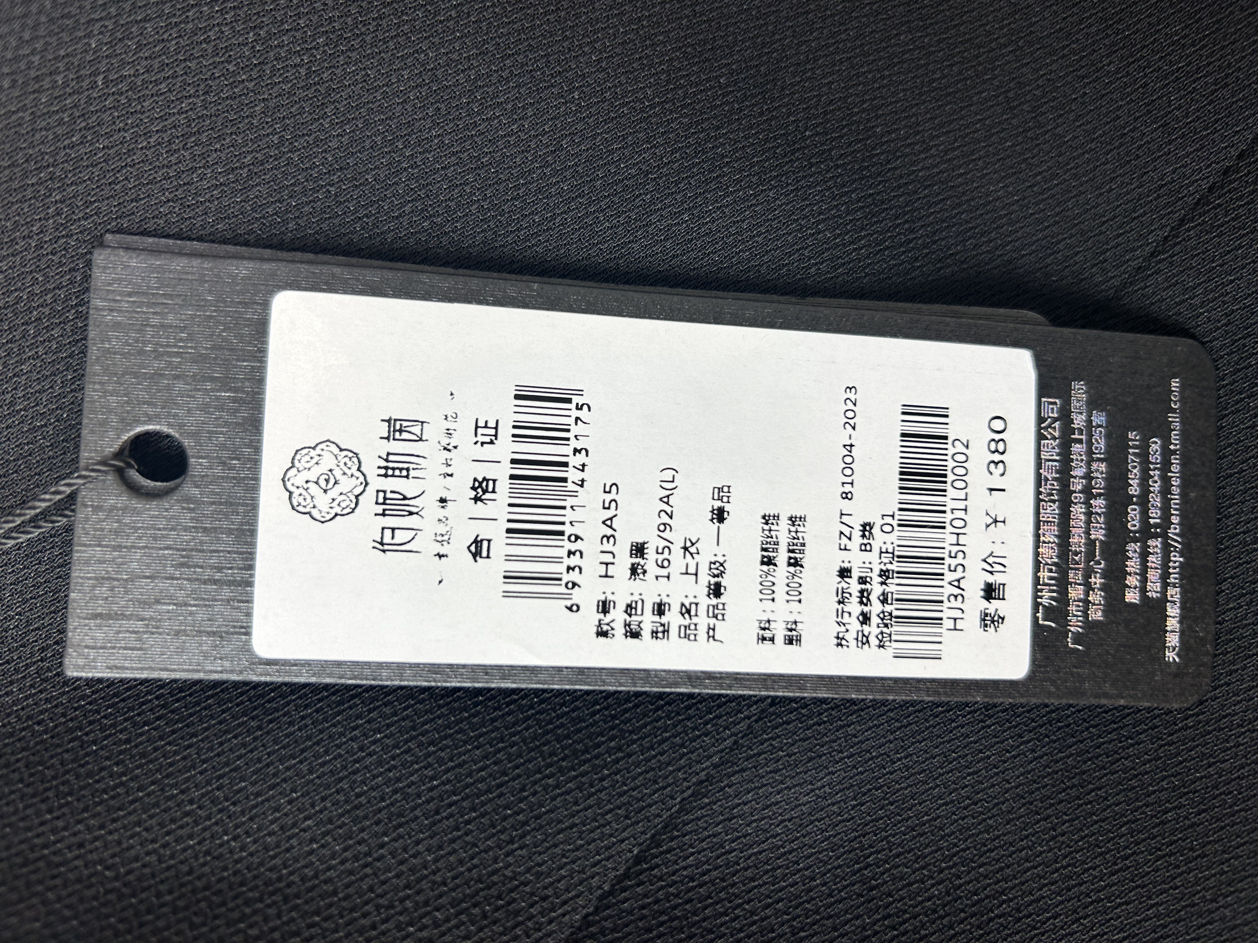 HJ3A55_漆黑色_西装外套_春秋_短款翻领一粒扣高腰显瘦通勤气质上衣_高级女装_BERNIEELEN 伯妮斯茵