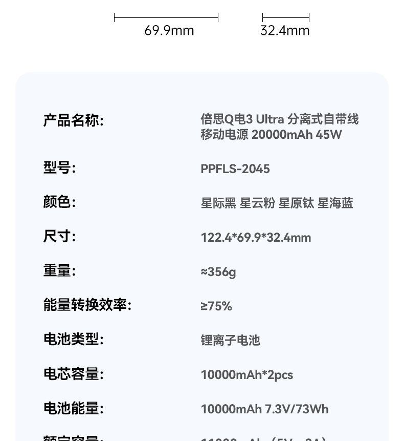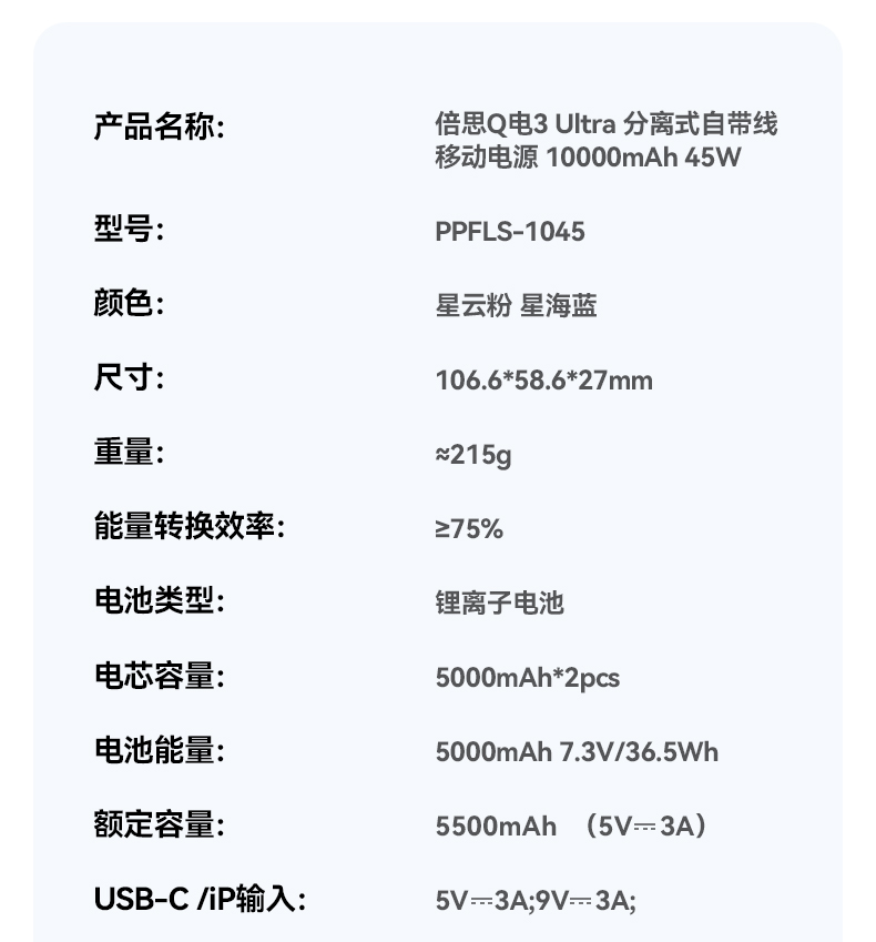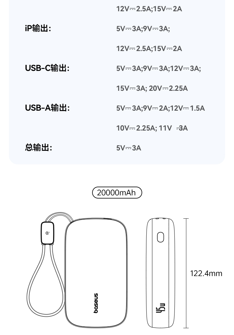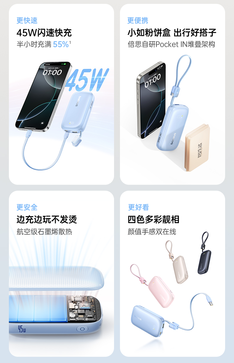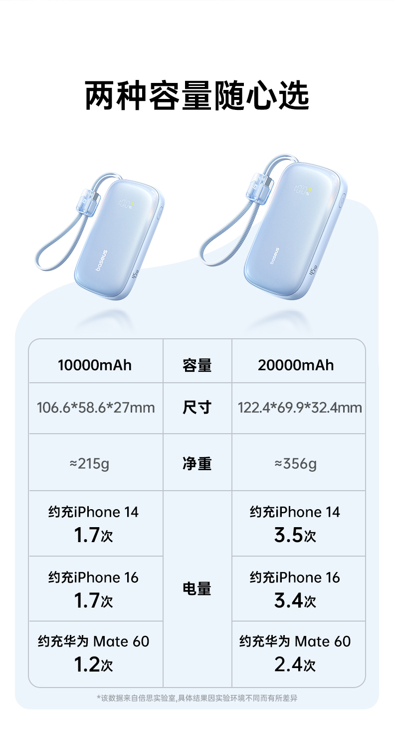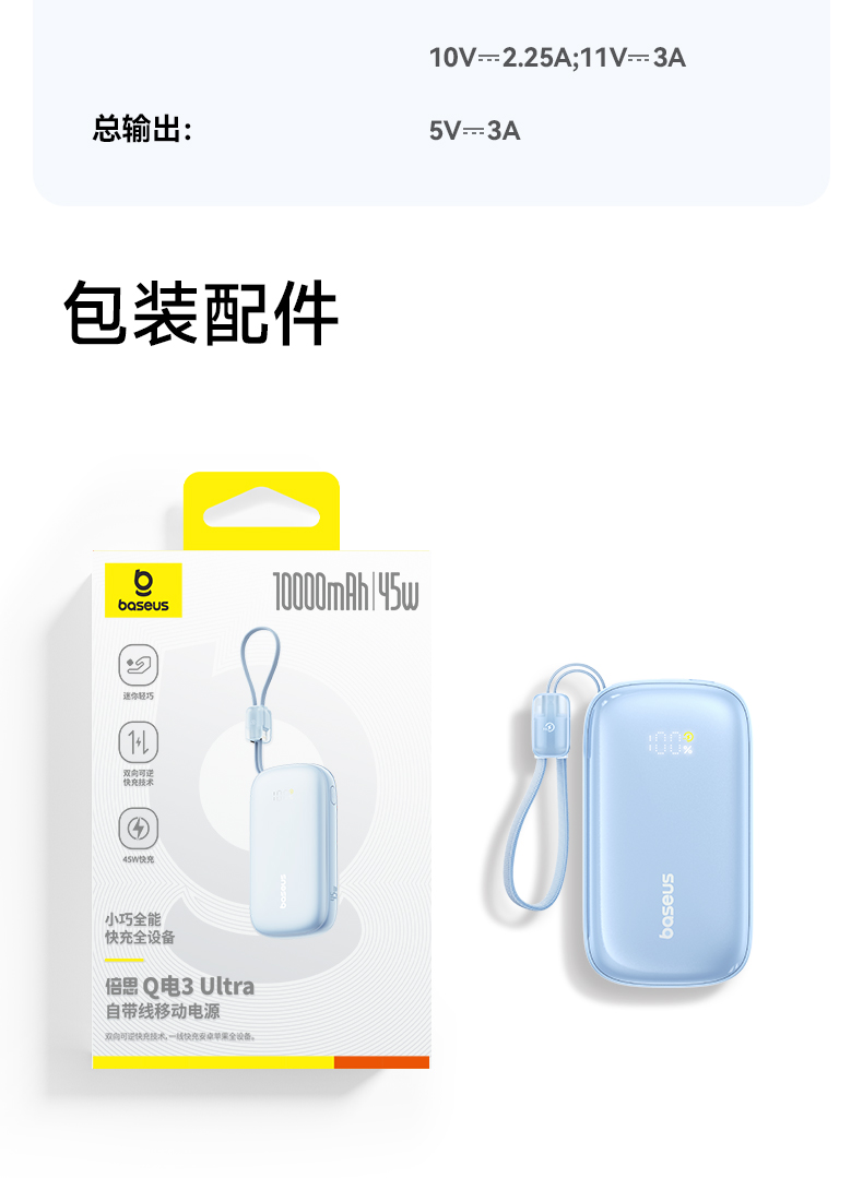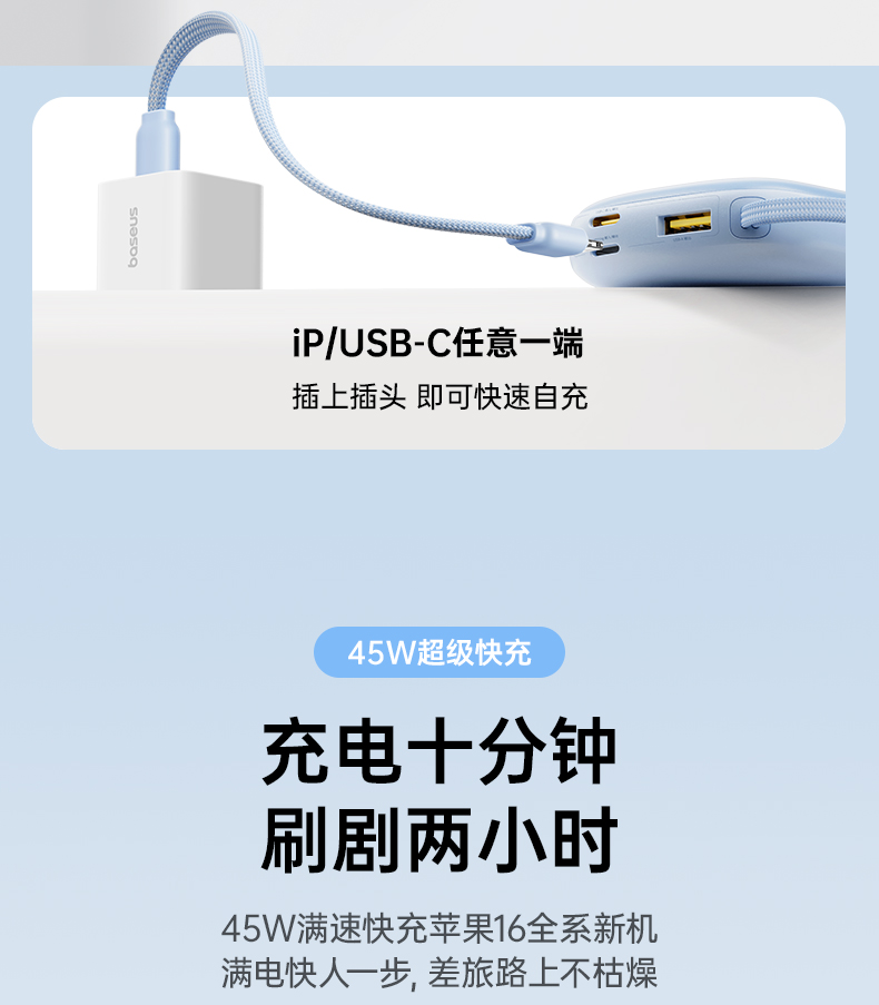 倍思 EnerFill FC21 Q电3 Ultra 分离式自带线移动电源 苹果17