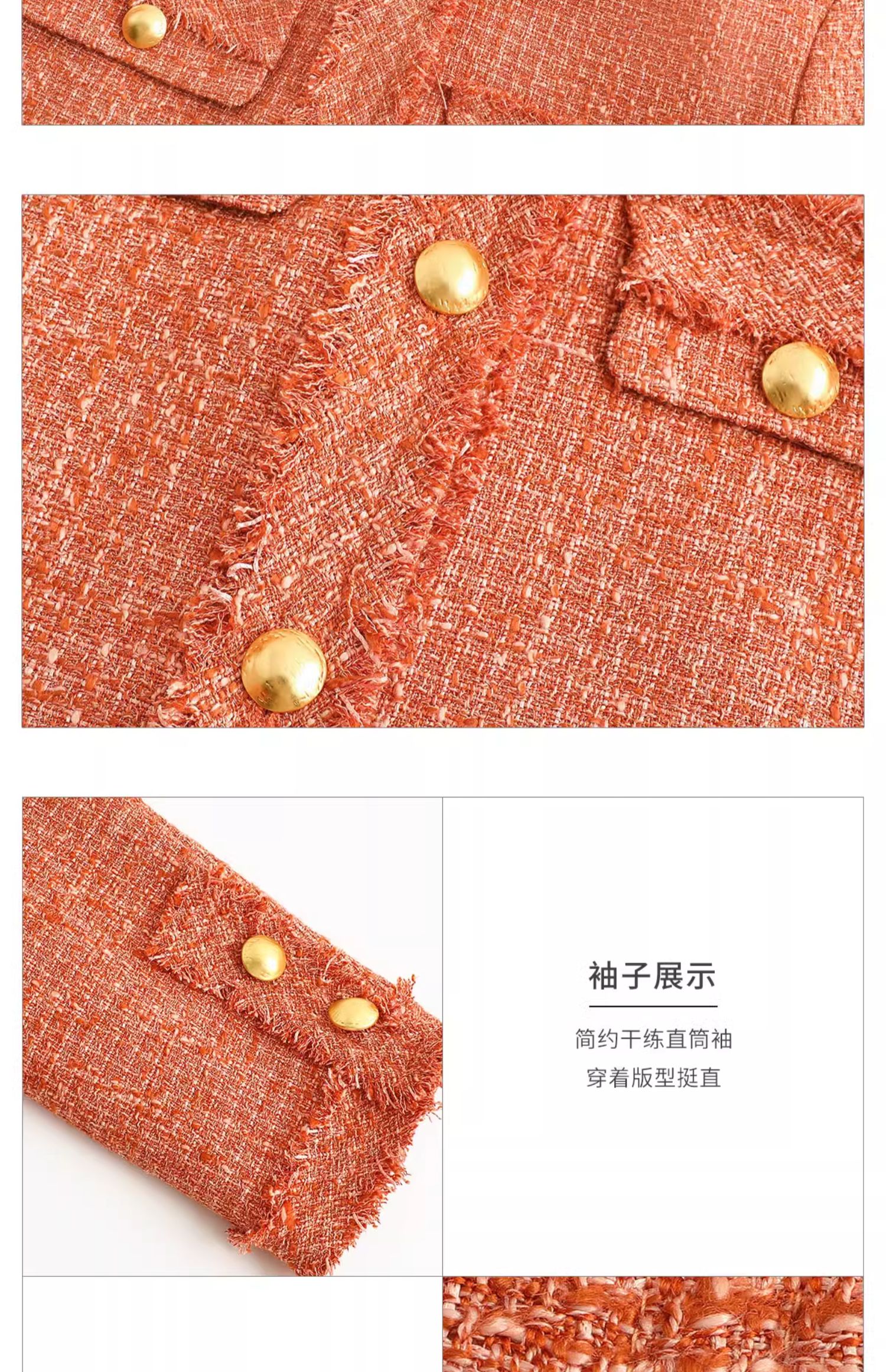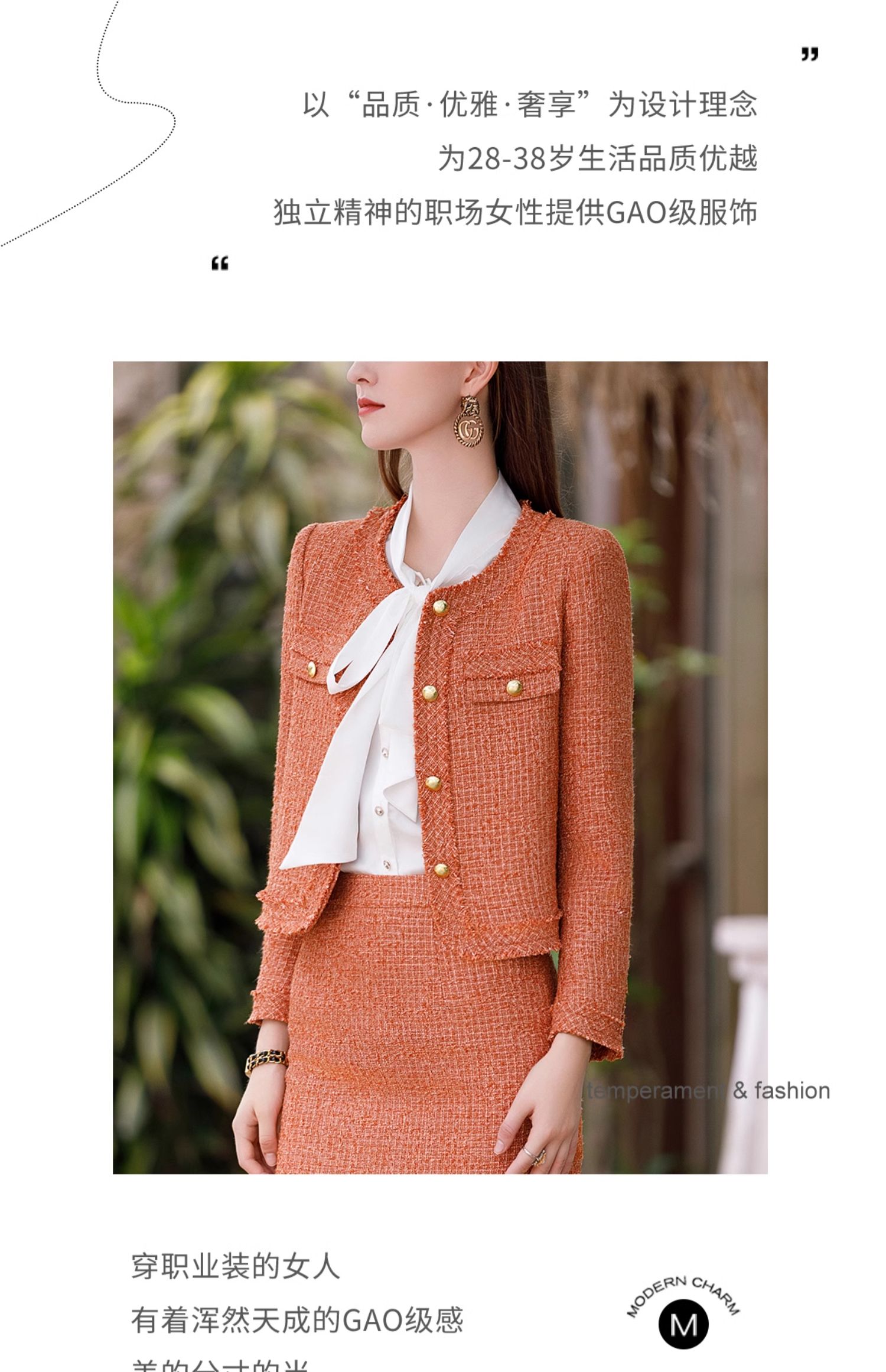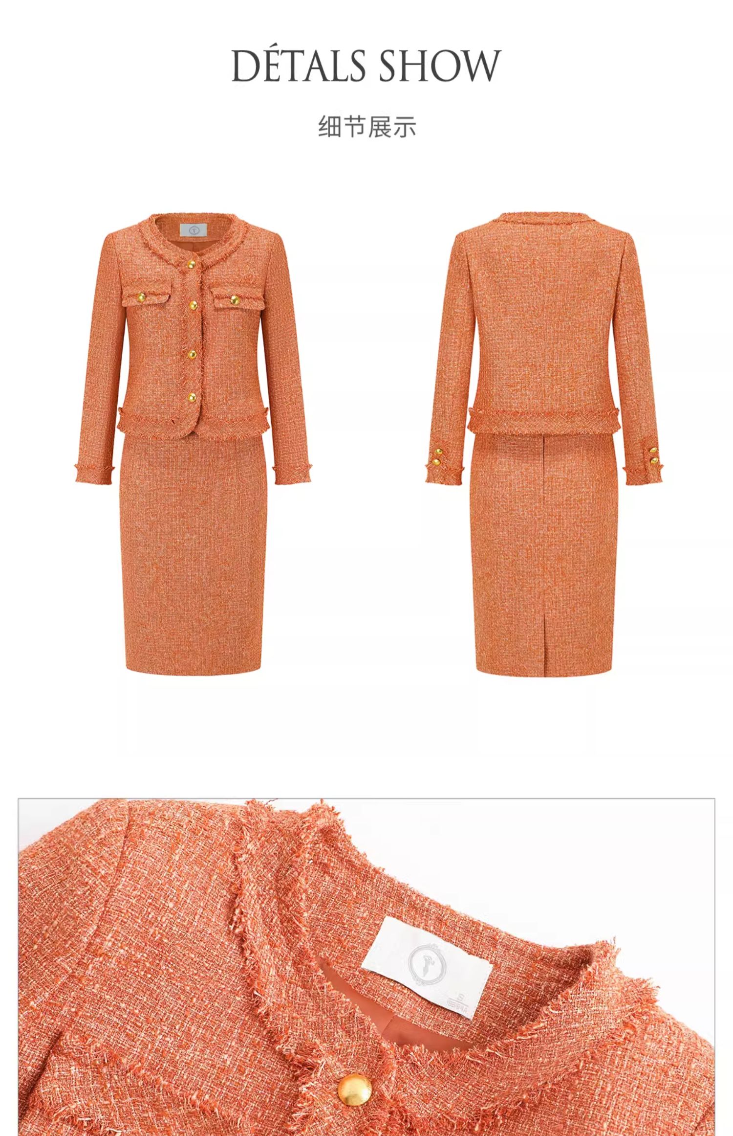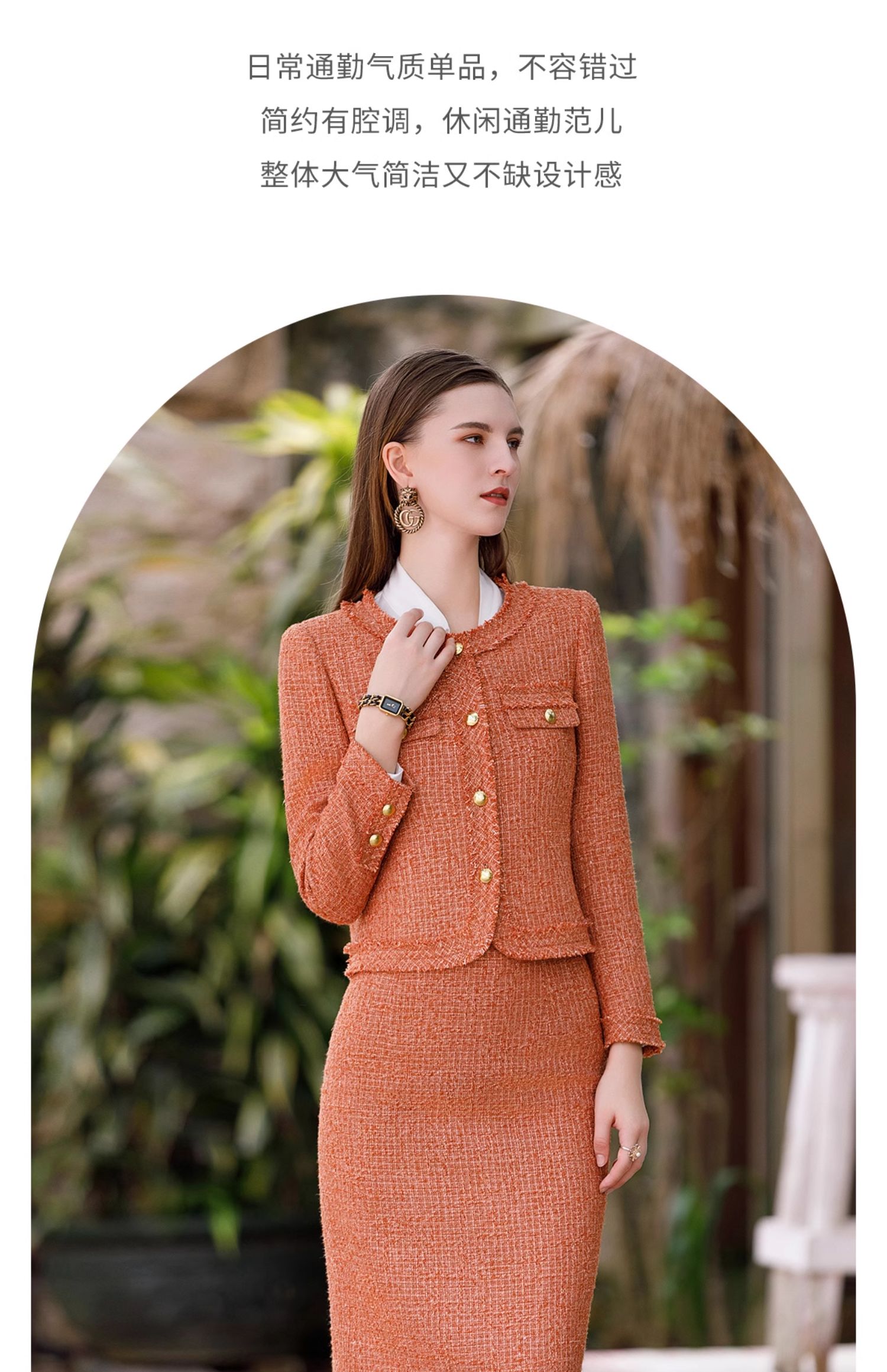 AD高级感金属扣小香风两件套女时尚气质圆领外套秋冬粗花呢套装裙