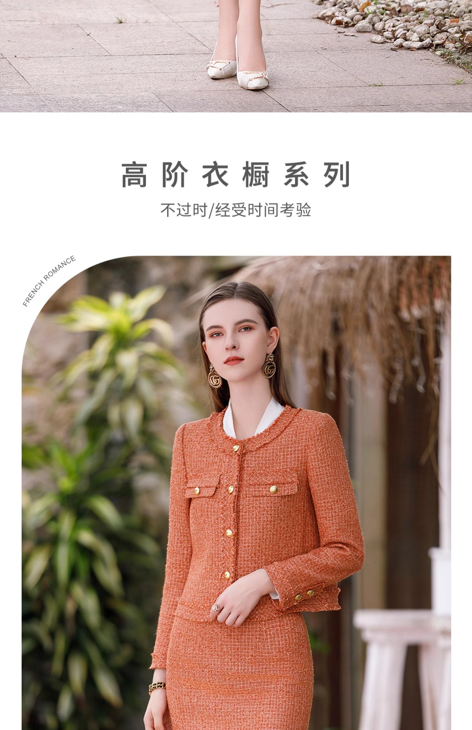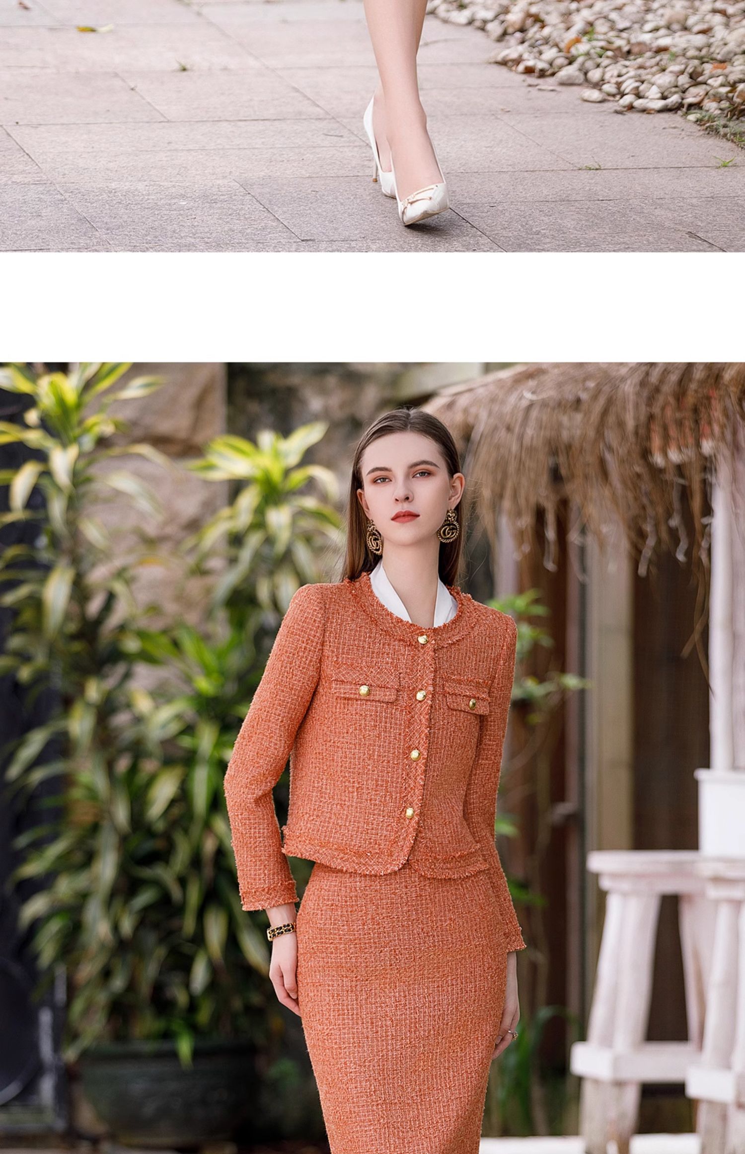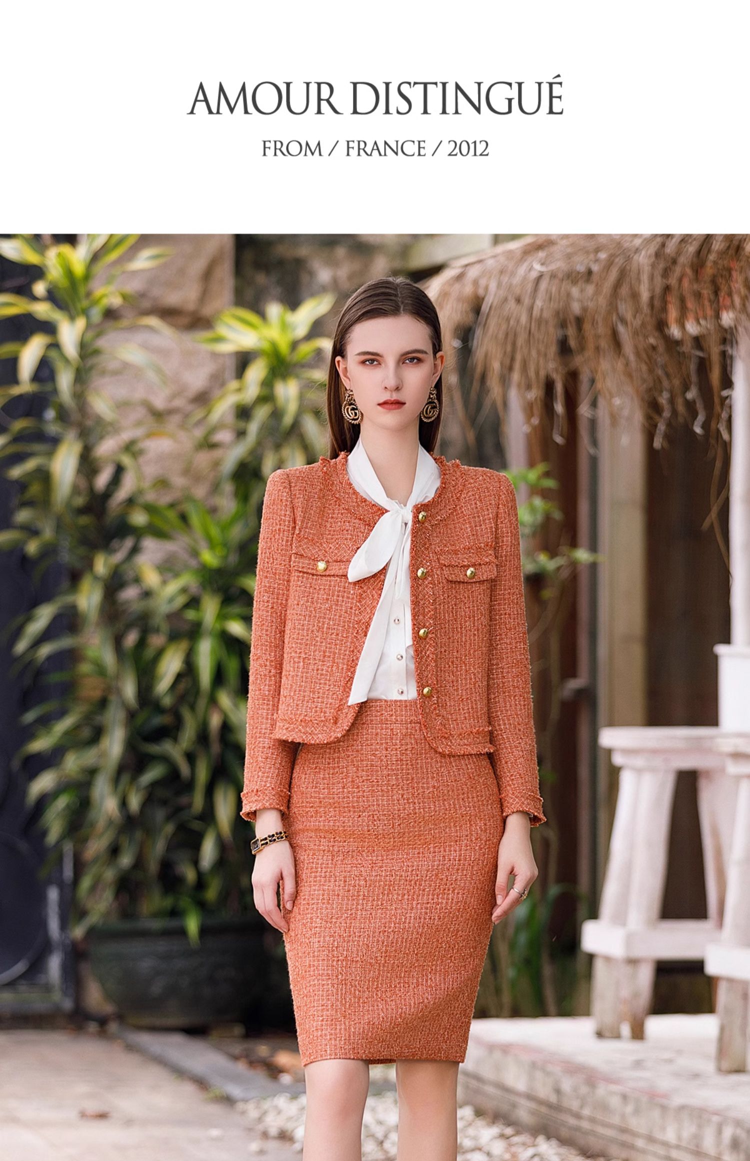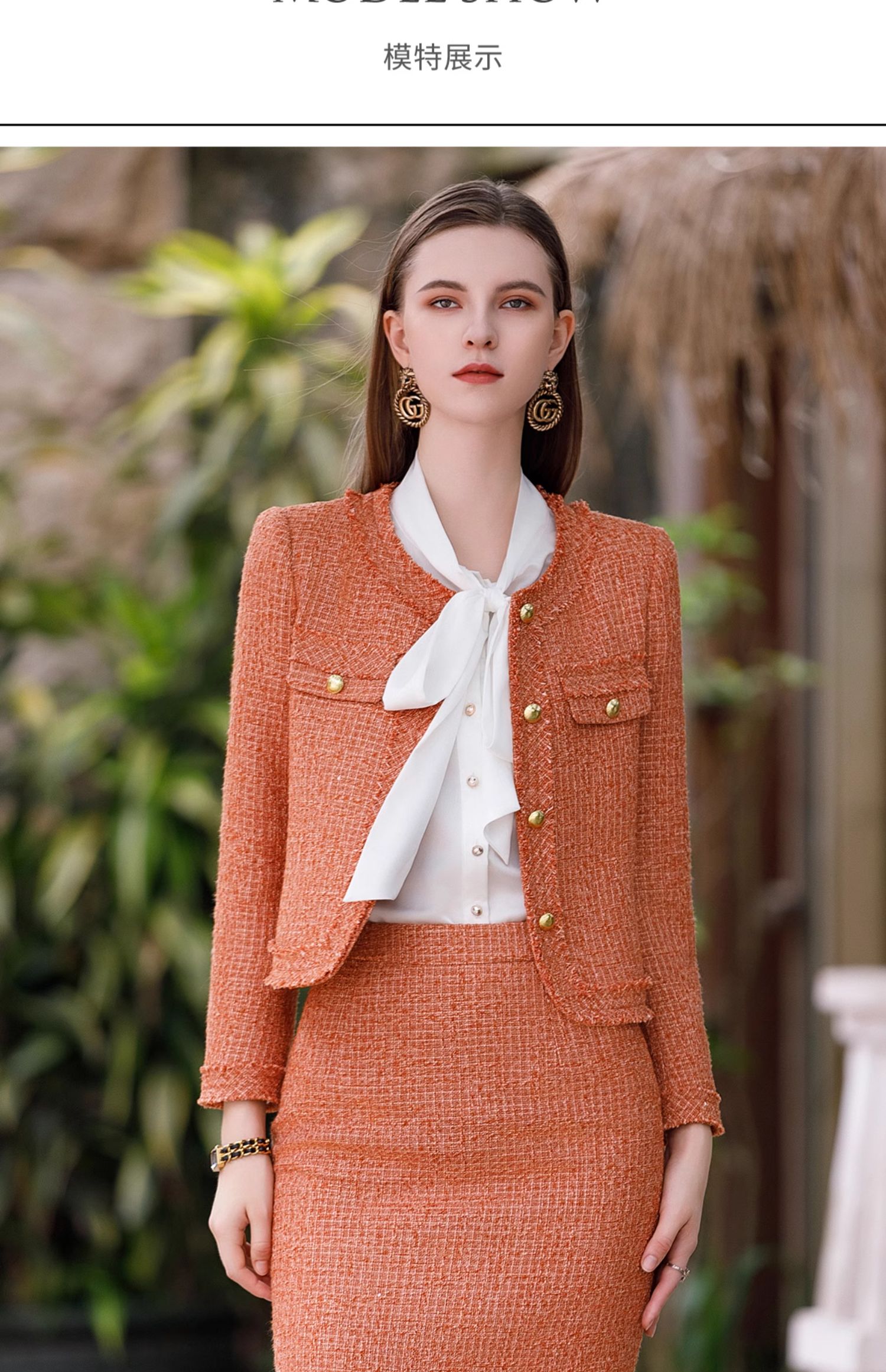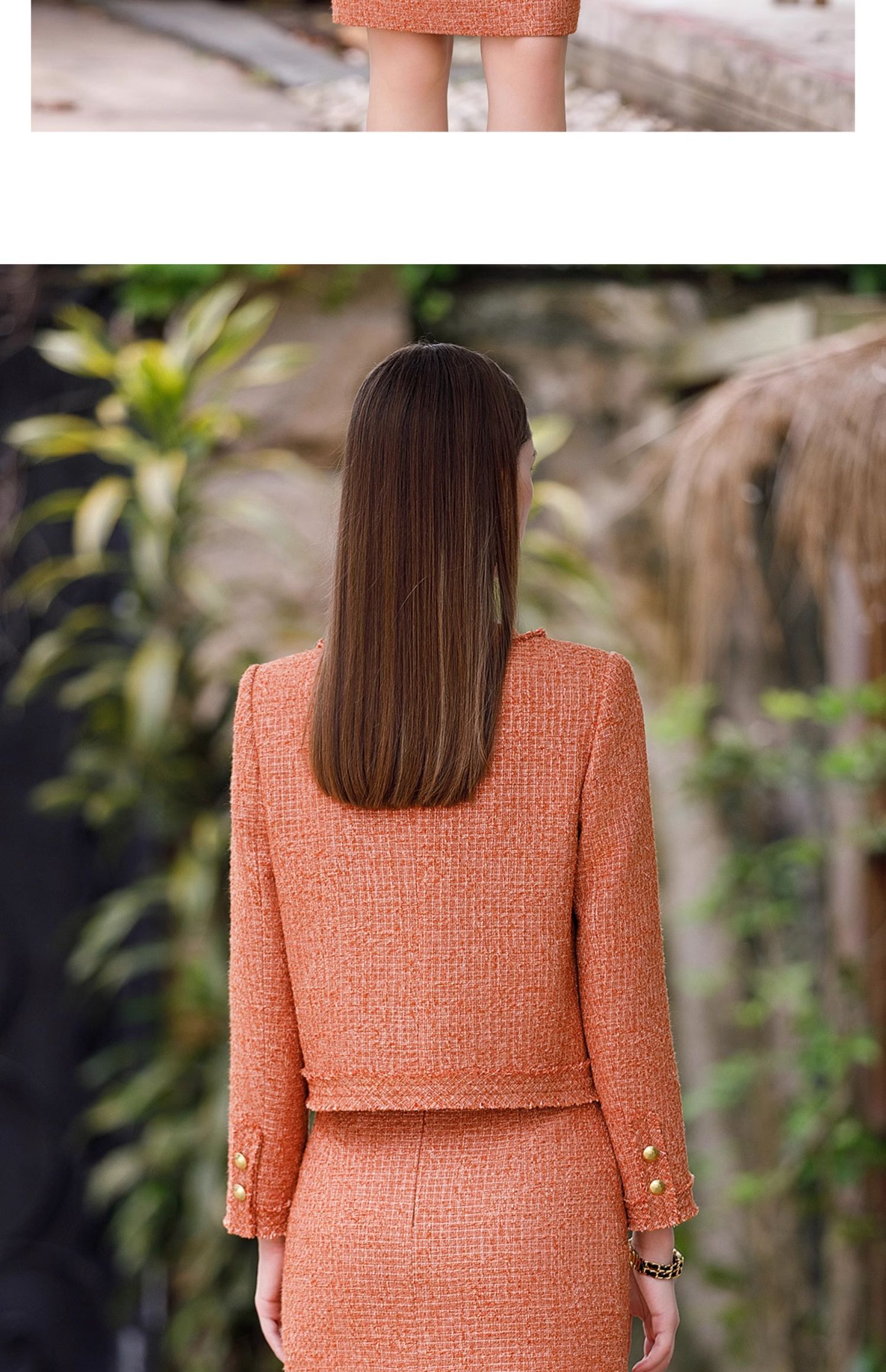 AD高级感金属扣小香风两件套女时尚气质圆领外套秋冬粗花呢套装裙