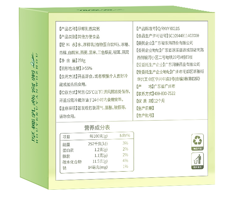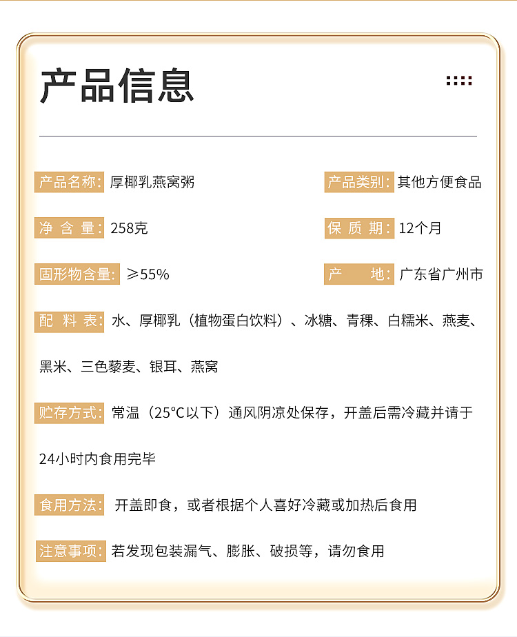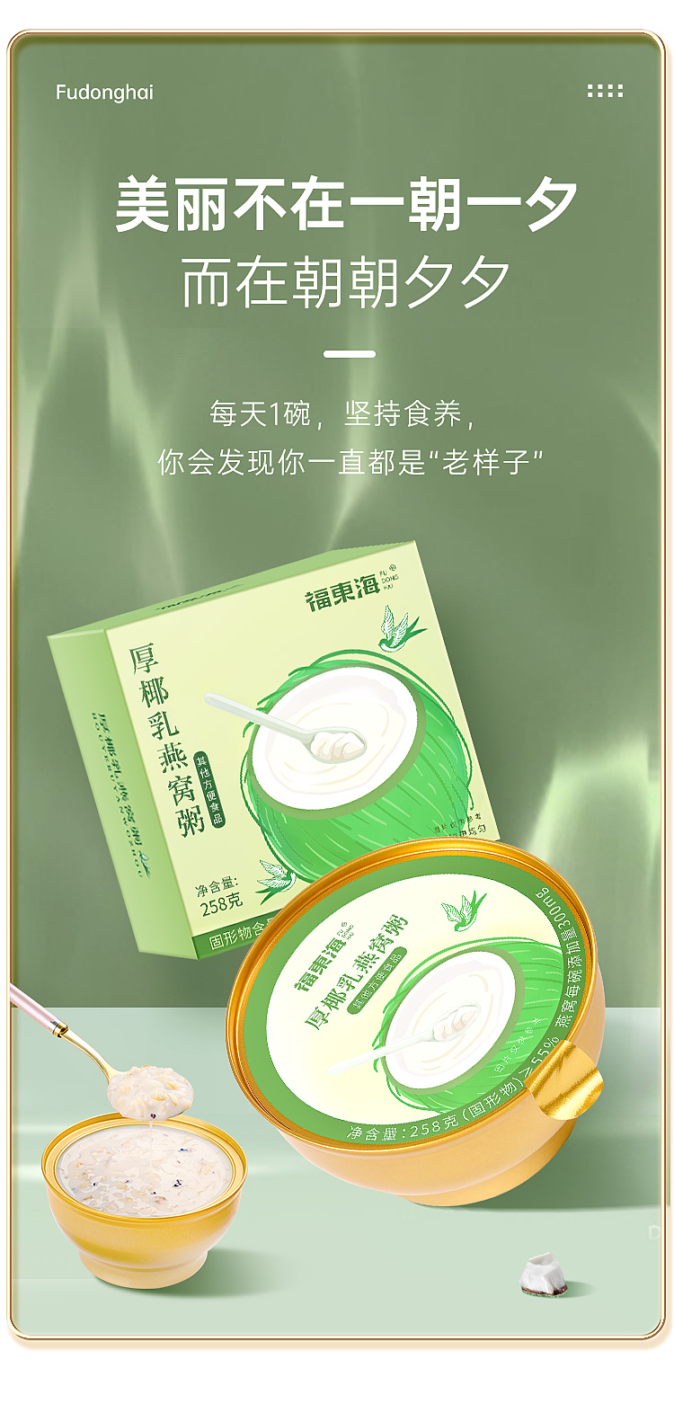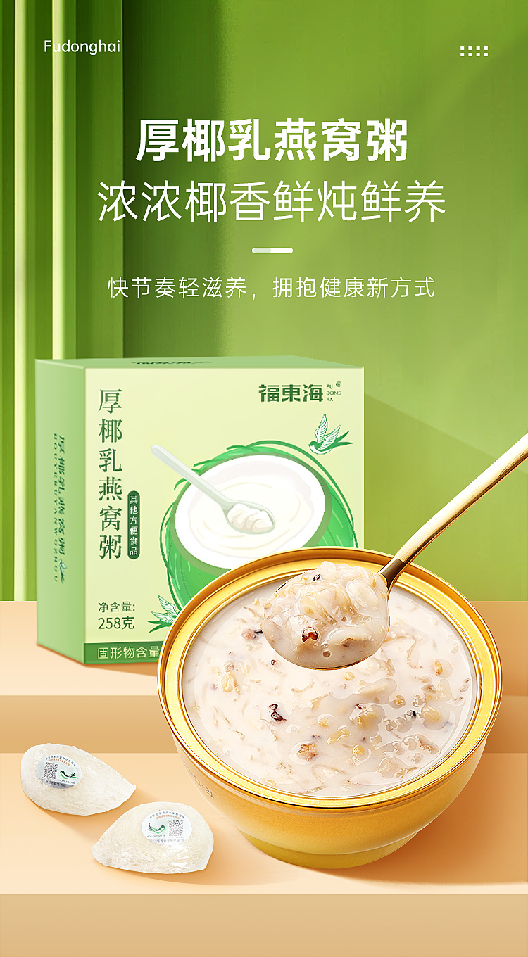 福东海 厚椰乳燕窝粥258克/碗 孕妇女人滋补代餐早餐速食粥 送爱人父母长辈儿童即食