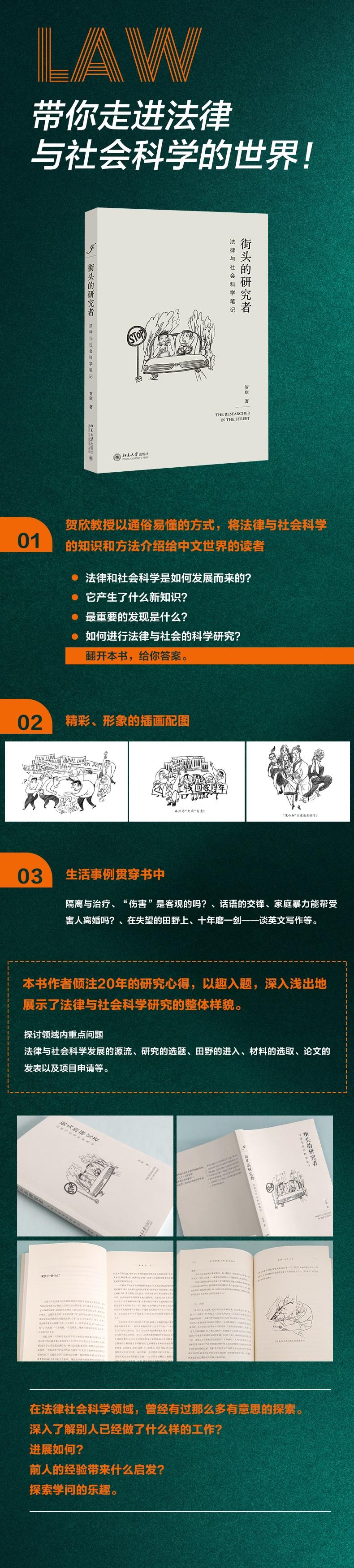 贺欣教授以通俗易懂的方式,将法律与社会科学的知识和研究方法中文世界的读者。通过生活化的事例和社会现象揭示法律与社会科学的交叉与融合。如:隔离与治疗、“伤害”是客观的吗?话语的交锋、家庭暴力能帮受害人离婚吗?在失望的田野上、十年磨一剑——谈英文写作等。
