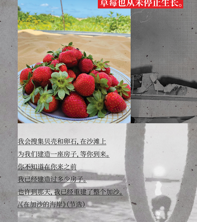 “别吃惊,当你看见 一朵玫瑰在家宅的废墟中 昂首挺立: 这就是我们活下来的方式。”